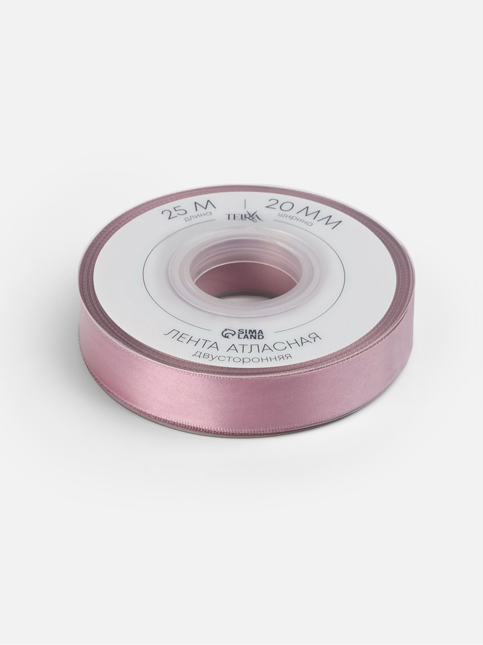 Лента атласная двухсторонняя, 20 мм, 25+-1 м, розовая №165, 10x10x2 см., TEIRA, Китай