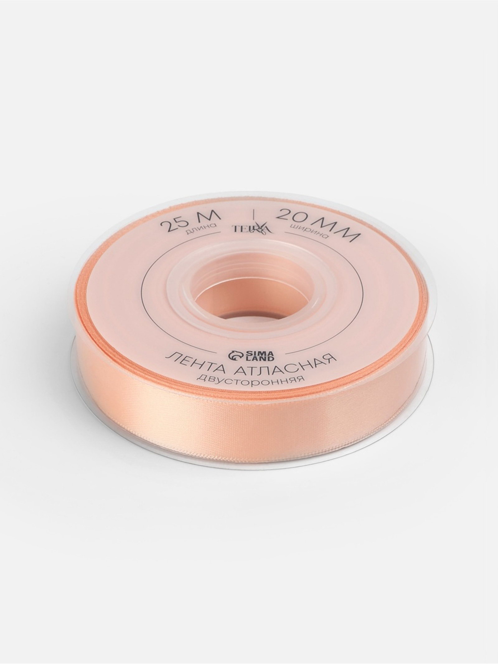 Лента атласная двухсторонняя, 20 мм, 25+-1 м, бежевая №0714, 10x10x2 см., TEIRA, Китай