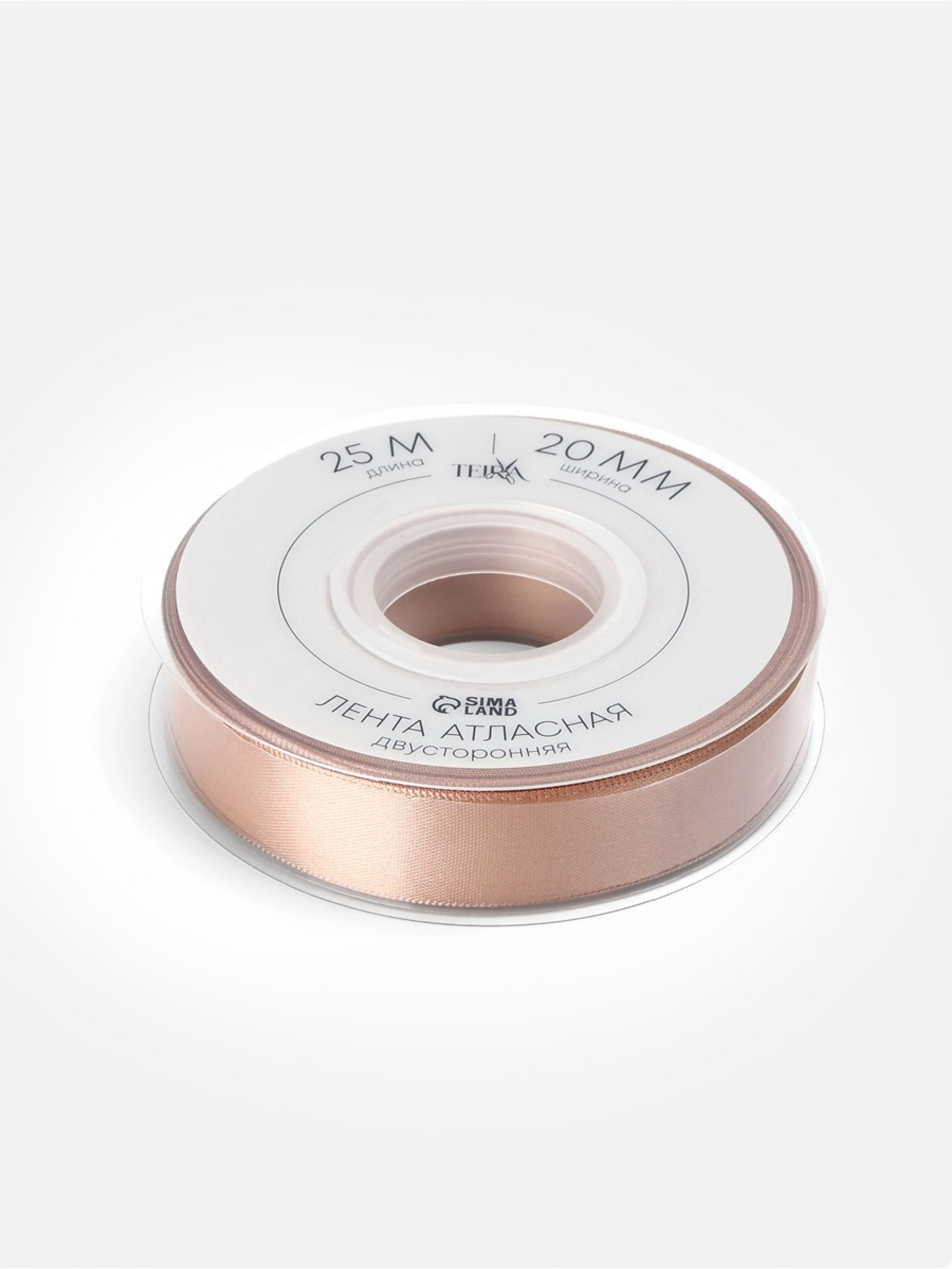Лента атласная двухсторонняя, 20 мм, 25+-1 м, бежевая №812, 10x10x2 см., TEIRA, Китай