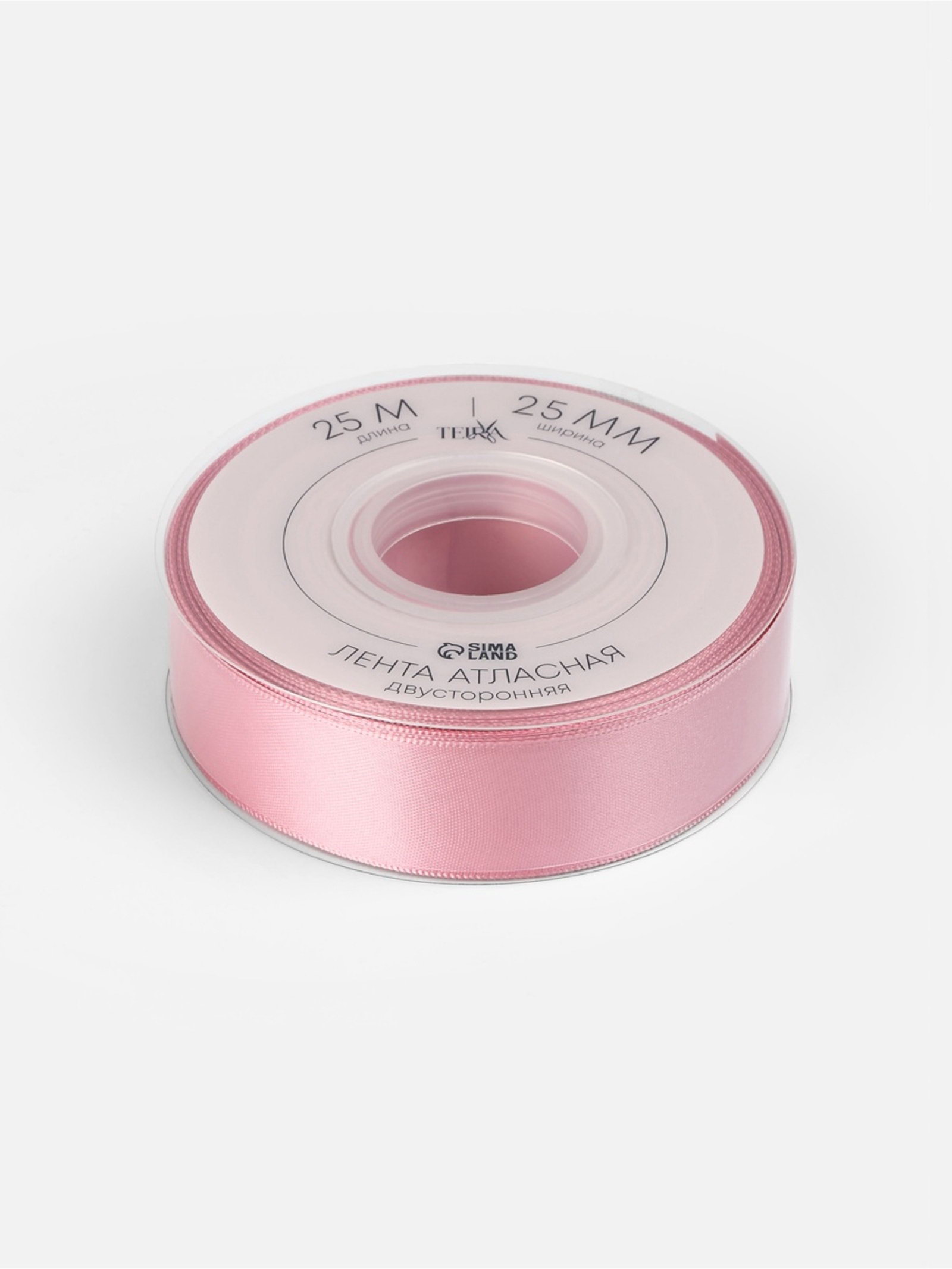 Лента атласная двухсторонняя, 25 мм, 25+-1 м, розовая №158, 10x10x2.5 см., TEIRA, Китай