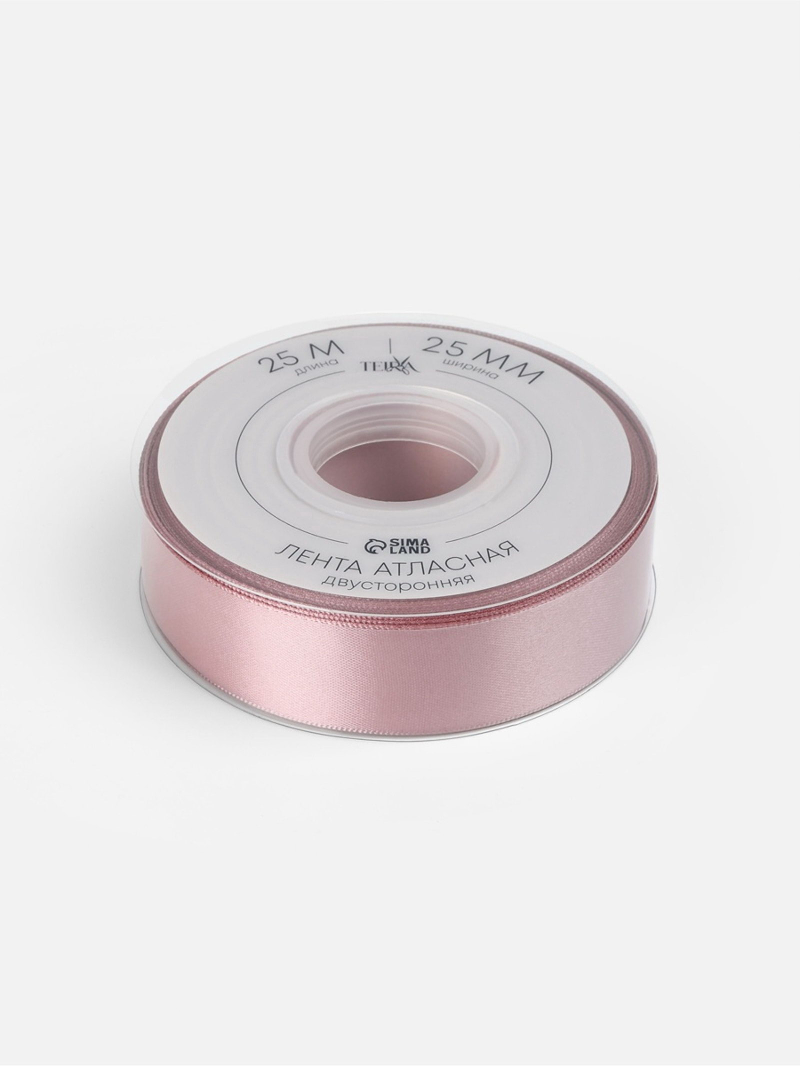 Лента атласная двухсторонняя, 25 мм, 25+-1 м, нежно-розовая №164, 10x10x2.5 см., TEIRA, Китай