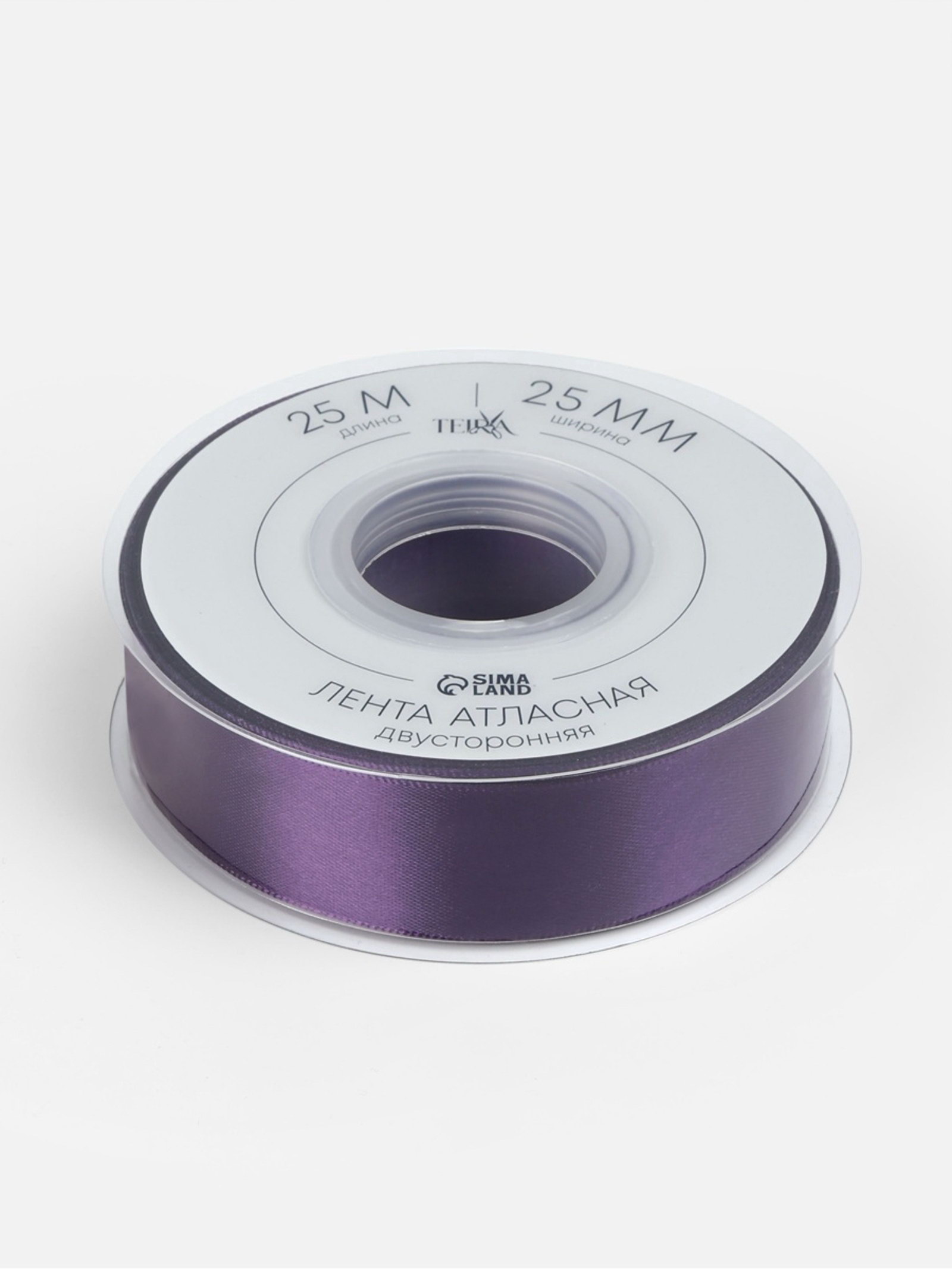 Лента атласная двухсторонняя, 25 мм, 25+-1 м, фиолетовая №476, 10x10x2.5 см., TEIRA, Китай