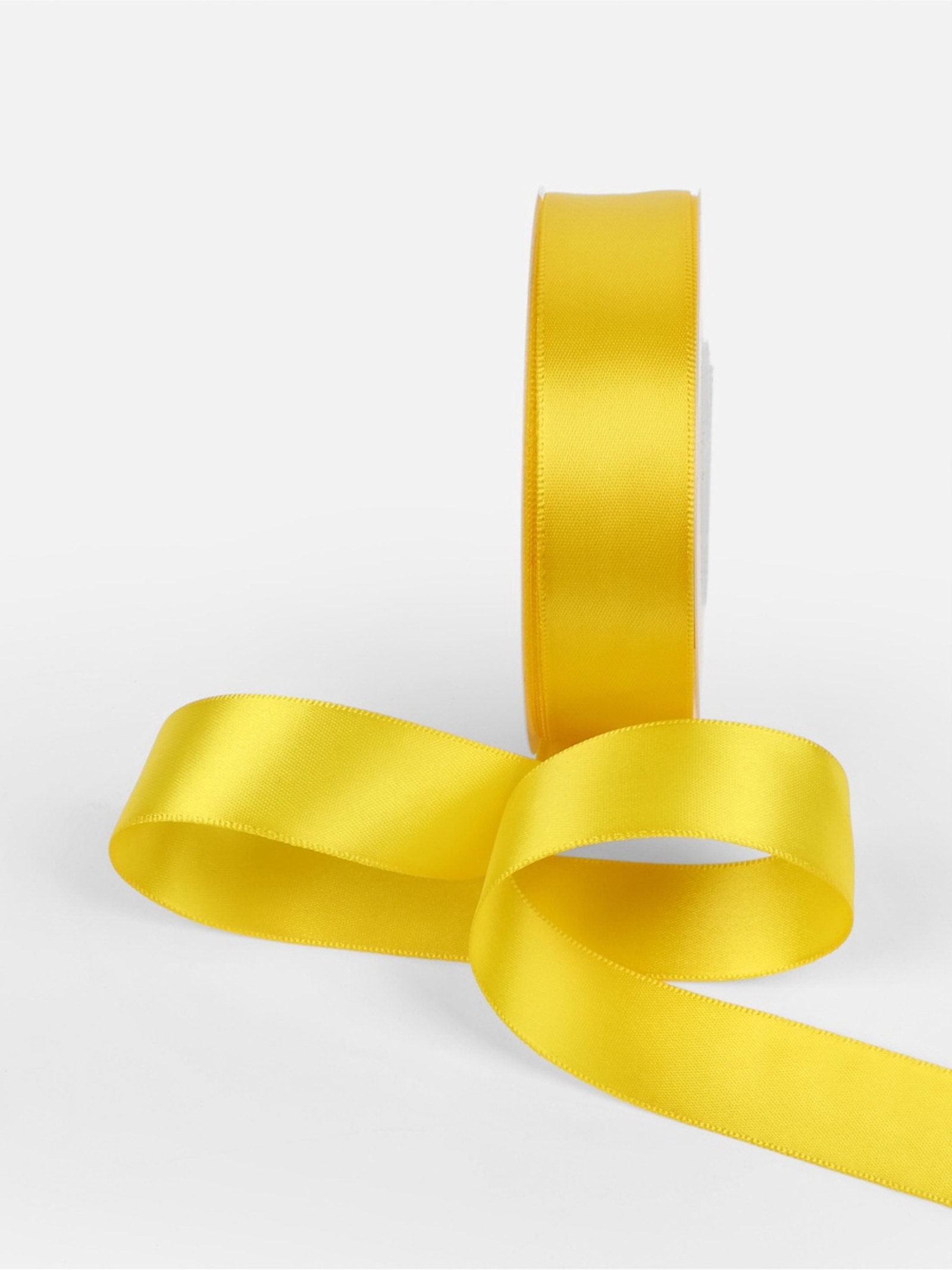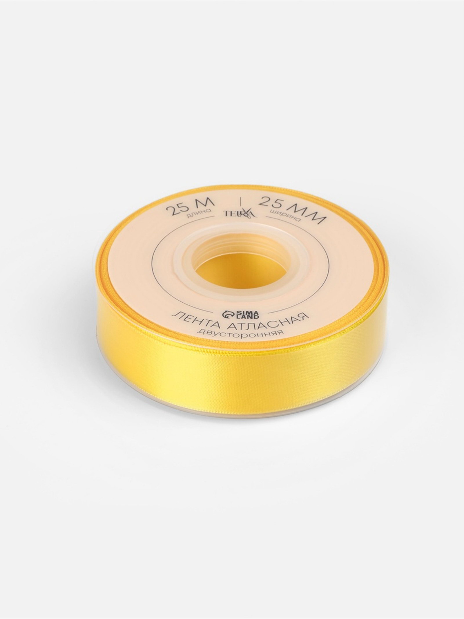Лента атласная двухсторонняя, 25 мм, 25+-1 м, жёлтая №0645, 10x10x2.5 см., TEIRA, Китай