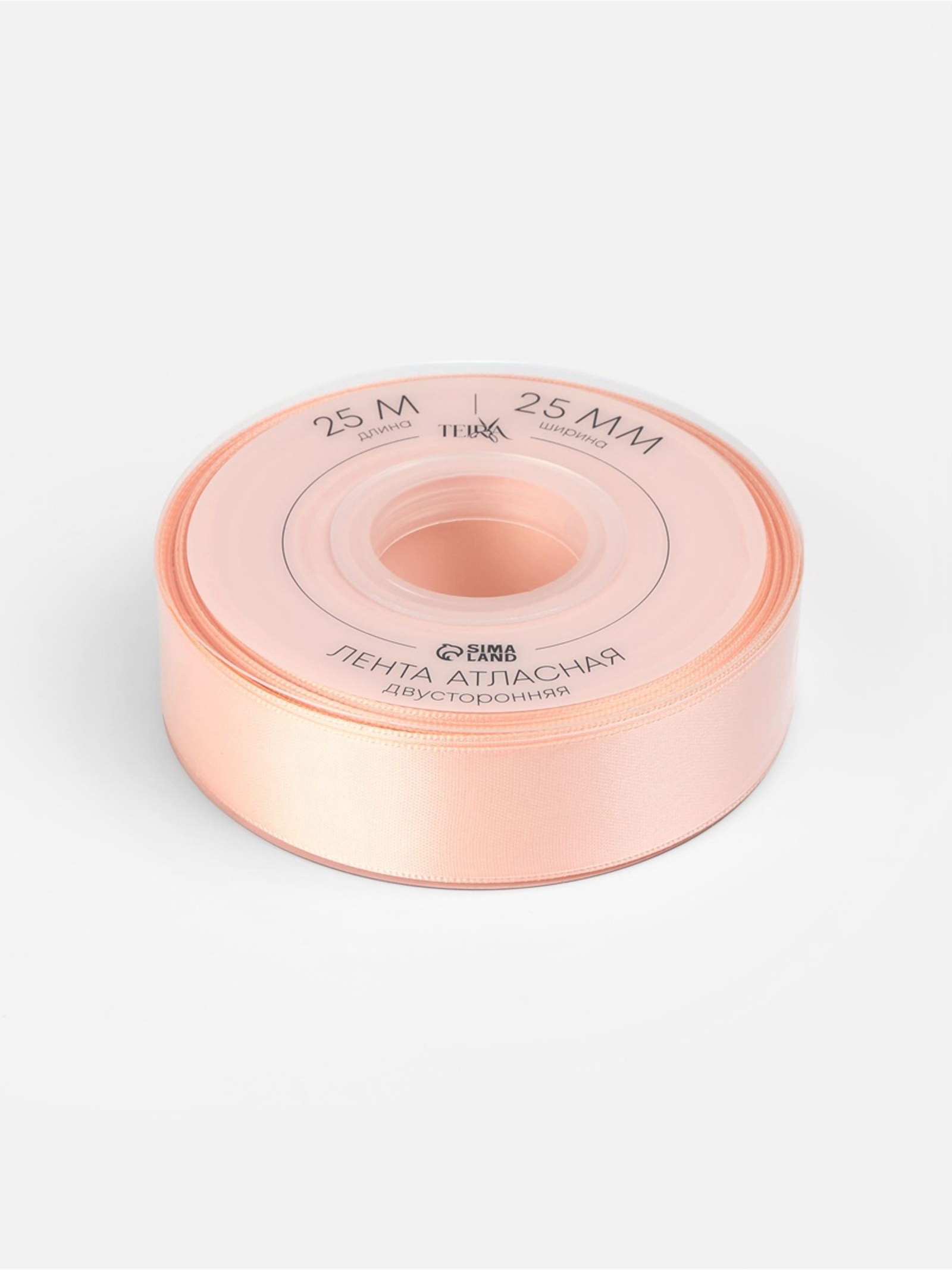 Лента атласная двухсторонняя, 25 мм, 25+-1 м, бежевая №0714, 10x10x2.5 см., TEIRA, Китай