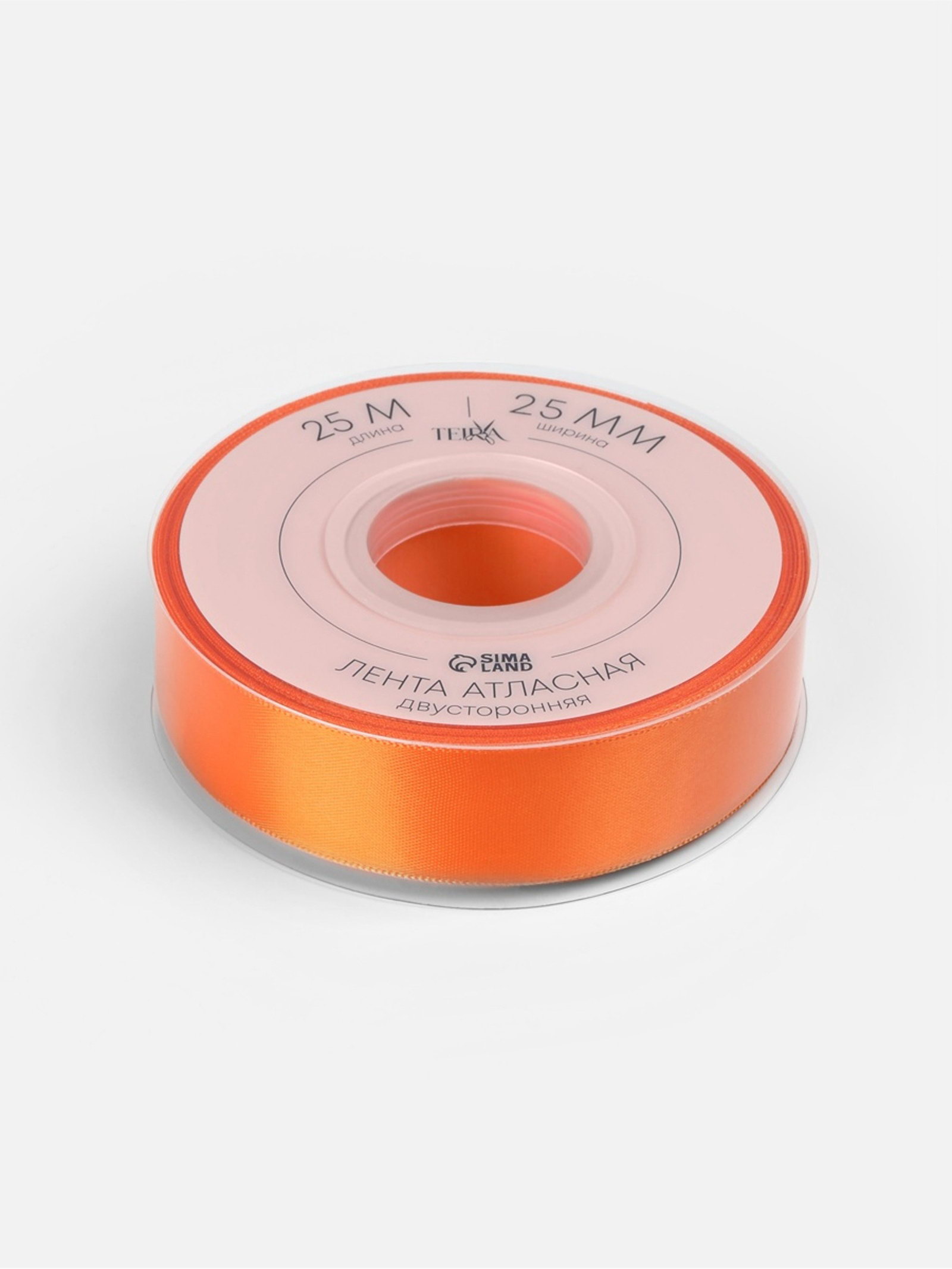 Лента атласная двухсторонняя, 25 мм, 25+-1 м, оранжевая №751, 10x10x2.5 см., TEIRA, Китай