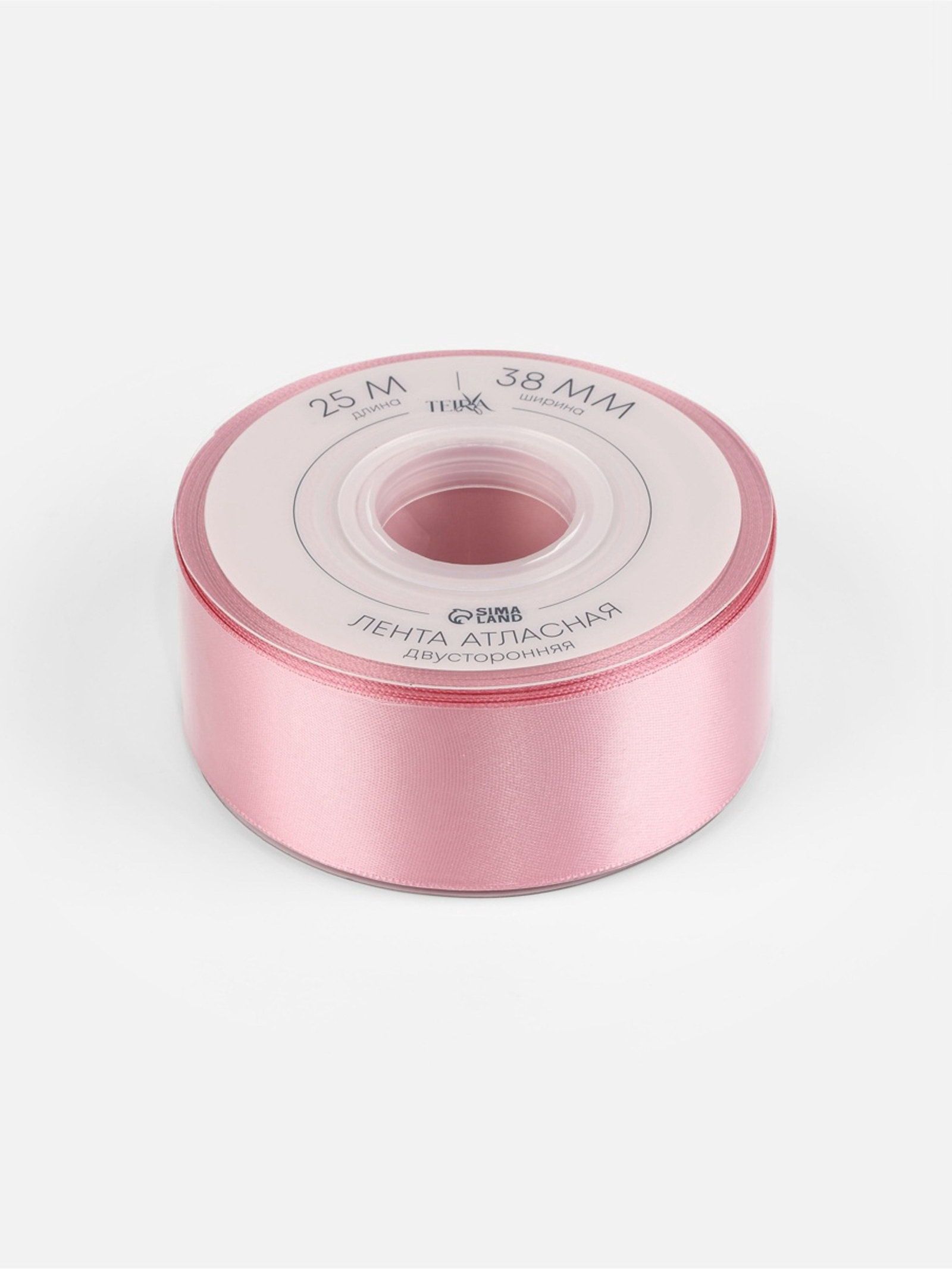 Лента атласная двухсторонняя, 38 мм, 25+-1 м, розовая №158, 10x10x3.8 см., TEIRA, Китай