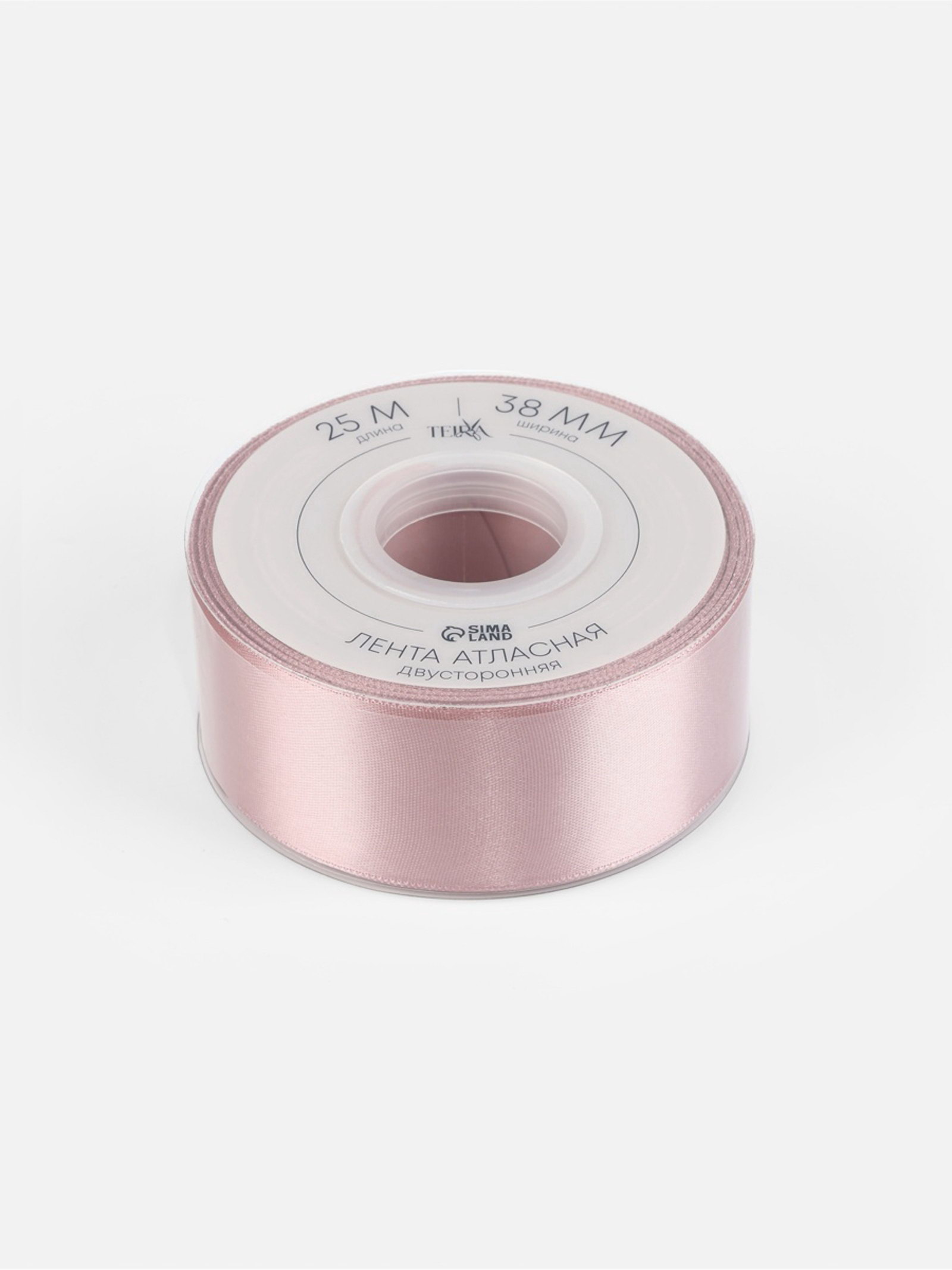 Лента атласная двухсторонняя, 38 мм, 25+-1 м, нежно-розовая №164, 10x10x3.8 см., TEIRA, Китай