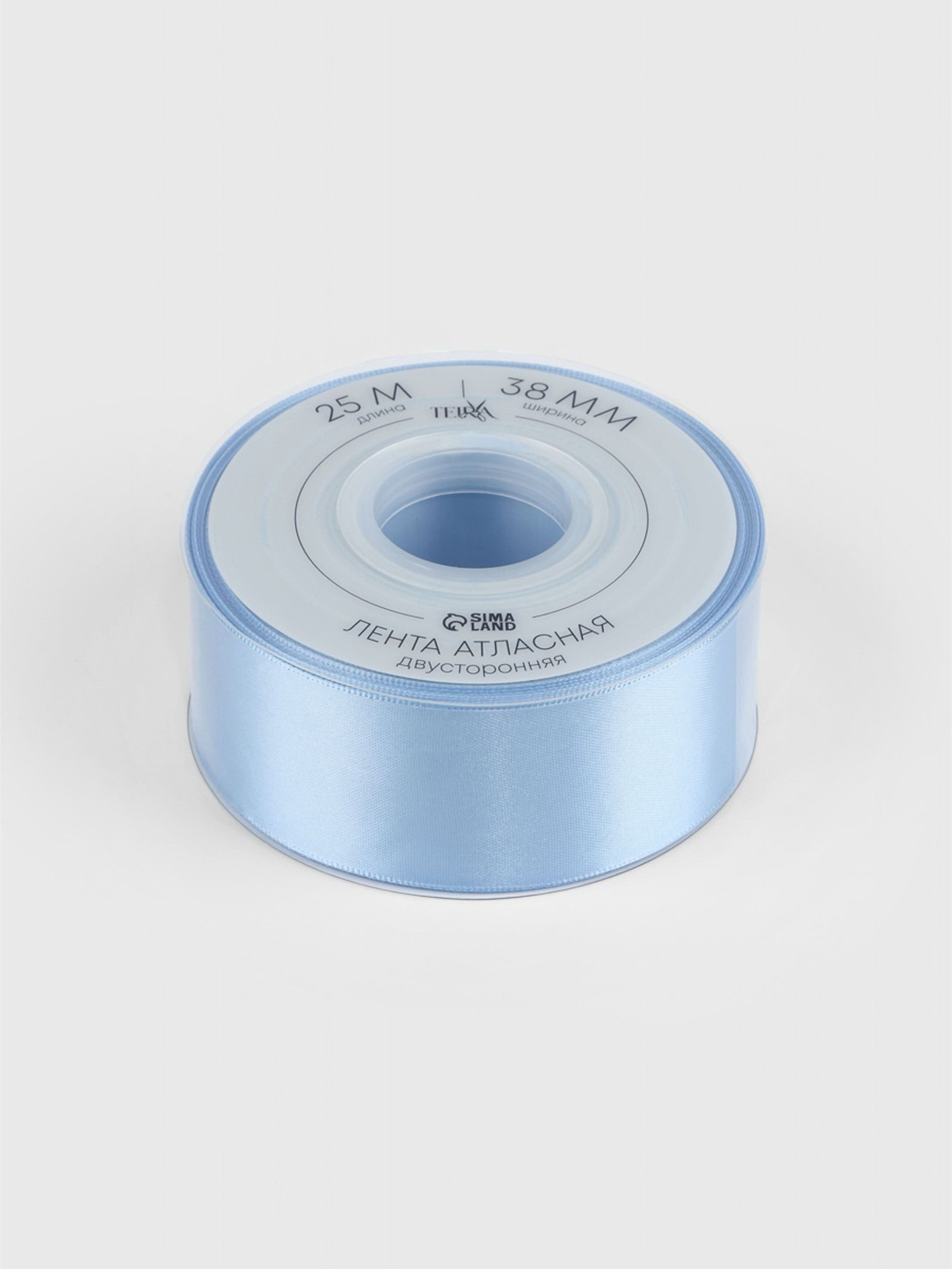 Лента атласная двухсторонняя, 38 мм, 25+-1 м, светло-голубой №332, 10x10x3.8 см., TEIRA, Китай