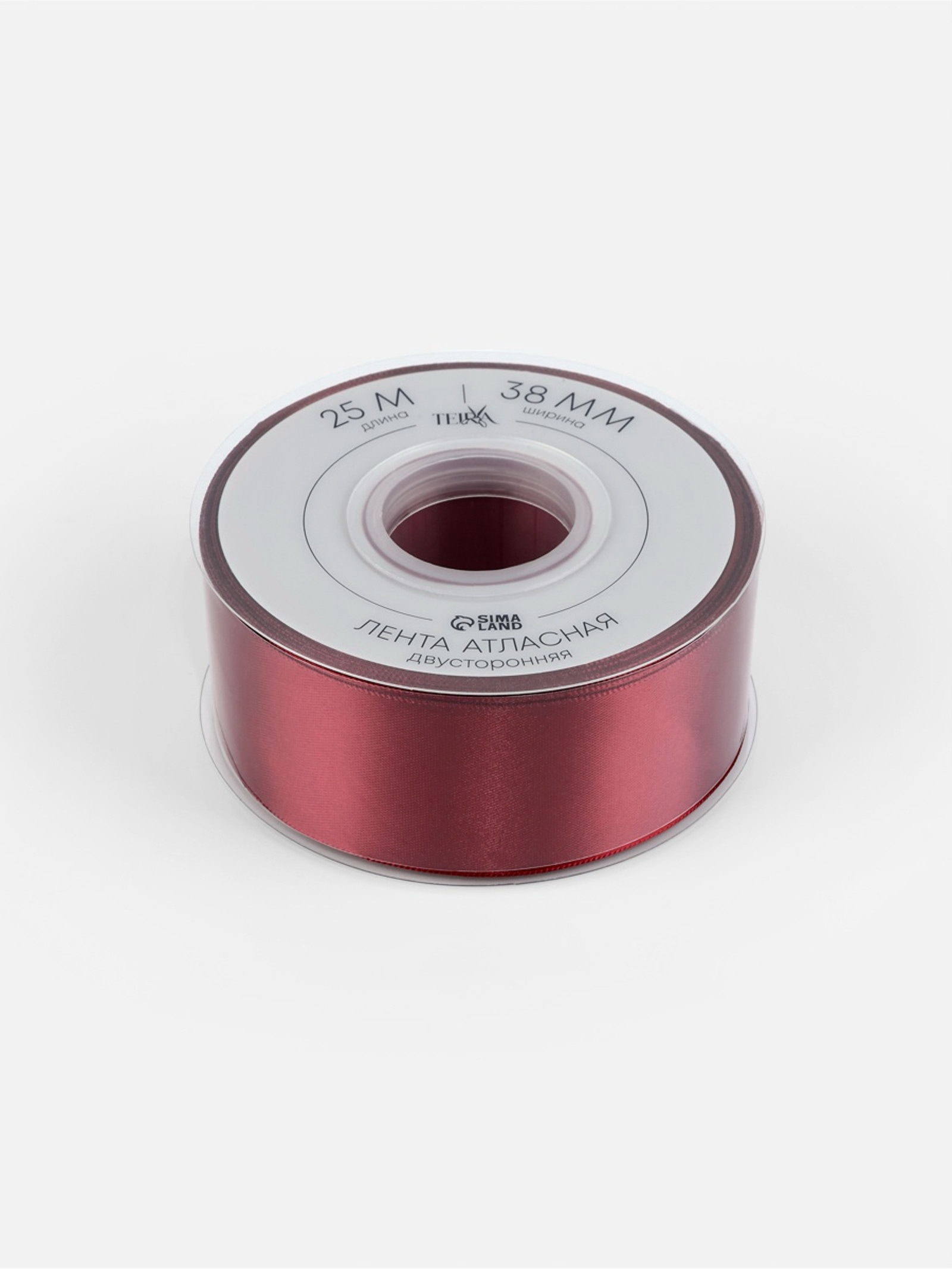 Лента атласная двухсторонняя, 38 мм, 25+-1 м, бордовая №0789, 10x10x3.8 см., TEIRA, Китай