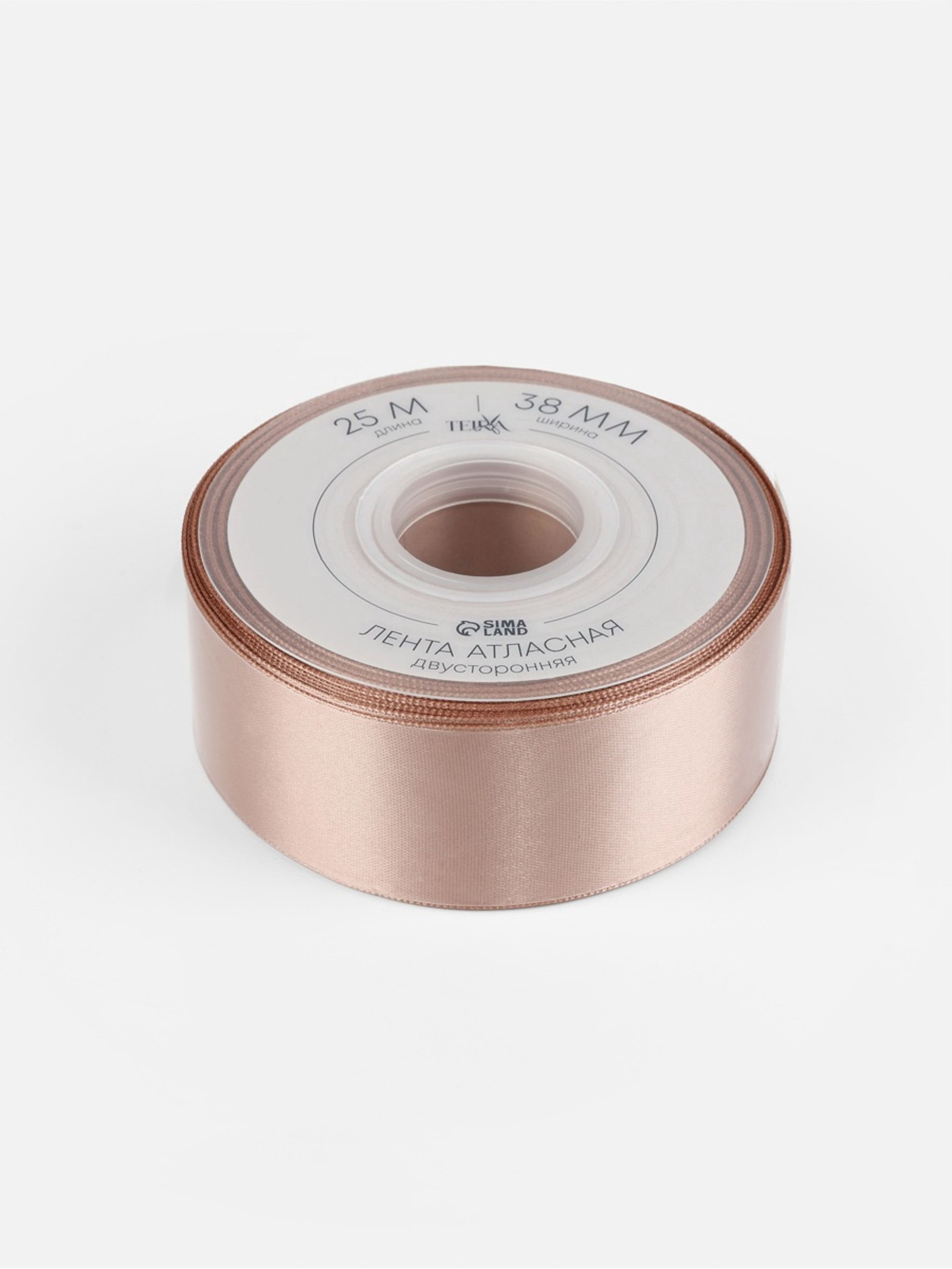 Лента атласная двухсторонняя, 38 мм, 25+-1 м, бежевая №812, 10x10x3.8 см., TEIRA, Китай