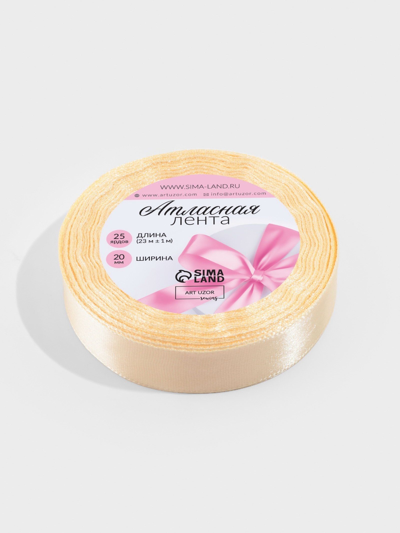 Лента атласная 20 мм, 23+-1 м, светло-бежевая, Арт Узор, Китай