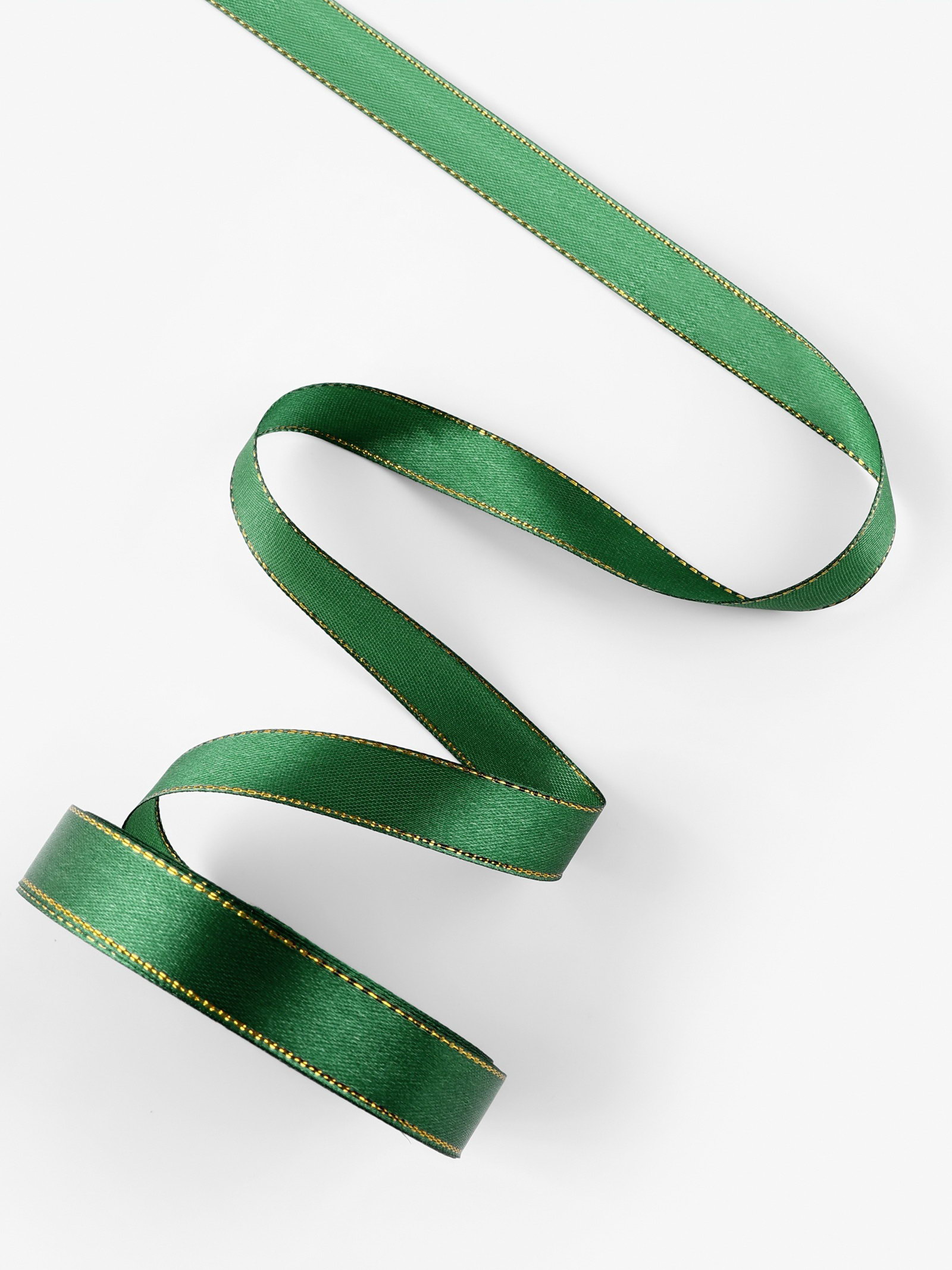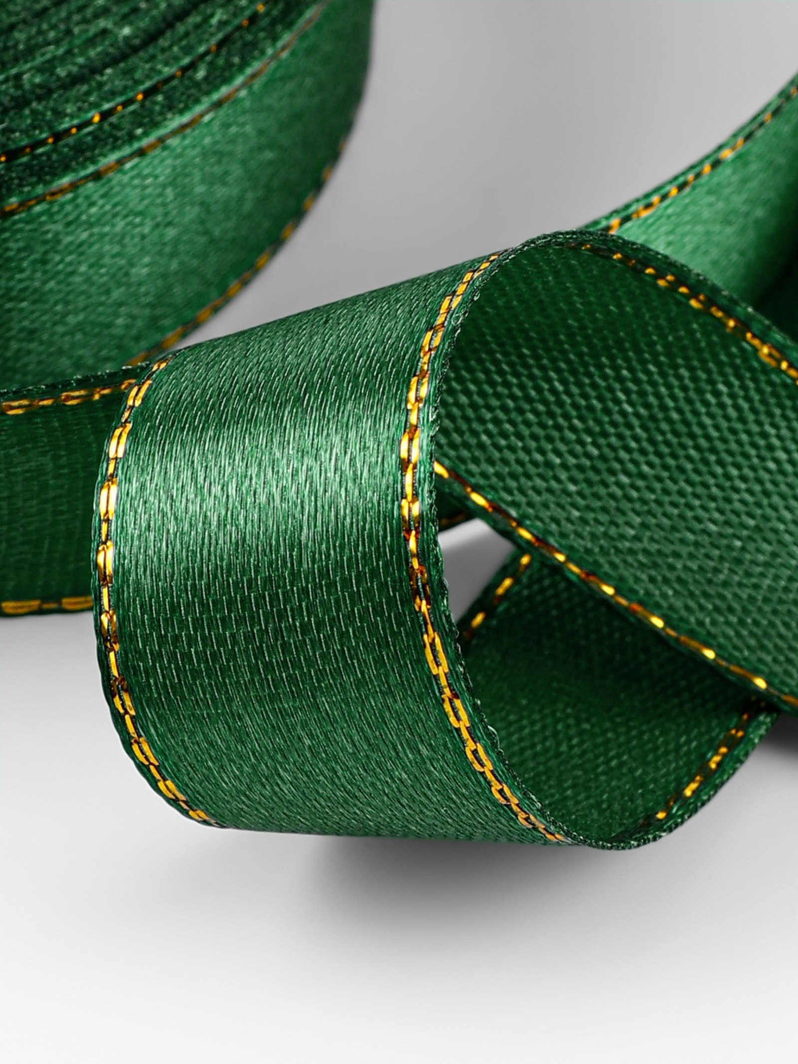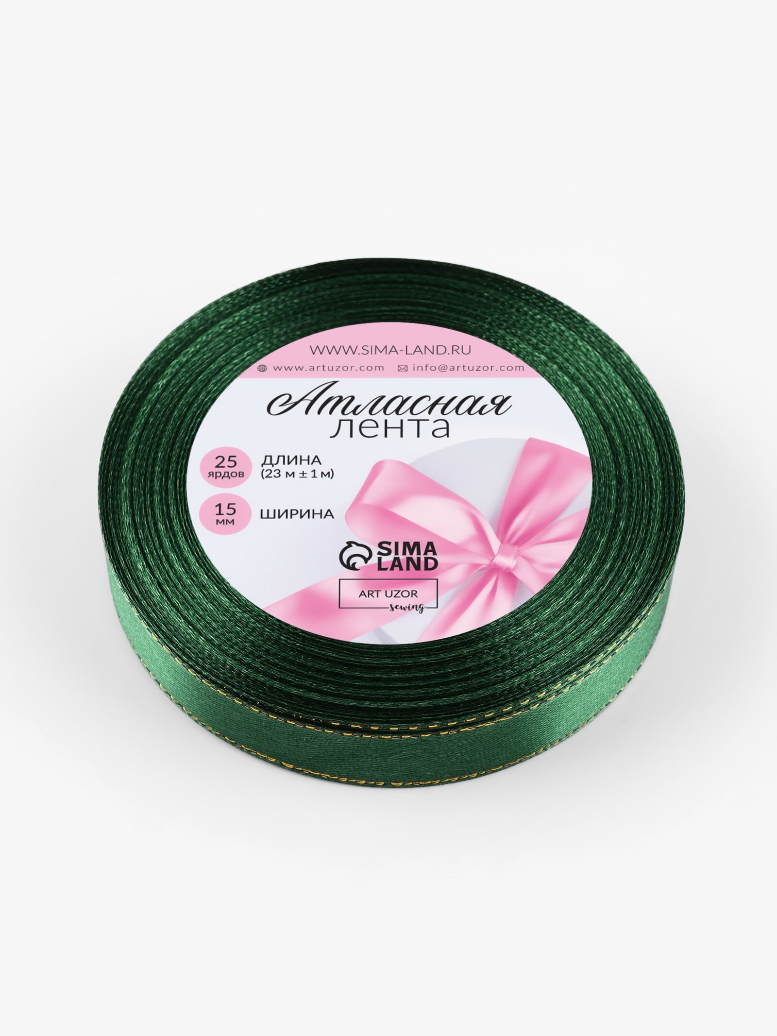 Лента атласная, с золотым люрексом, 15 мм, 23+-1 м, зелёная №049, 9x9x1.5 см., Арт Узор, Китай