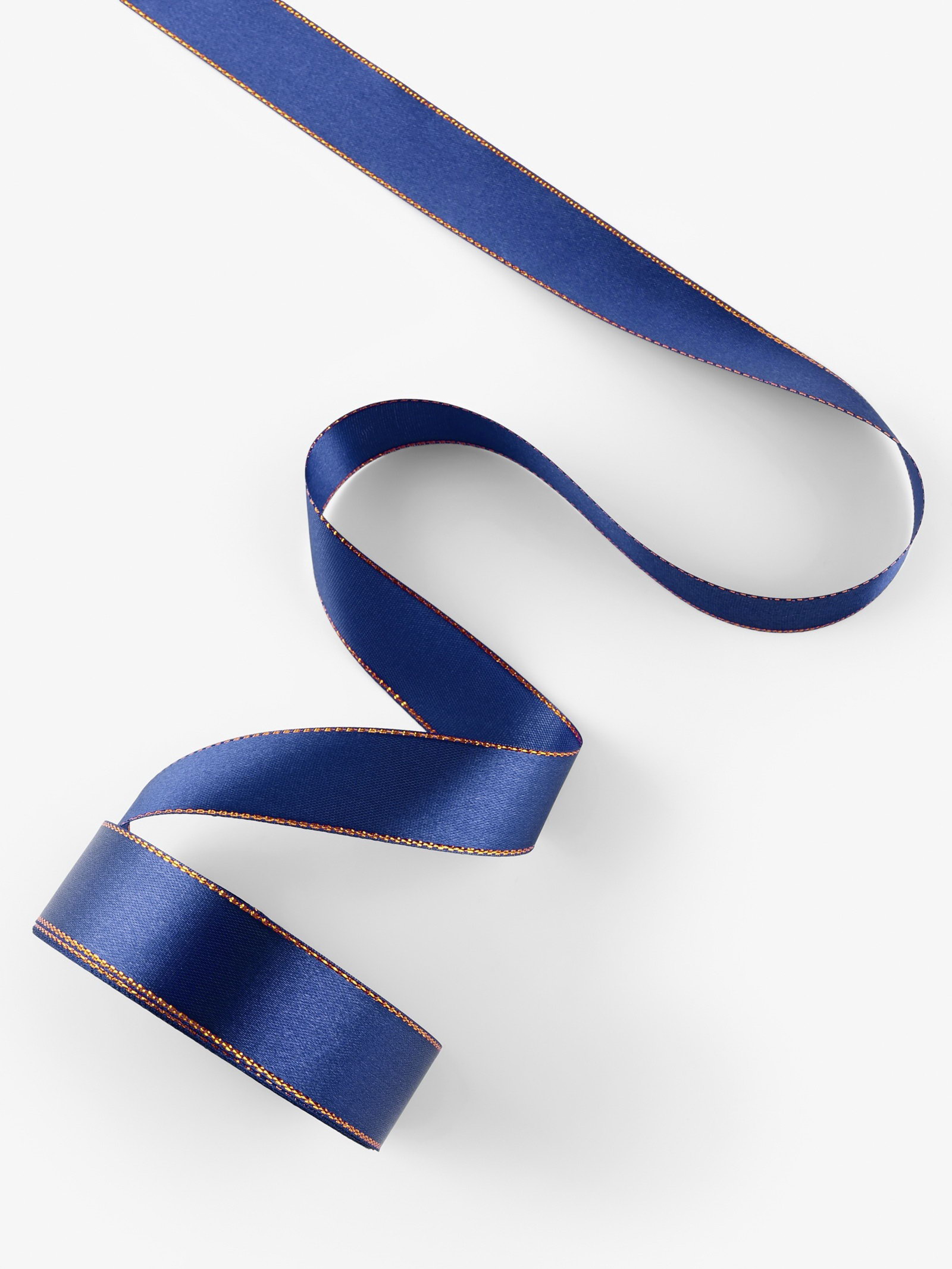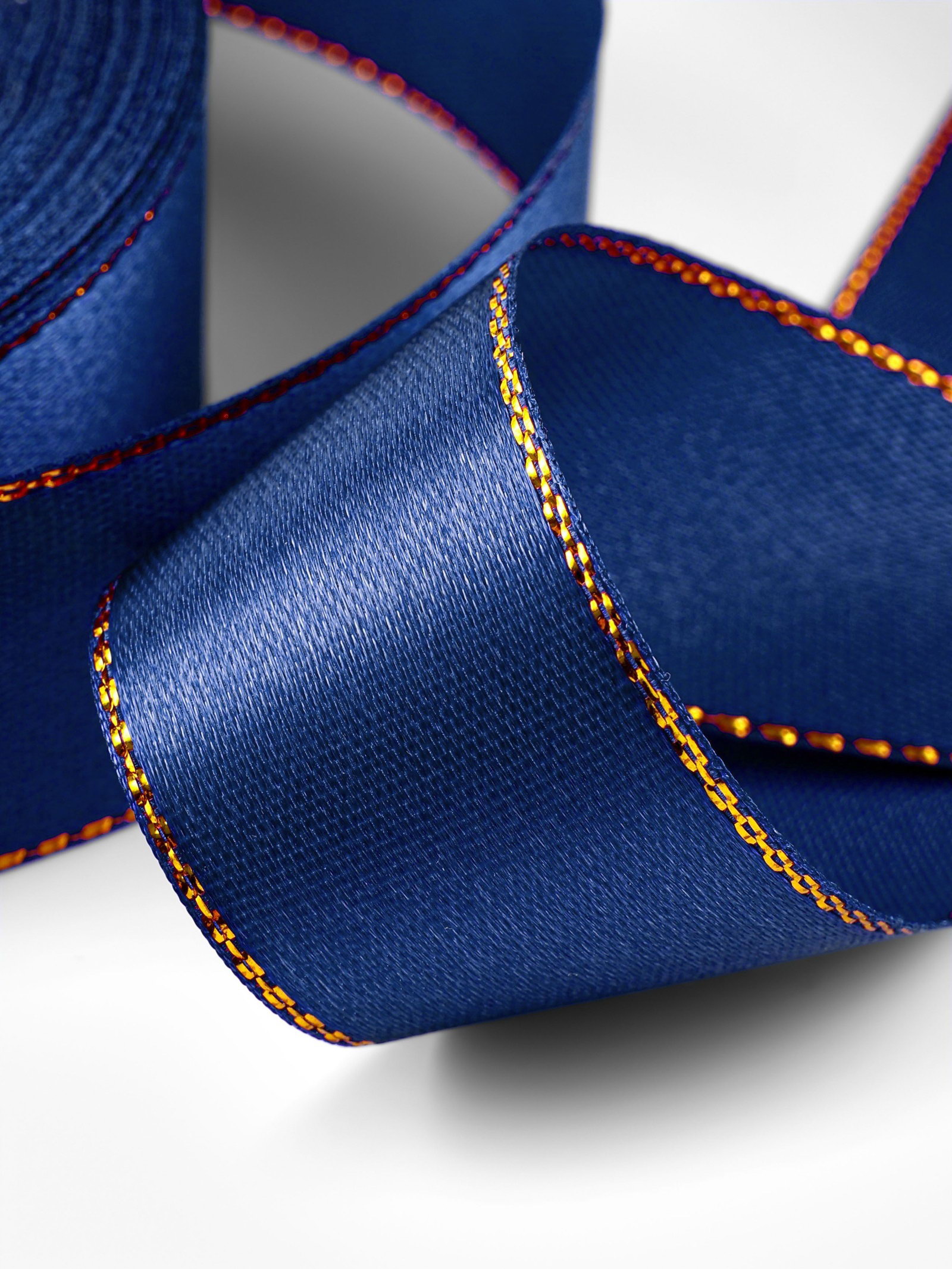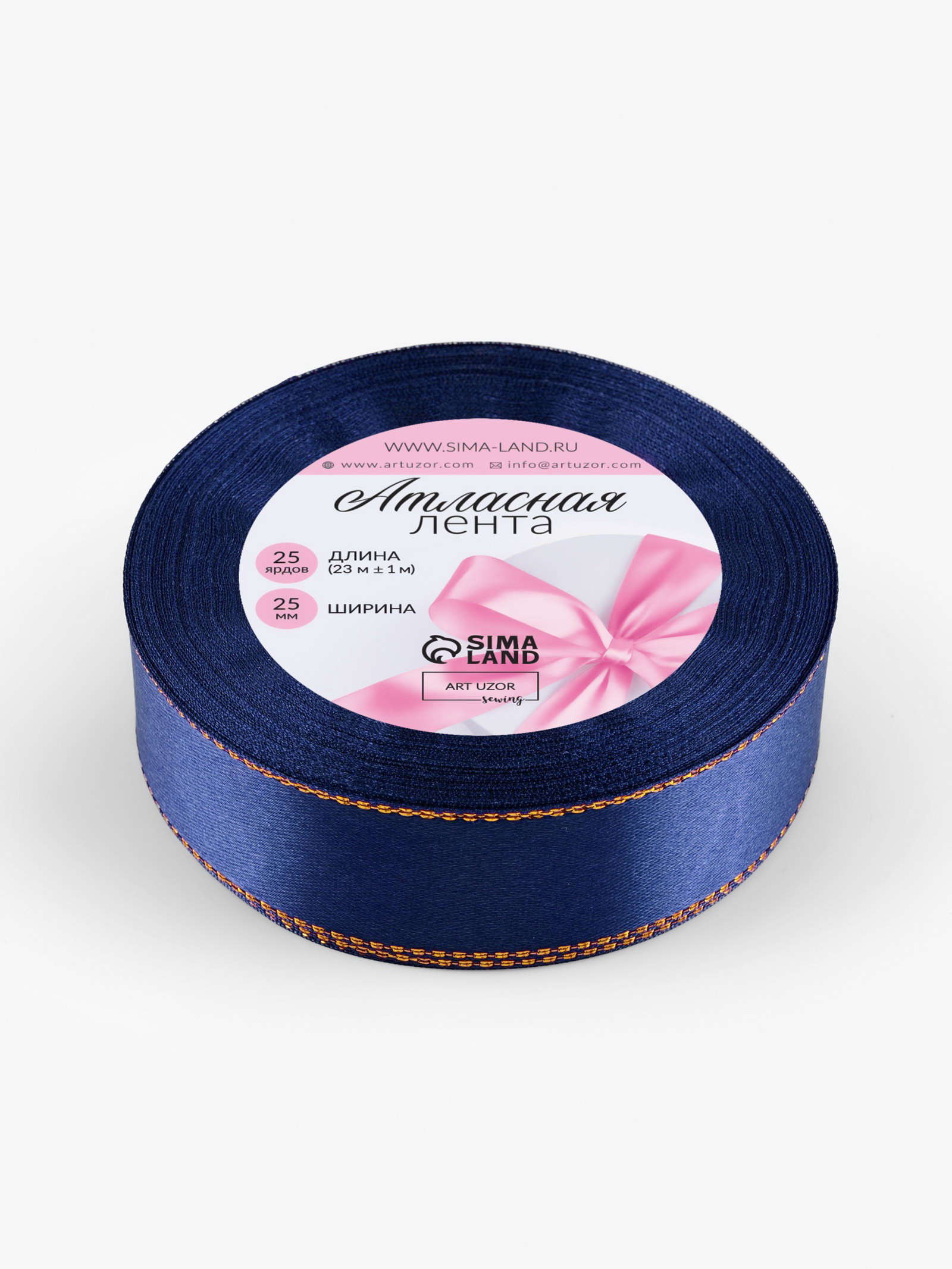Лента атласная, с золотым люрексом, 25 мм, 23+-1 м, синяя №038, 9x9x2.5 см., Арт Узор, Китай