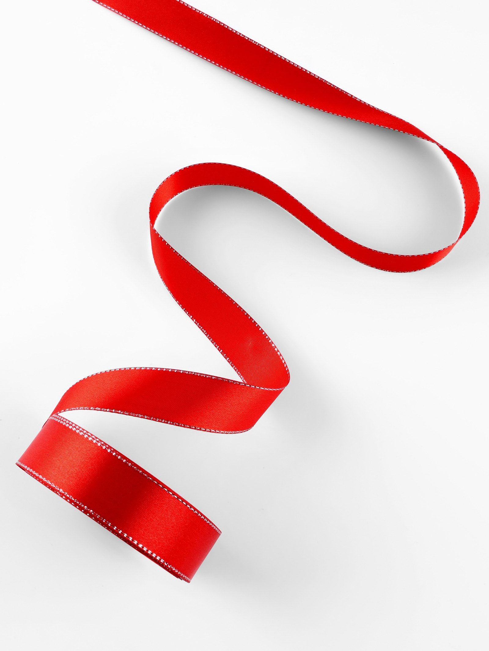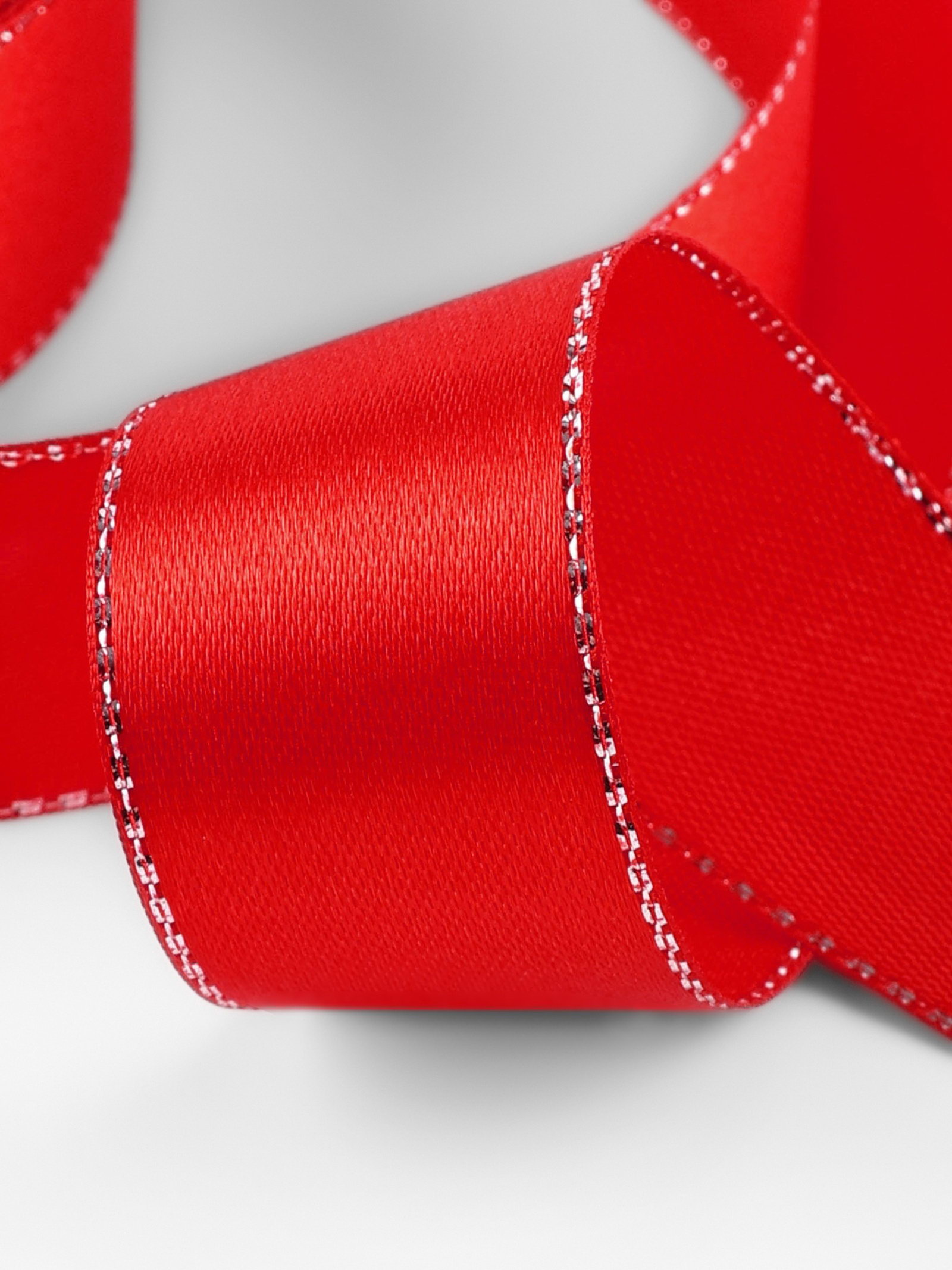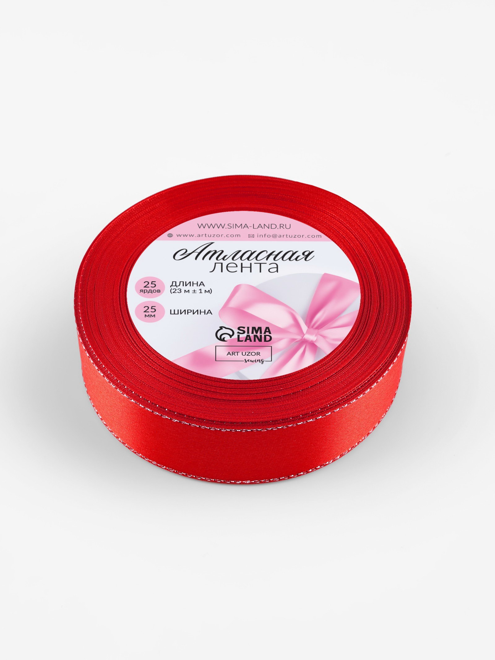 Лента атласная, с серебряным люрексом, 25 мм, 23+-1 м, красная №026, 9x9x2.5 см., Арт Узор, Китай