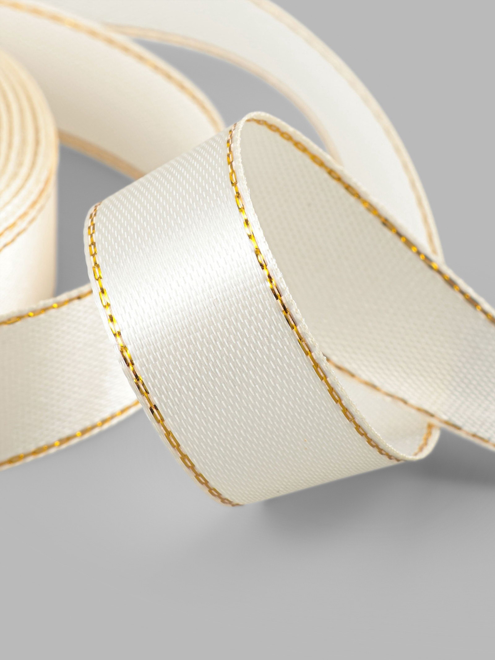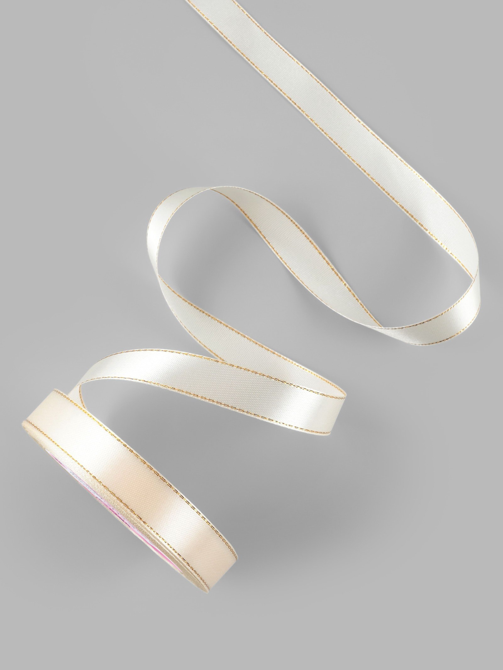 Лента атласная, с золотым люрексом, 15 мм, 23+-1 м, светло-бежевая №008, 9x9x1.5 см., Арт Узор, Китай