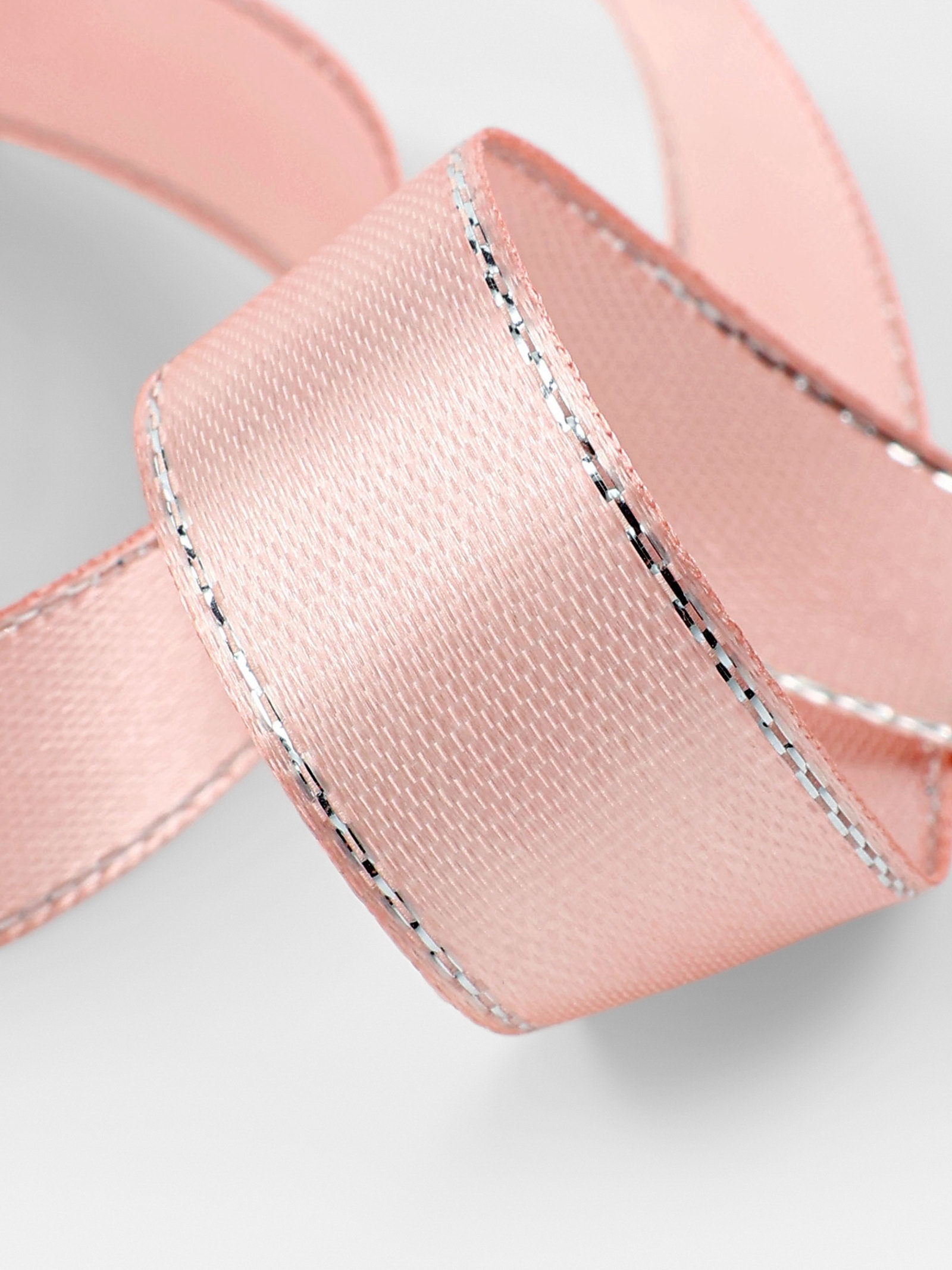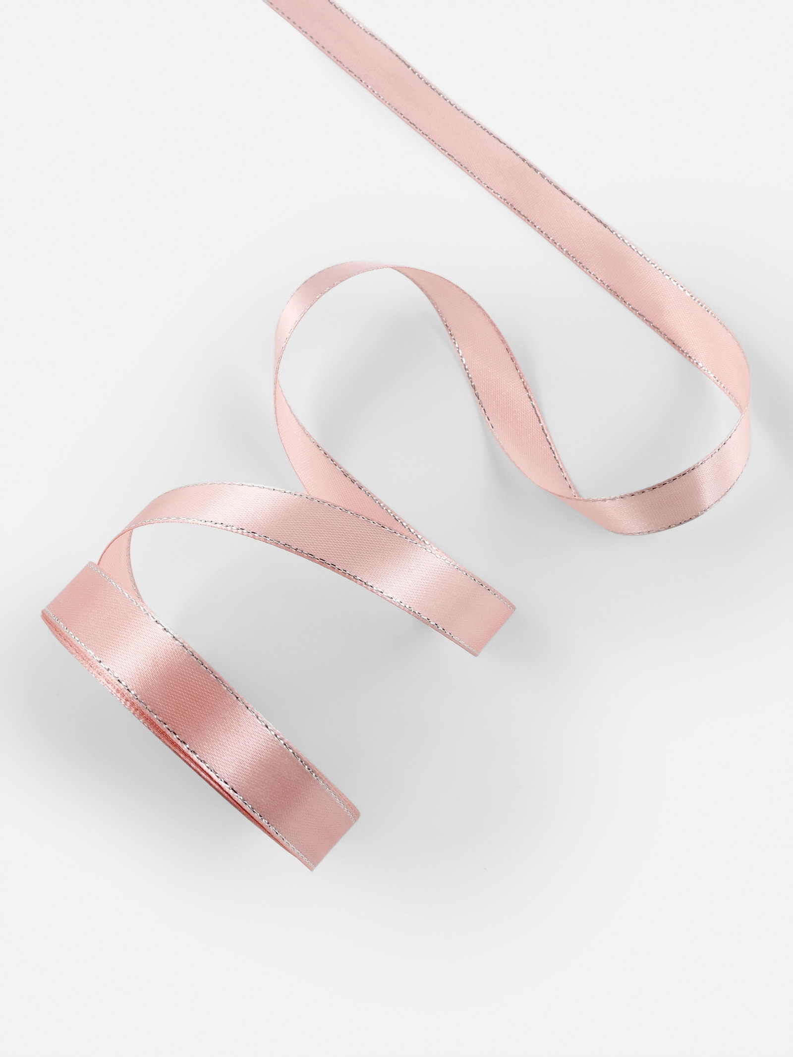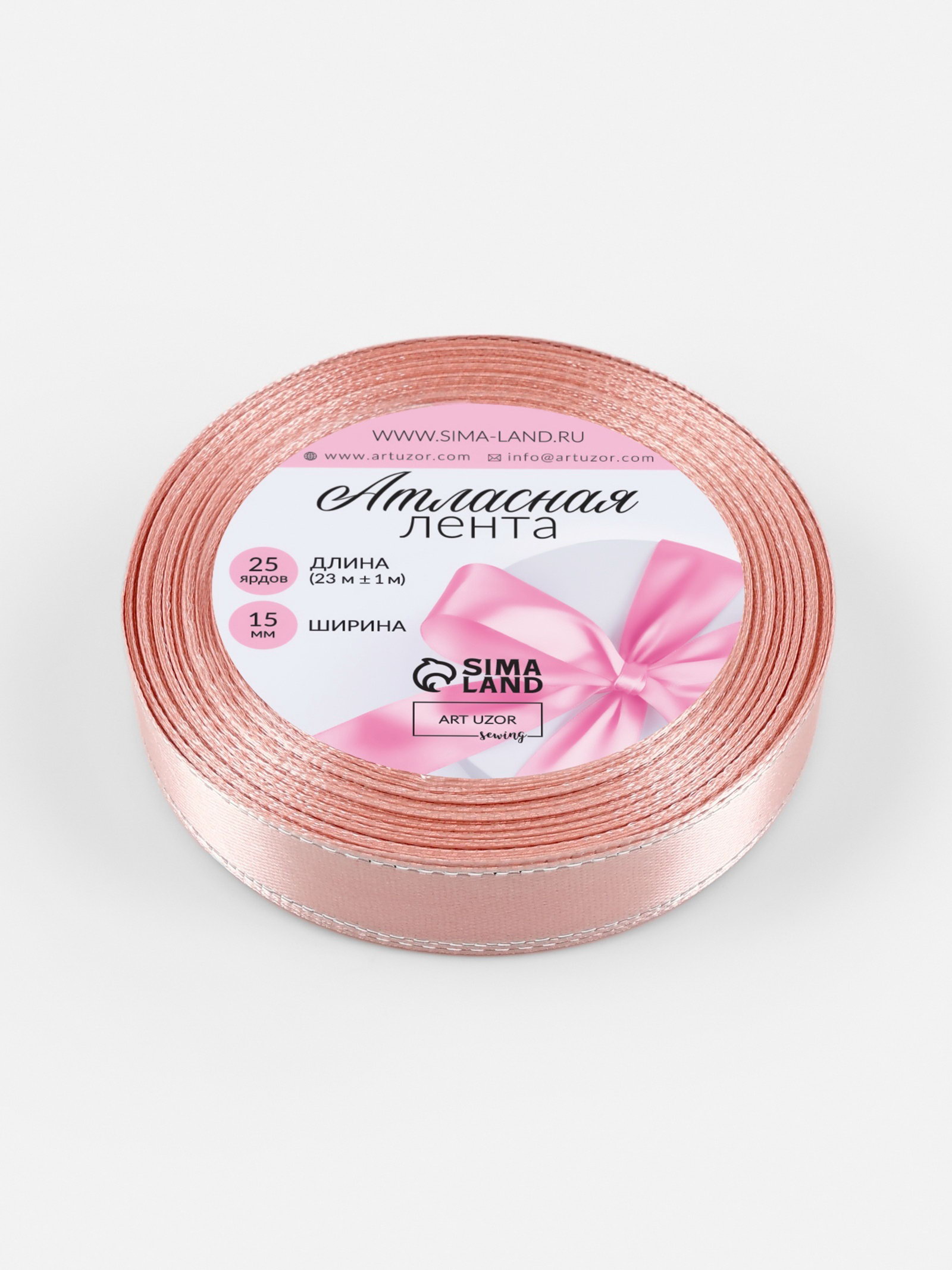 Лента атласная, с серебряным люрексом, 15 мм, 23+-1 м, светло-розовая №107, 9x9x1.5 см., Арт Узор, Китай