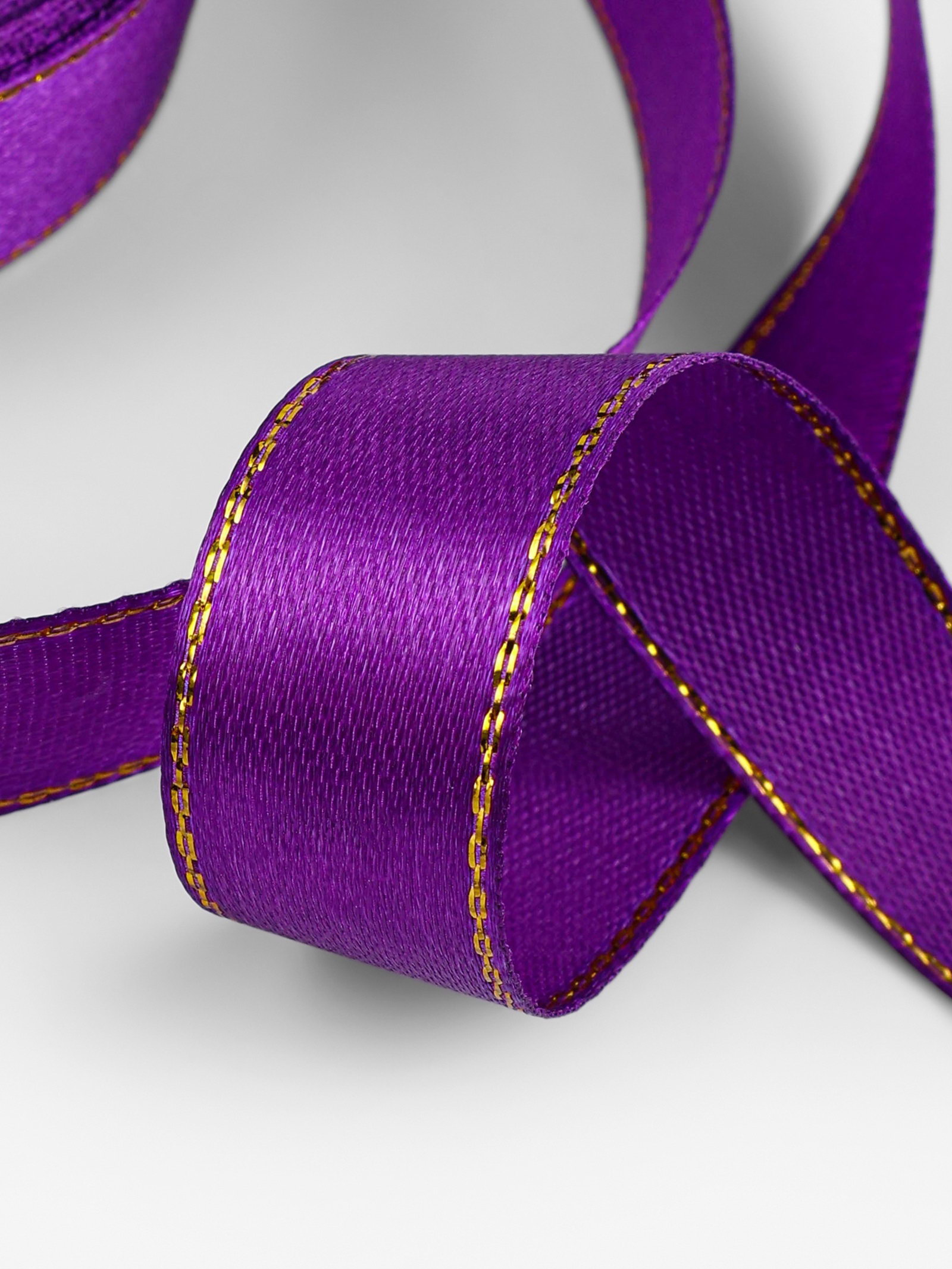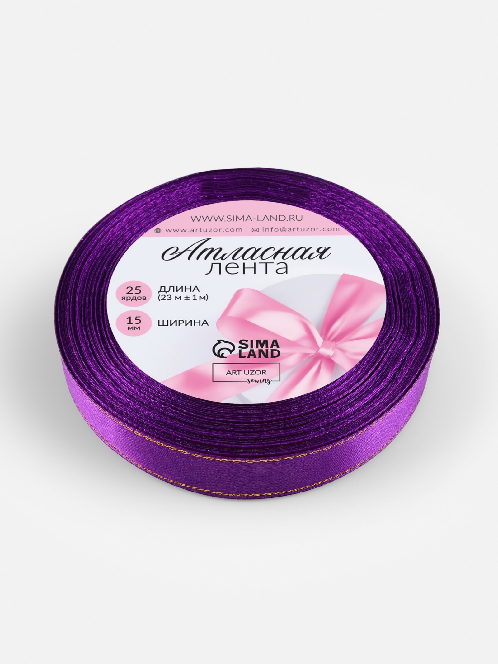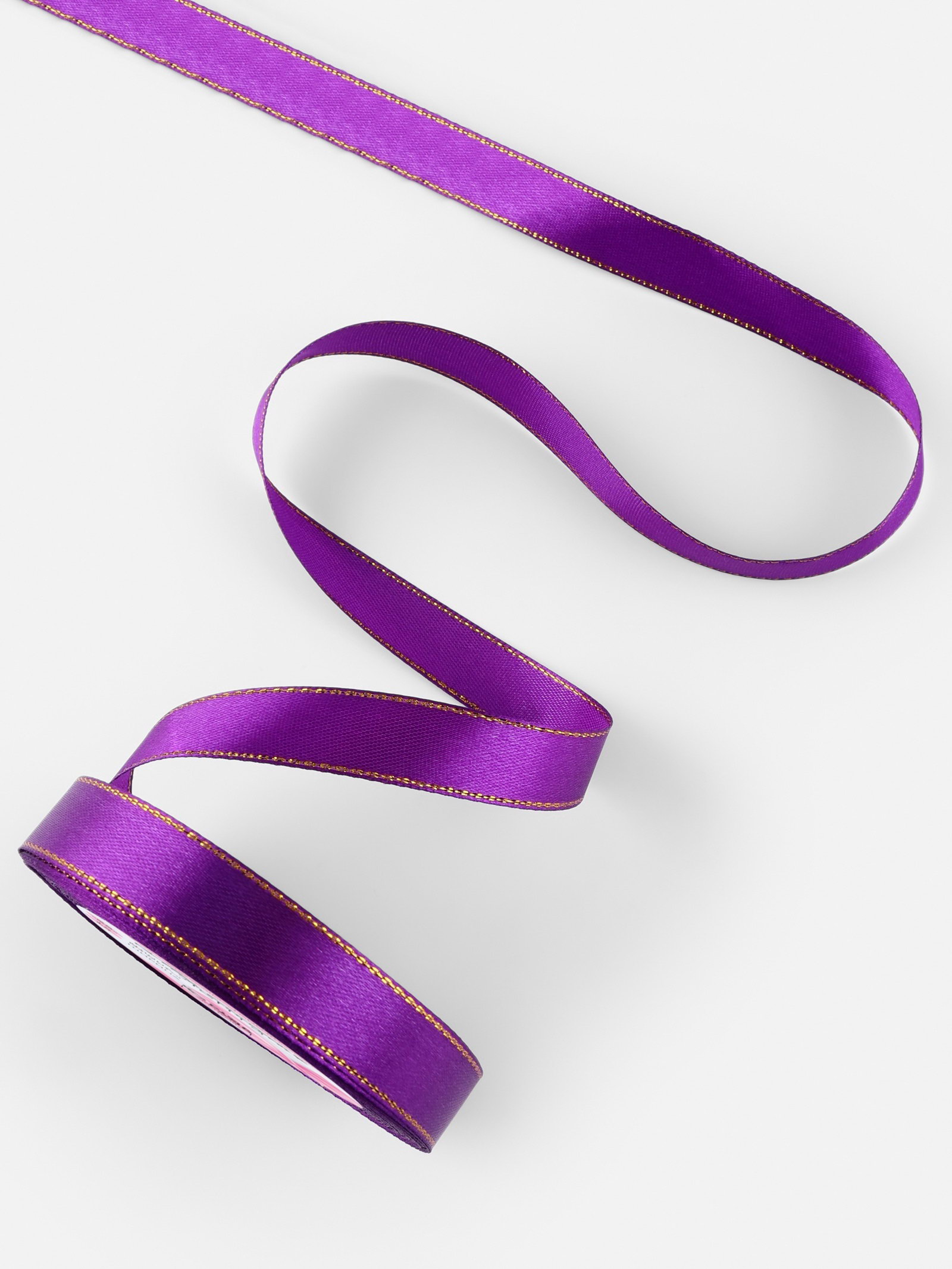 Лента атласная, с золотым люрексом, 15 мм, 23+-1 м, фиолетовая №35, 9x9x1.5 см., Арт Узор, Китай