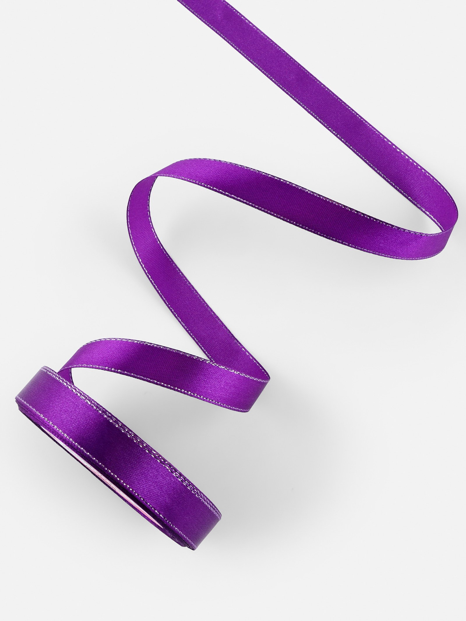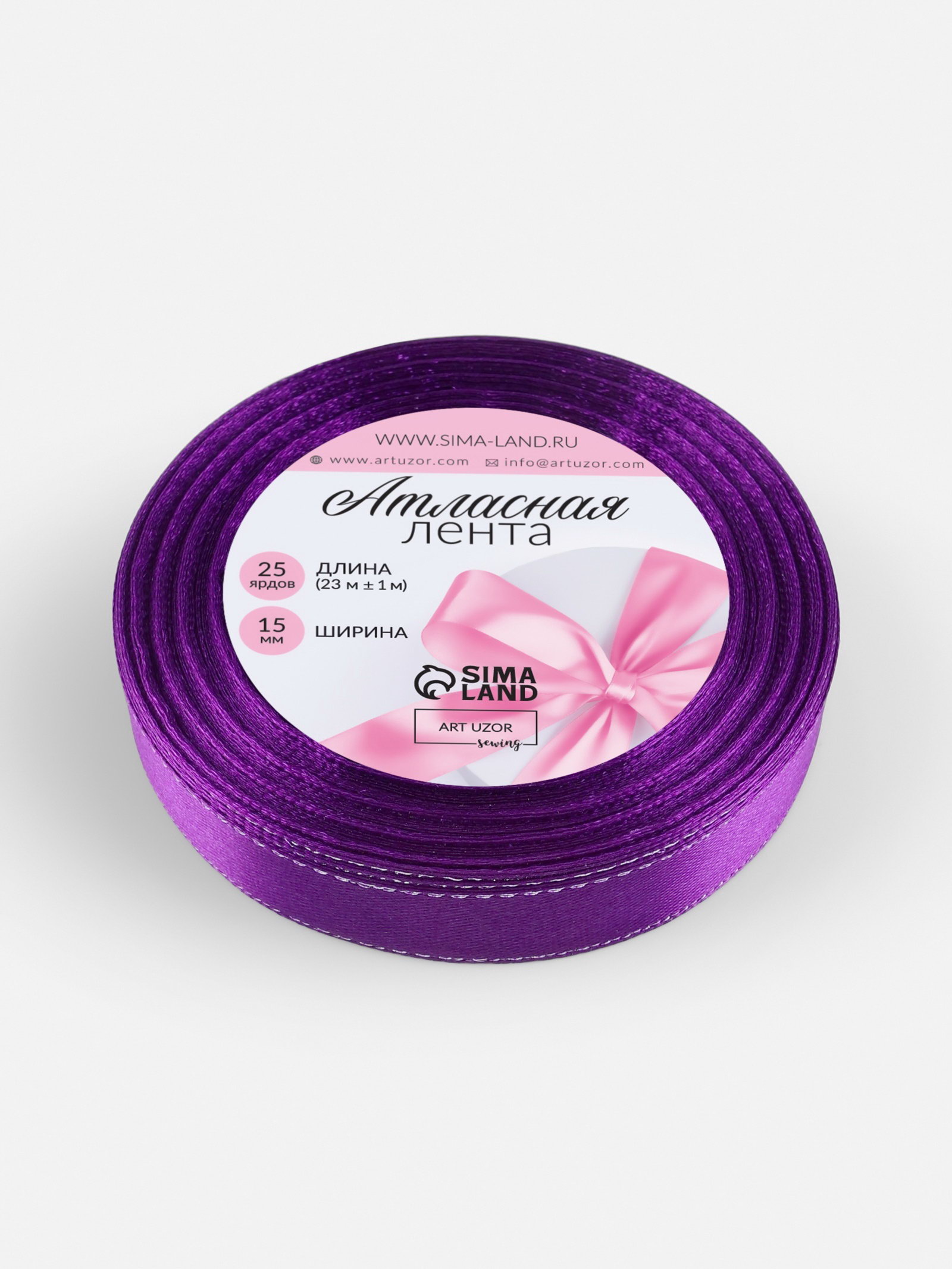 Лента атласная, с серебряным люрексом, 15 мм, 23+-1 м, фиолетовая №35, 9x9x1.5 см., Арт Узор, Китай