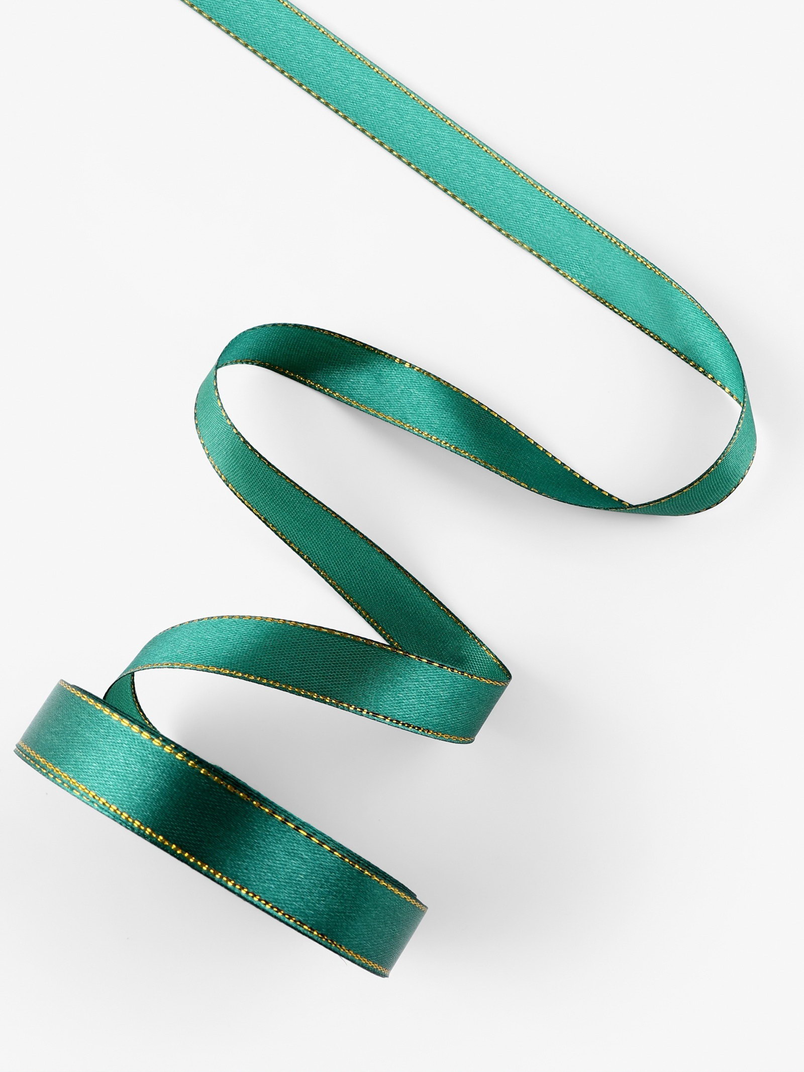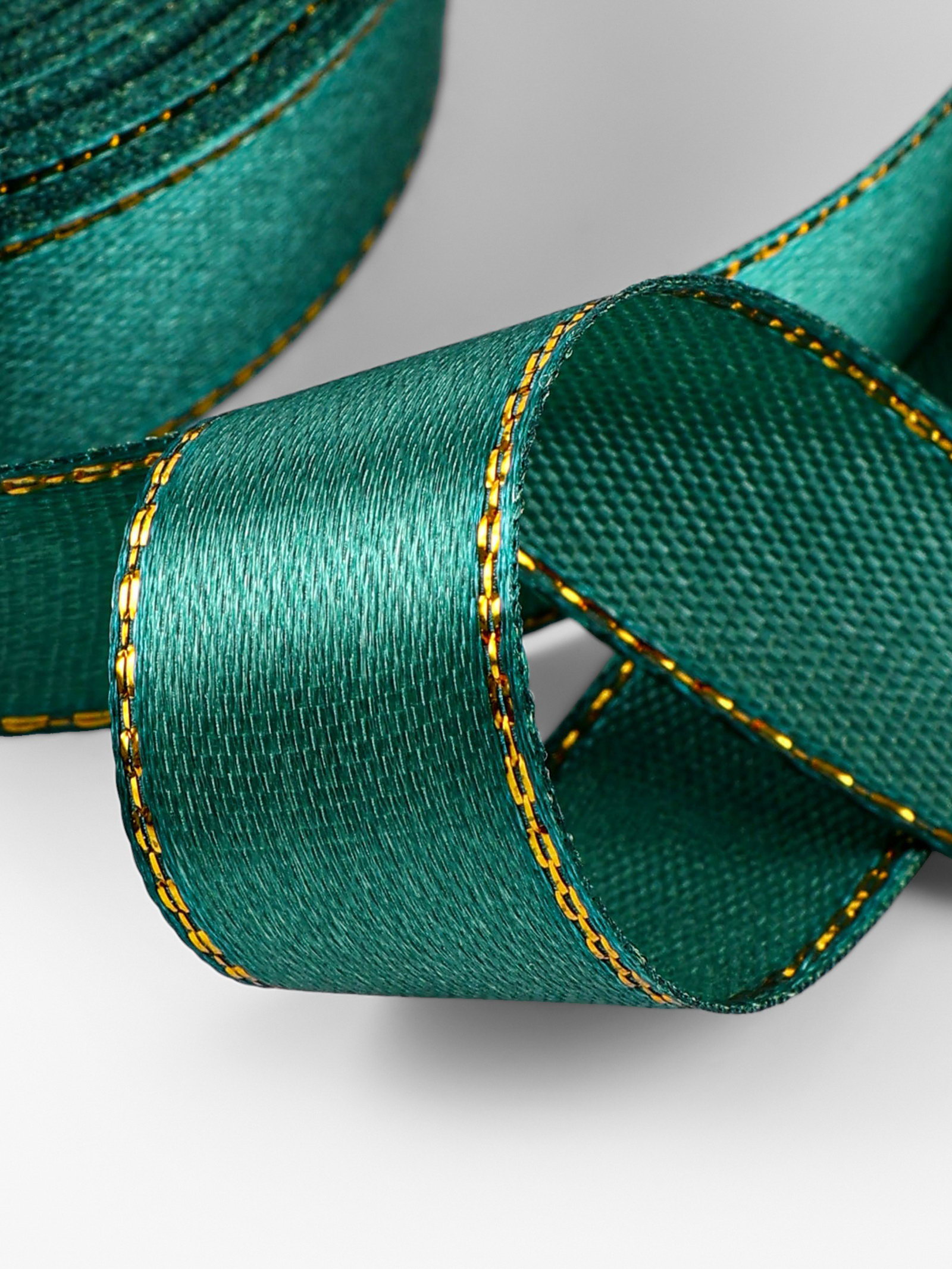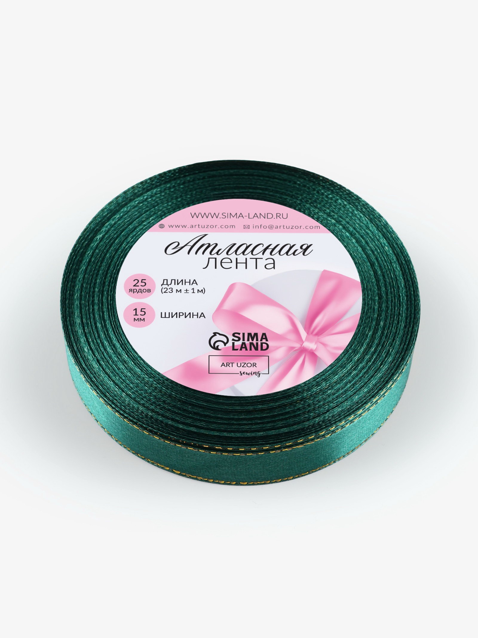 Лента атласная, с золотым люрексом, 15 мм, 23+-1 м, тёмно-зелёная №70, 9x9x1.5 см., Арт Узор, Китай