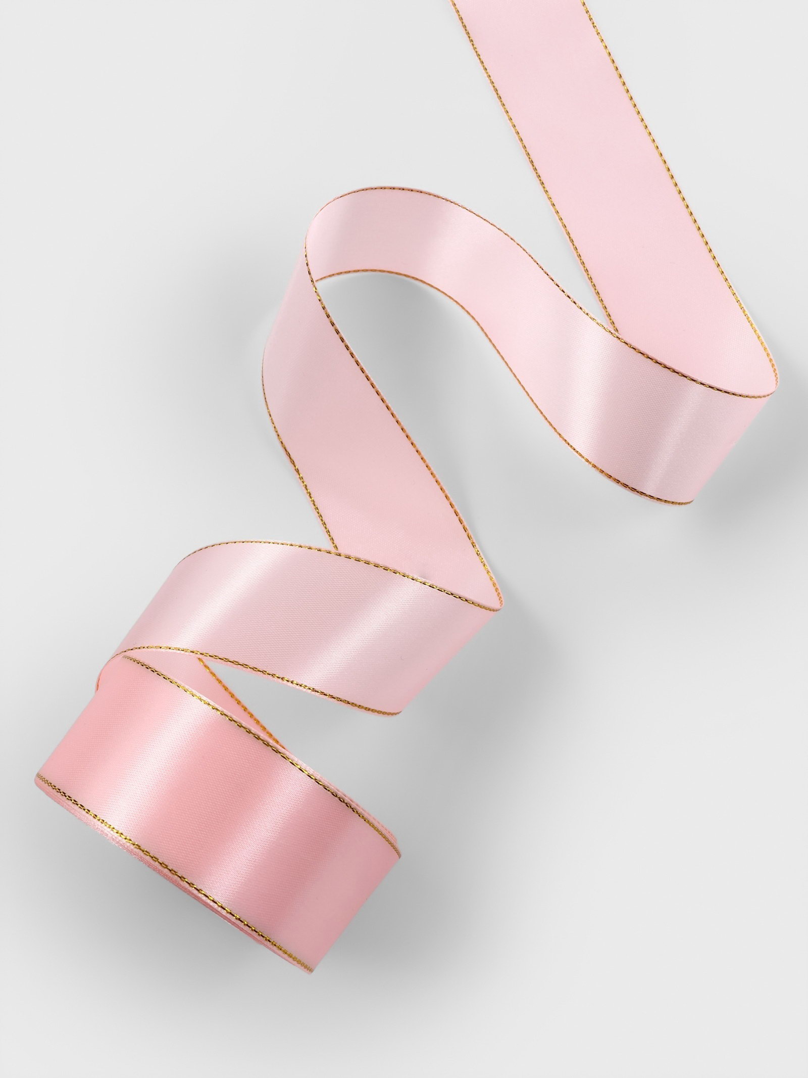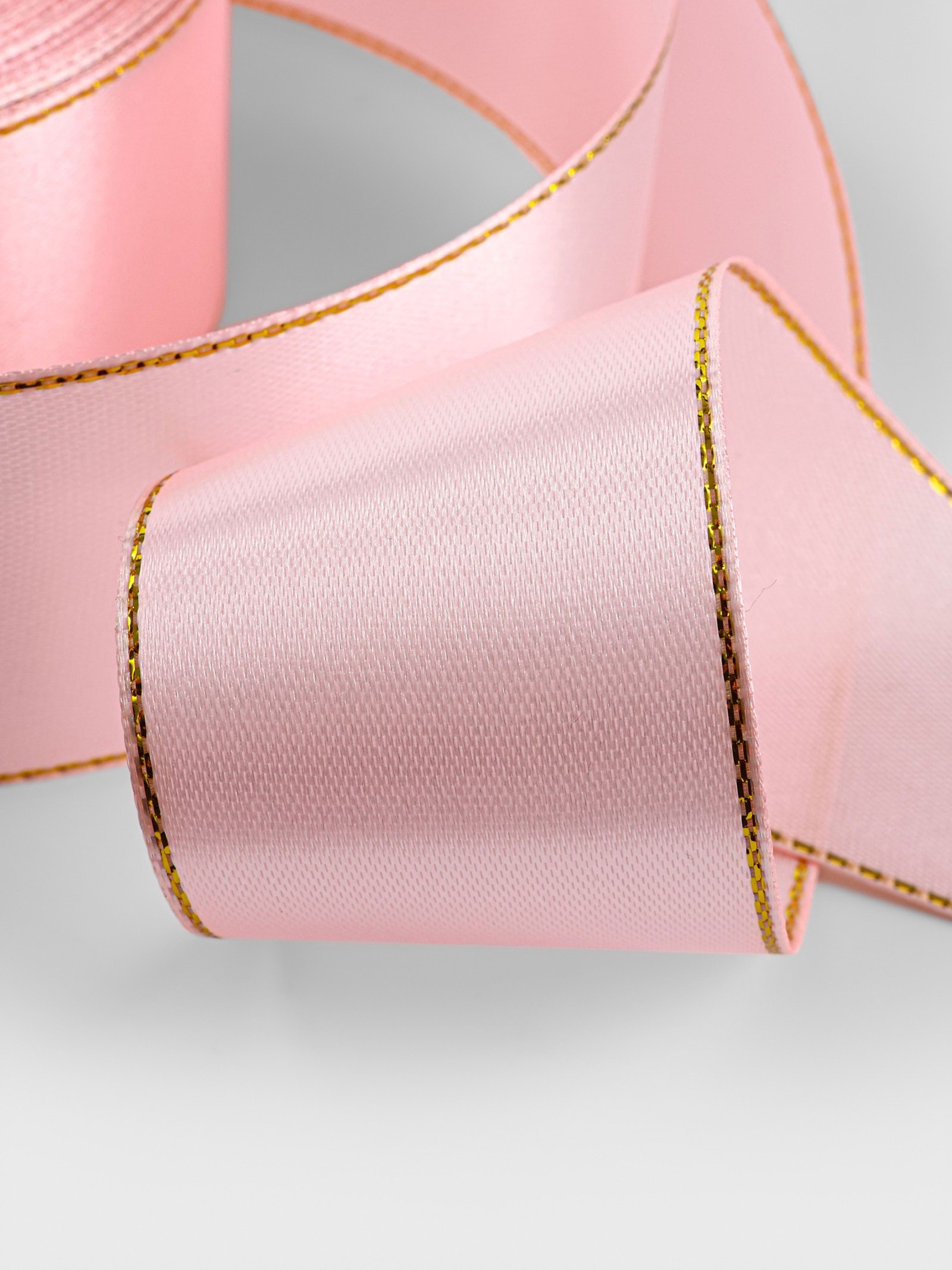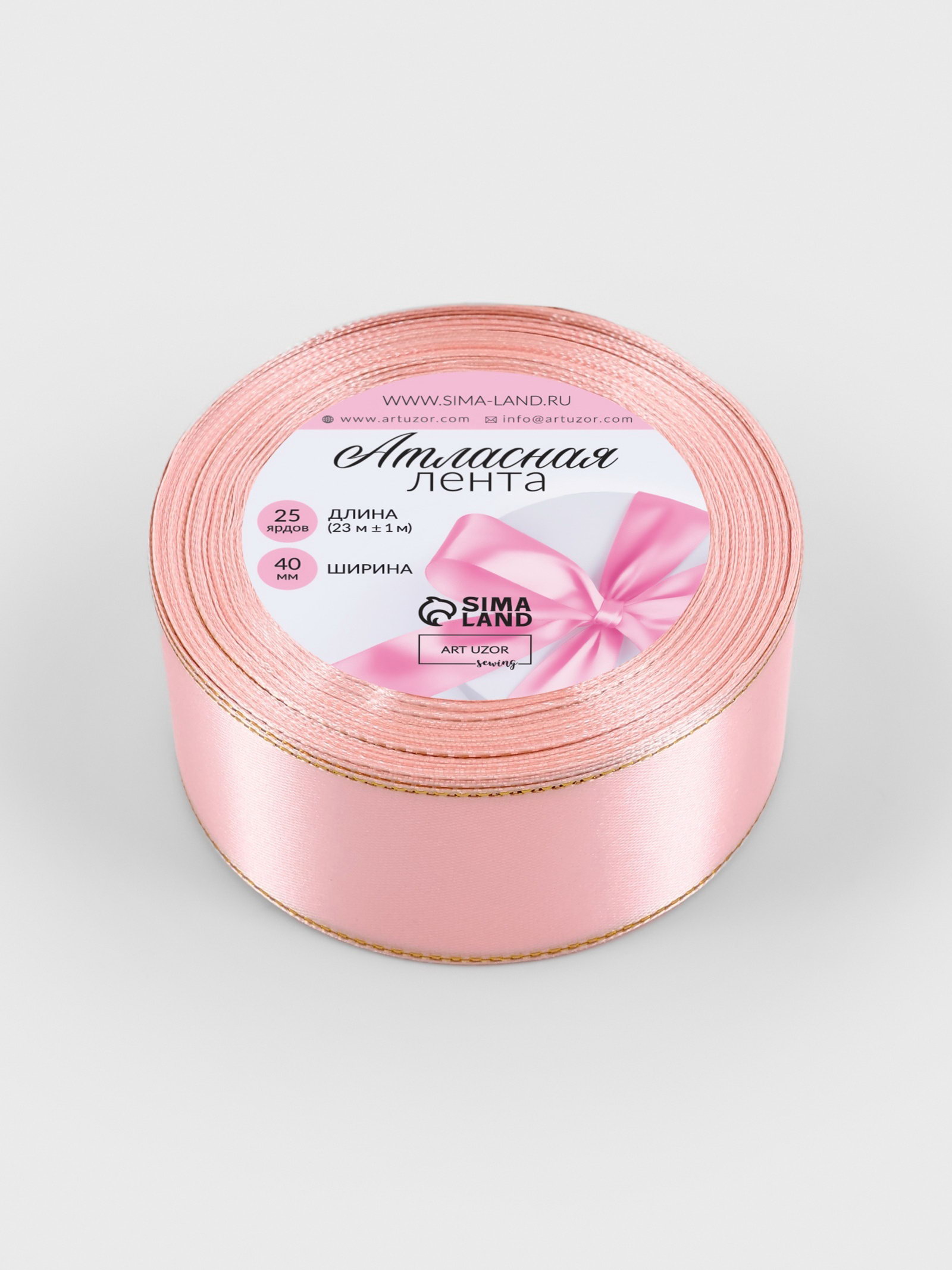 Лента атласная, с золотым люрексом, 40 мм, 23+-1 м, розовая №04, 9x9x4 см., Арт Узор, Китай