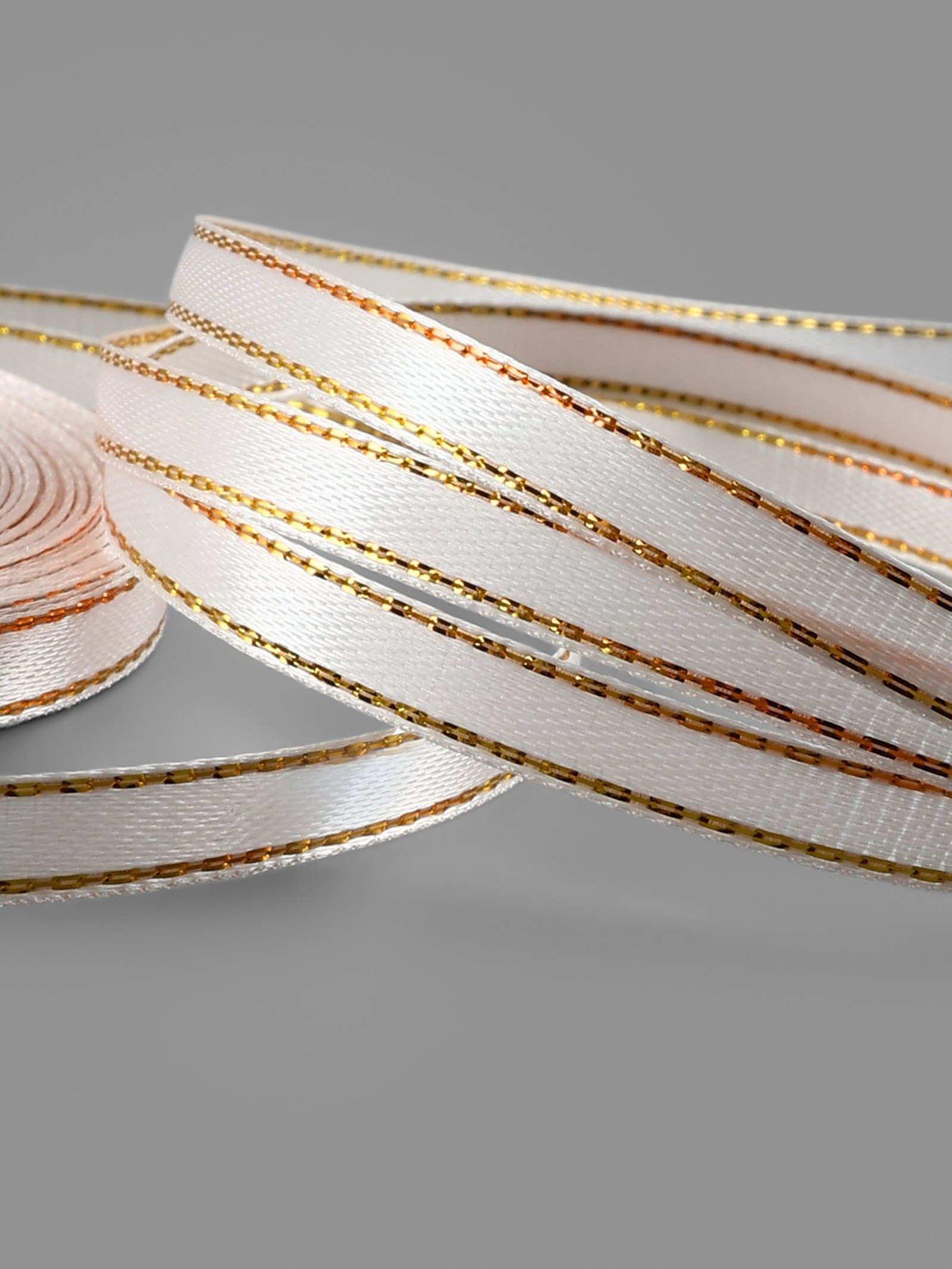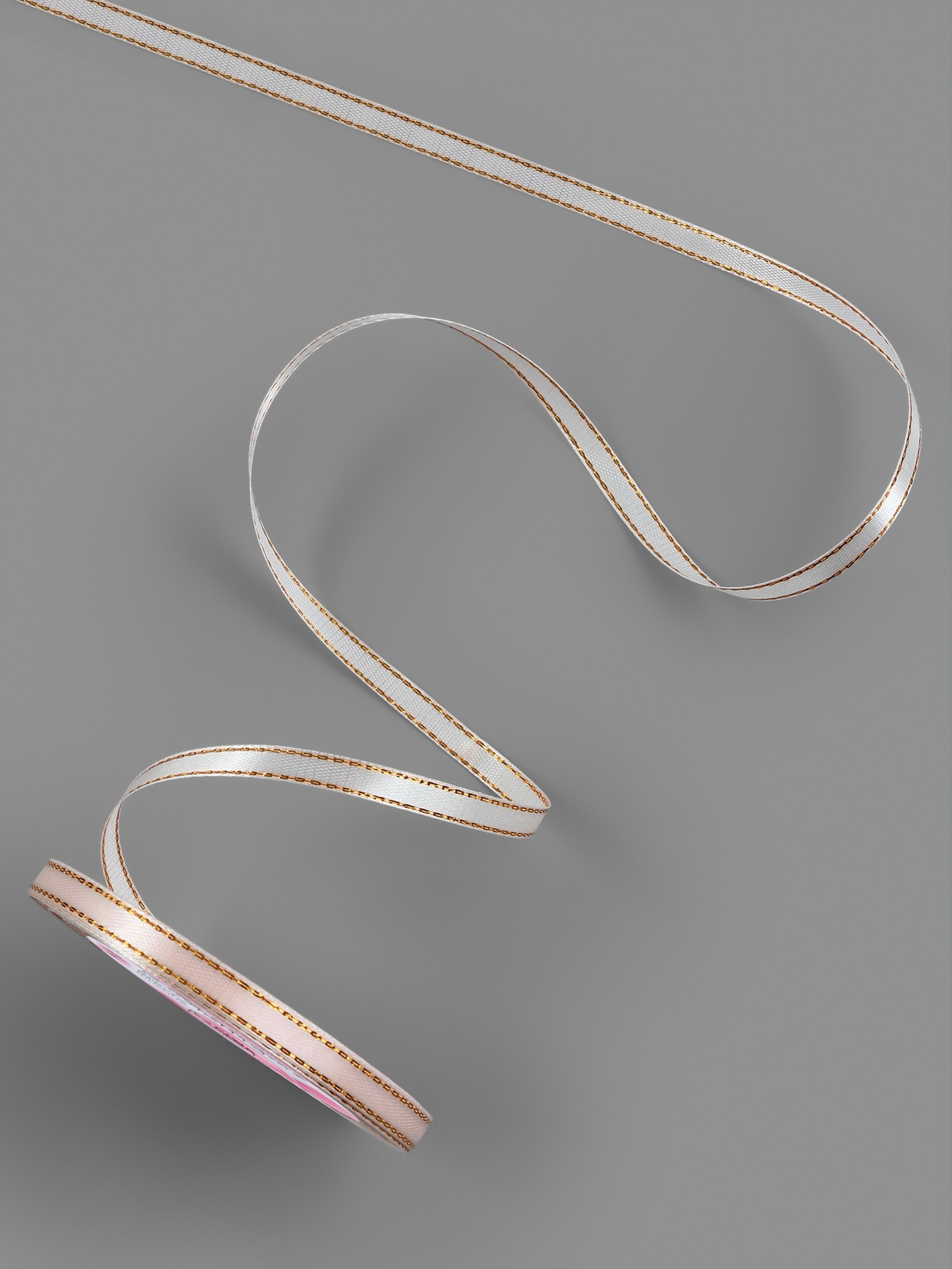 Лента атласная, с золотым люрексом, 6 мм, 23+-1 м, лилово-белая №119, 9x9x0.6 см., Арт Узор, Китай