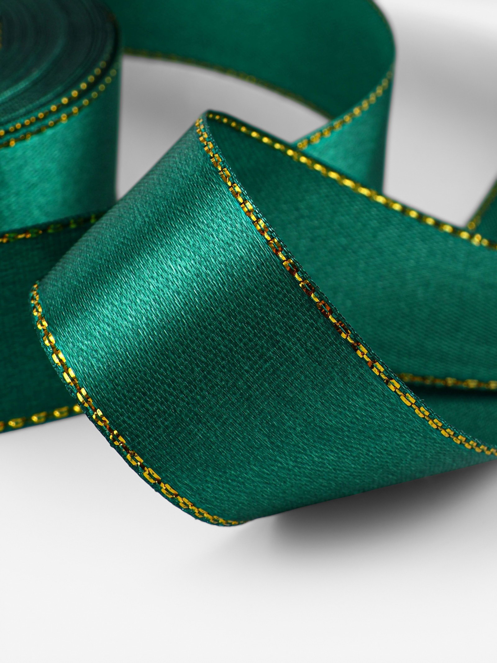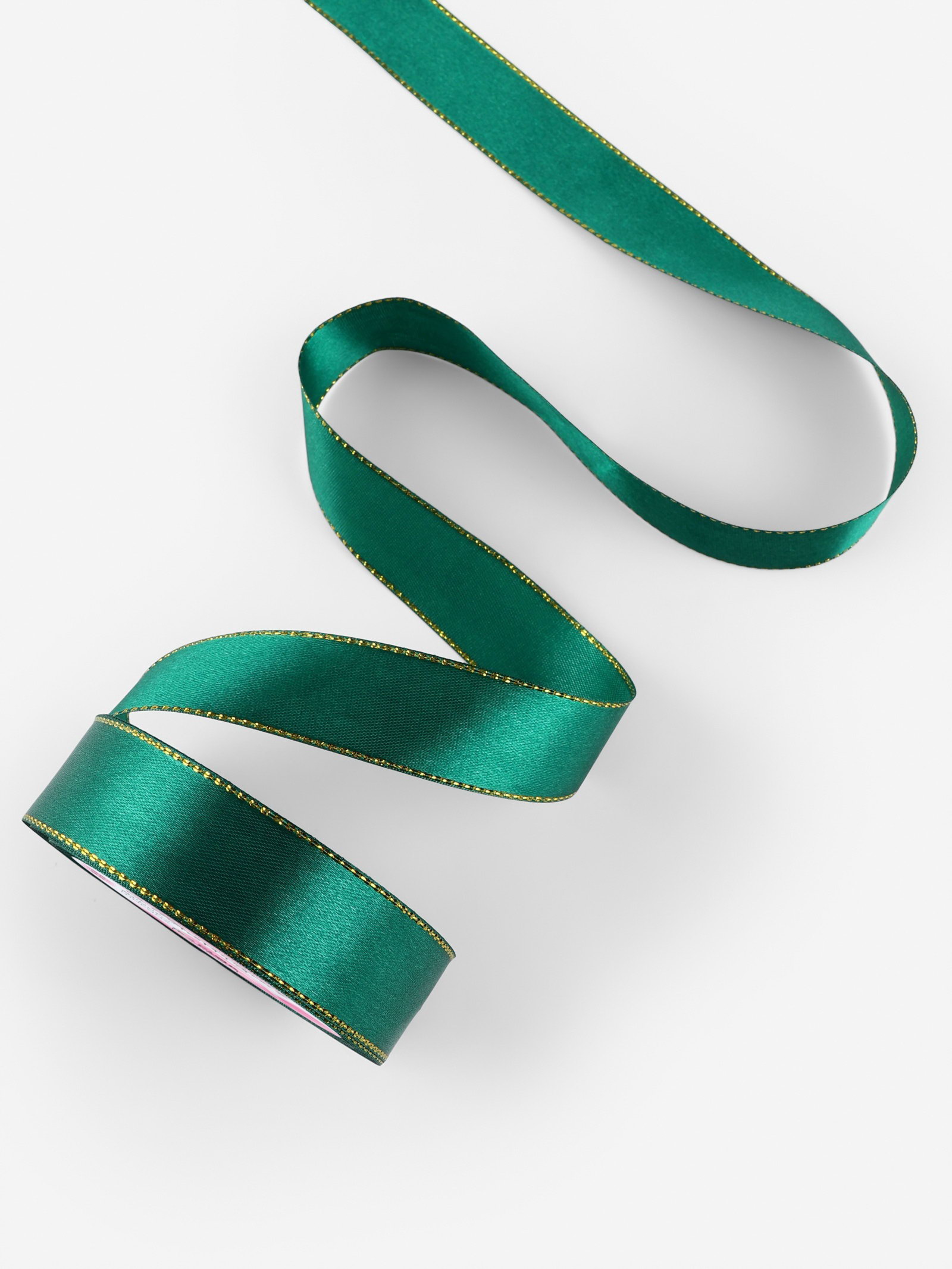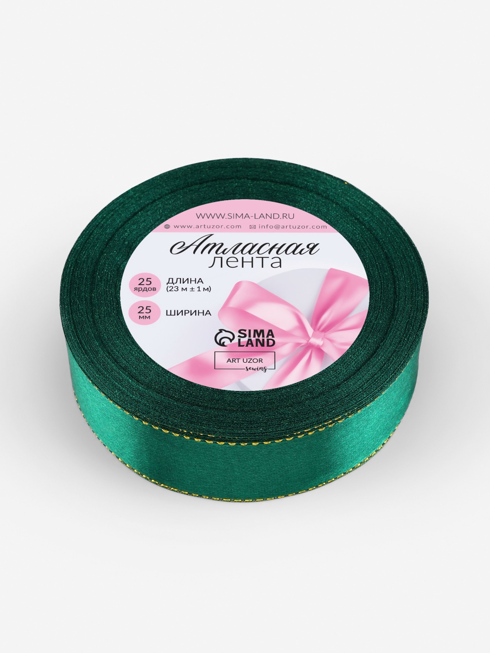 Лента атласная, с золотым люрексом, 25 мм, 23+-1 м, зелёная №168, 9x9x2.5 см., Арт Узор, Китай