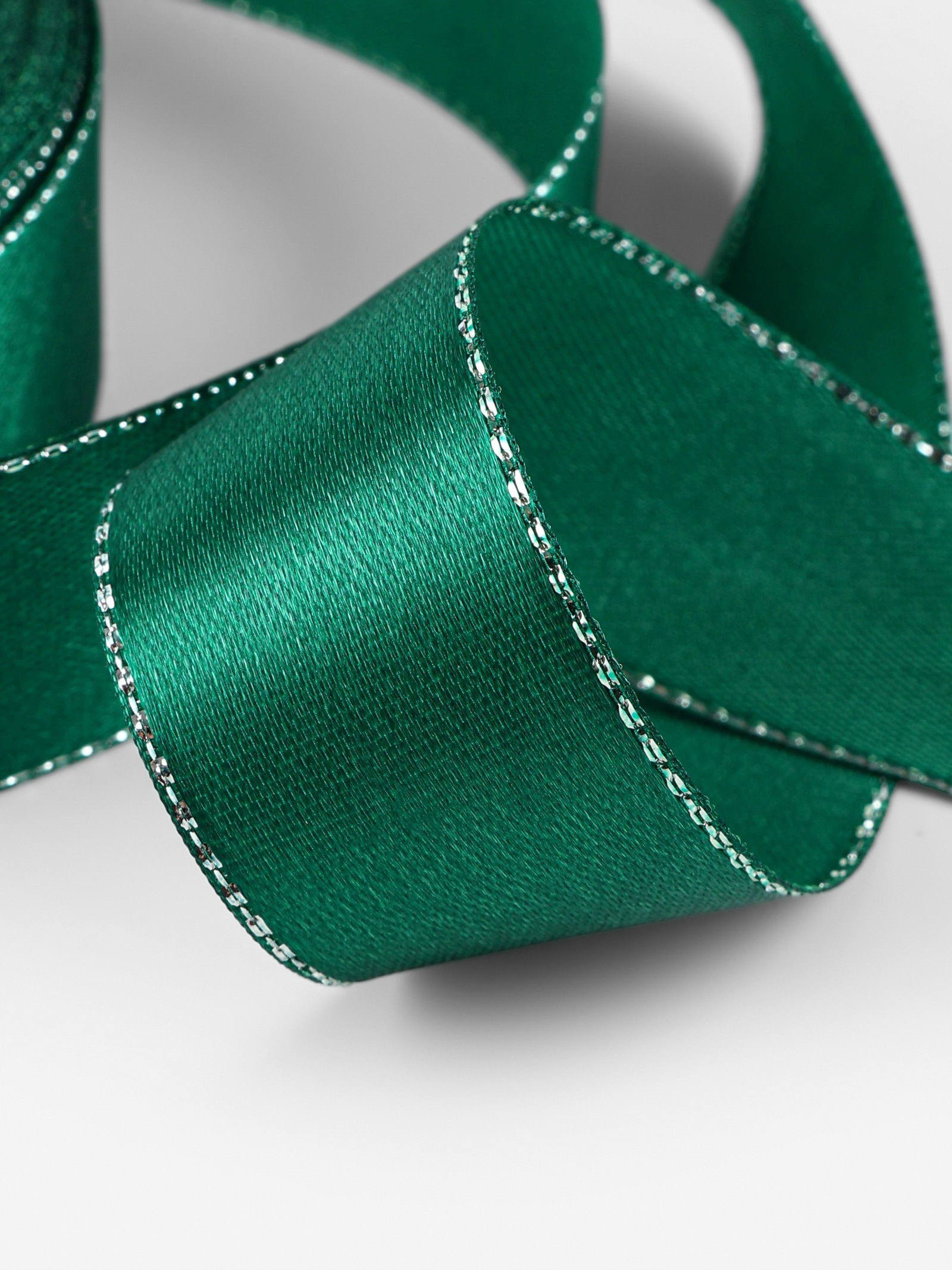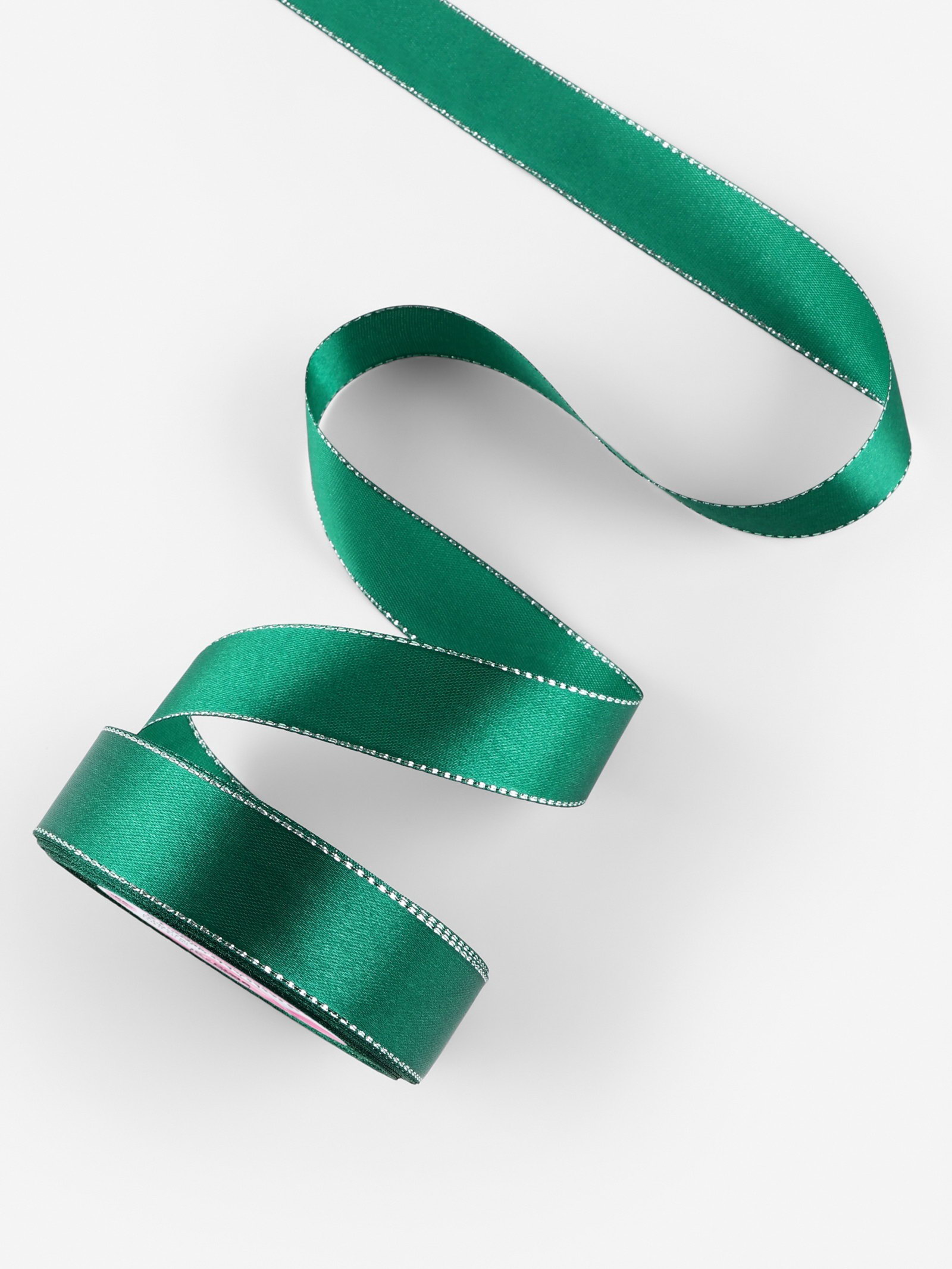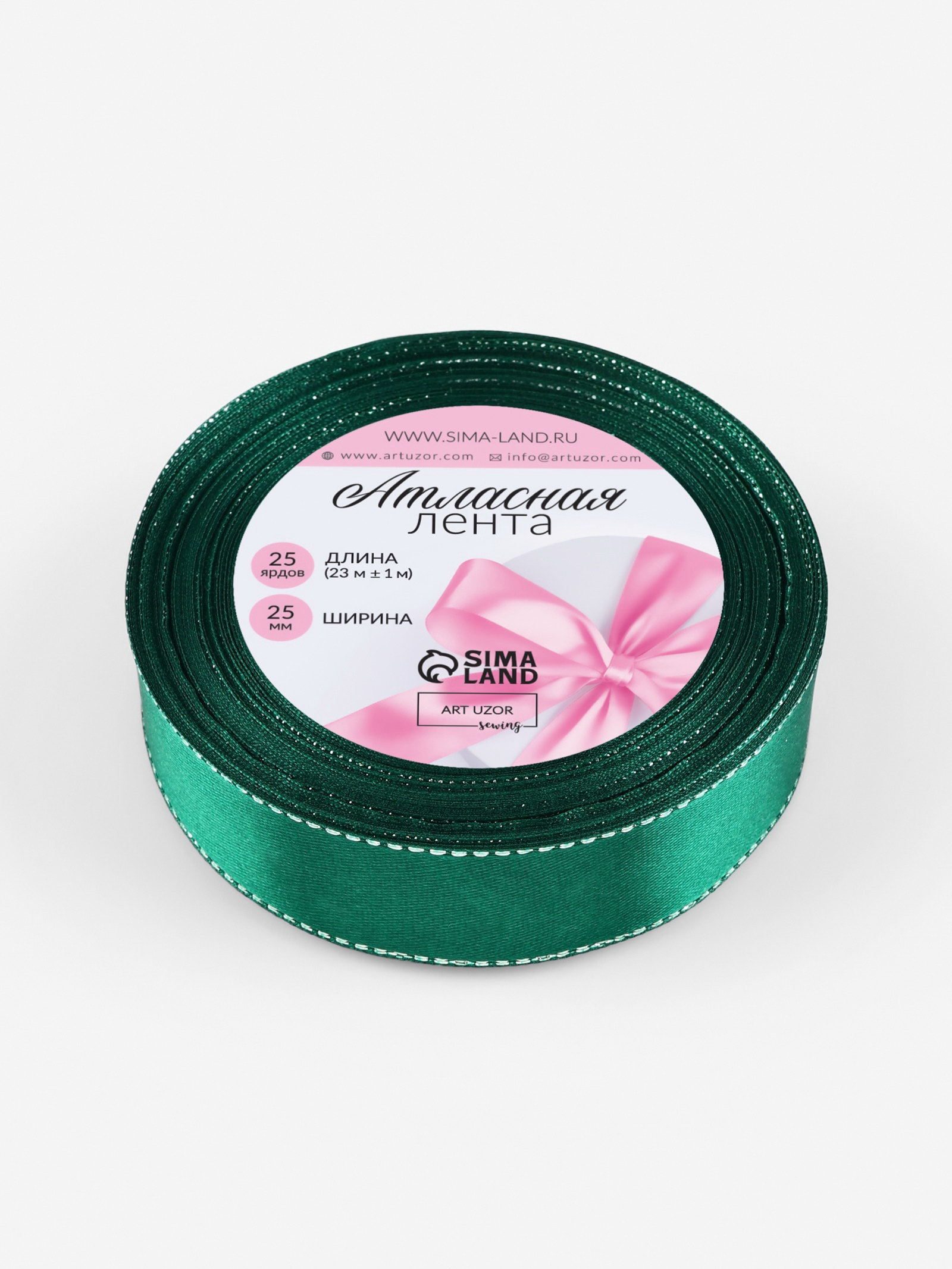 Лента атласная, с серебряным люрексом, 25 мм, 23+-1 м, зелёная №168, 9x9x2.5 см., Арт Узор, Китай
