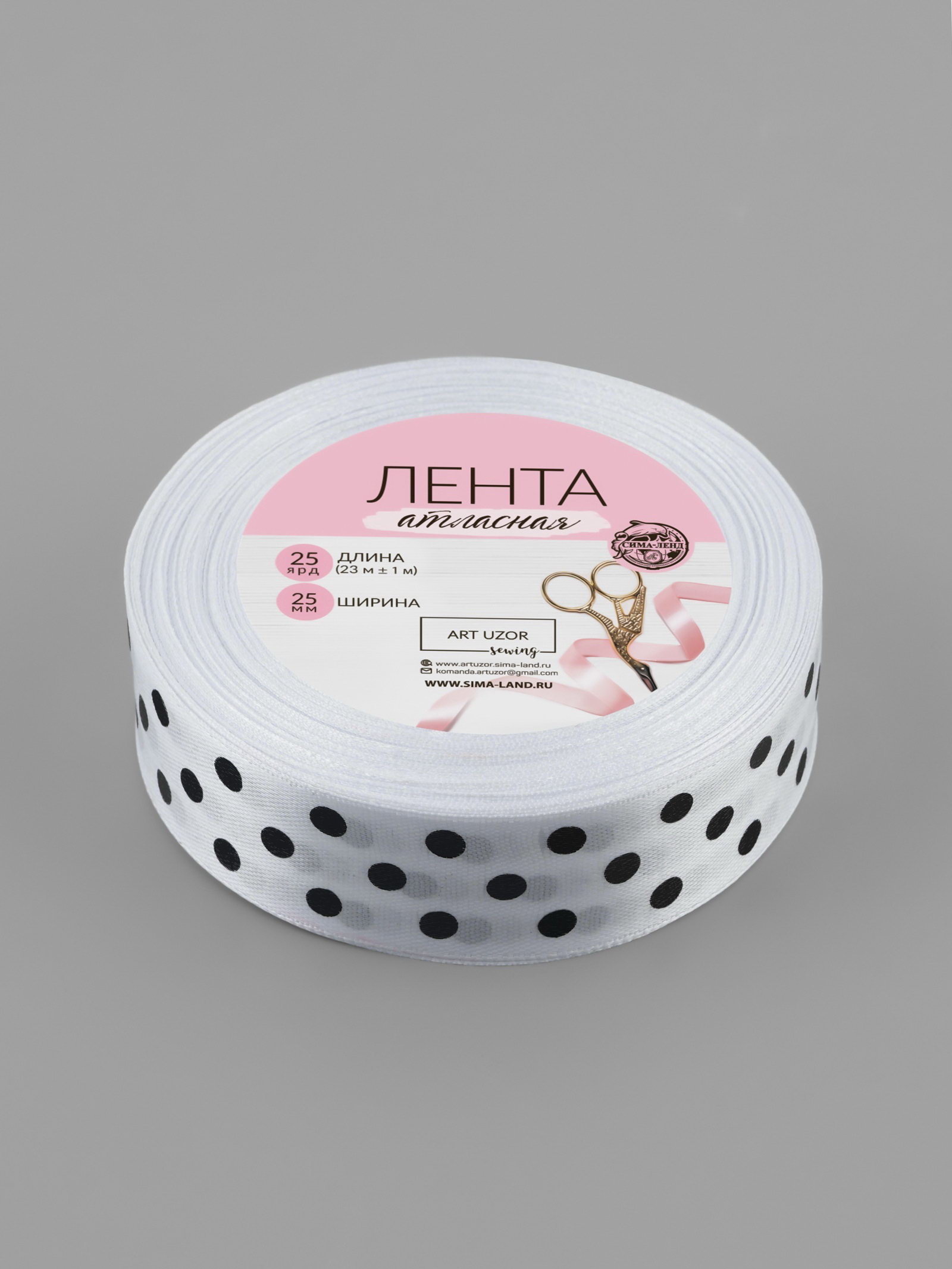 Лента атласная "Горох", 25 мм, 23+-1 м, белая №001, 9x9x2.5 см., Арт Узор, Китай