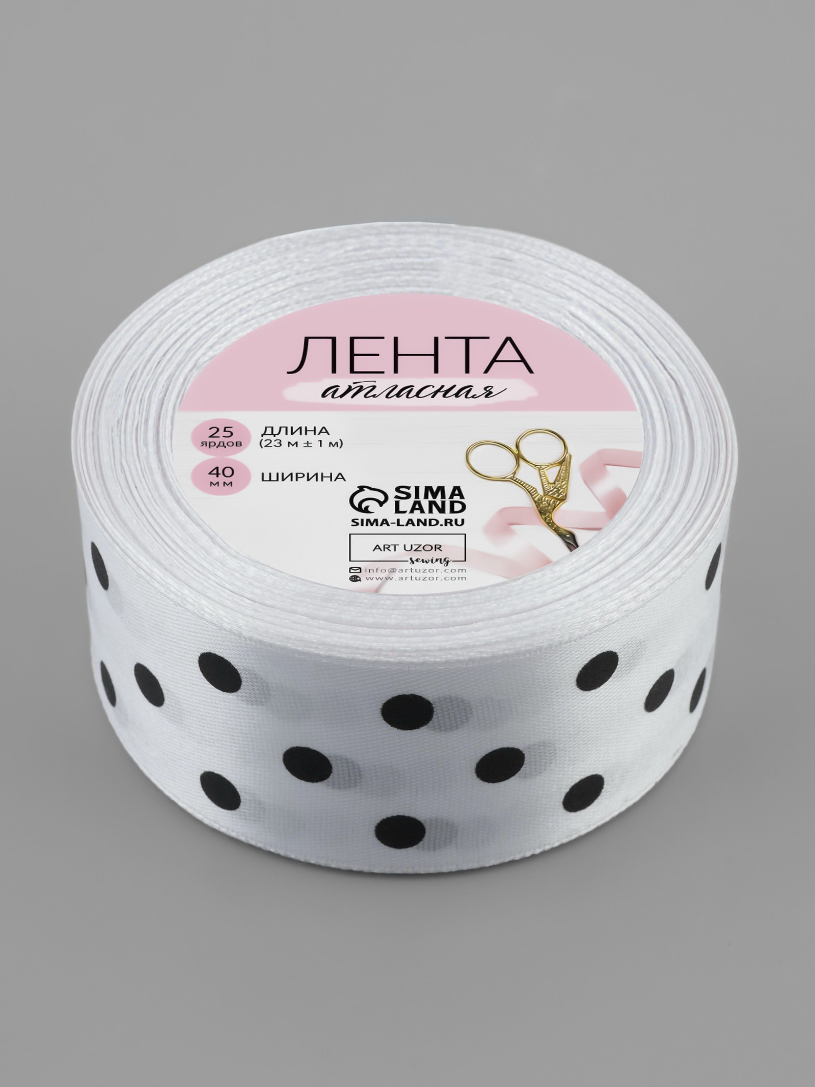 Лента атласная "Горошек", 40 мм, 23+-1 м, белая №001, 9x9x4 см., Арт Узор, Китай