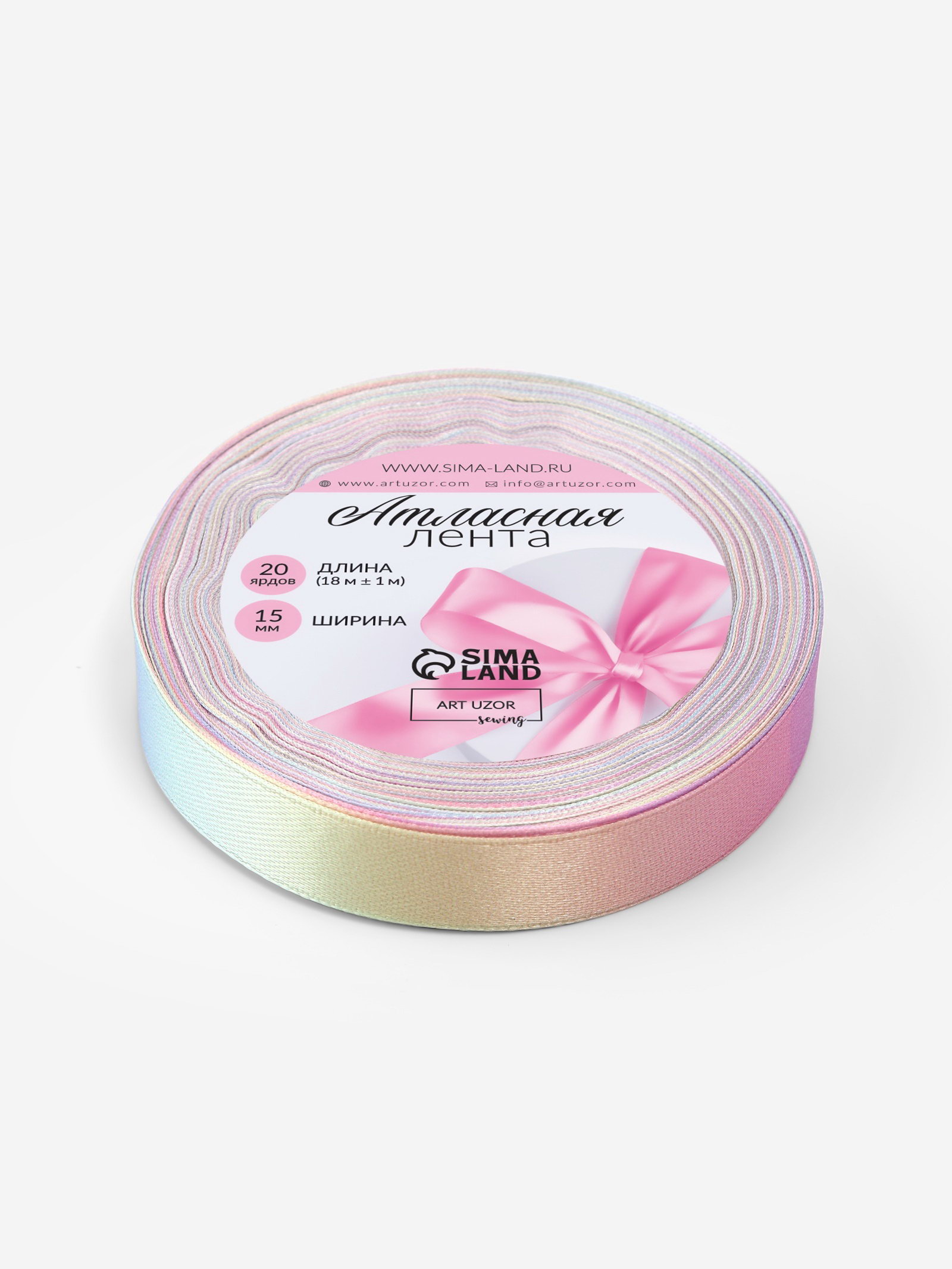Лента атласная "Радуга", 15 мм x 18 +- 1 м, разноцветная, 9x9x1.5 см., Арт Узор, Китай