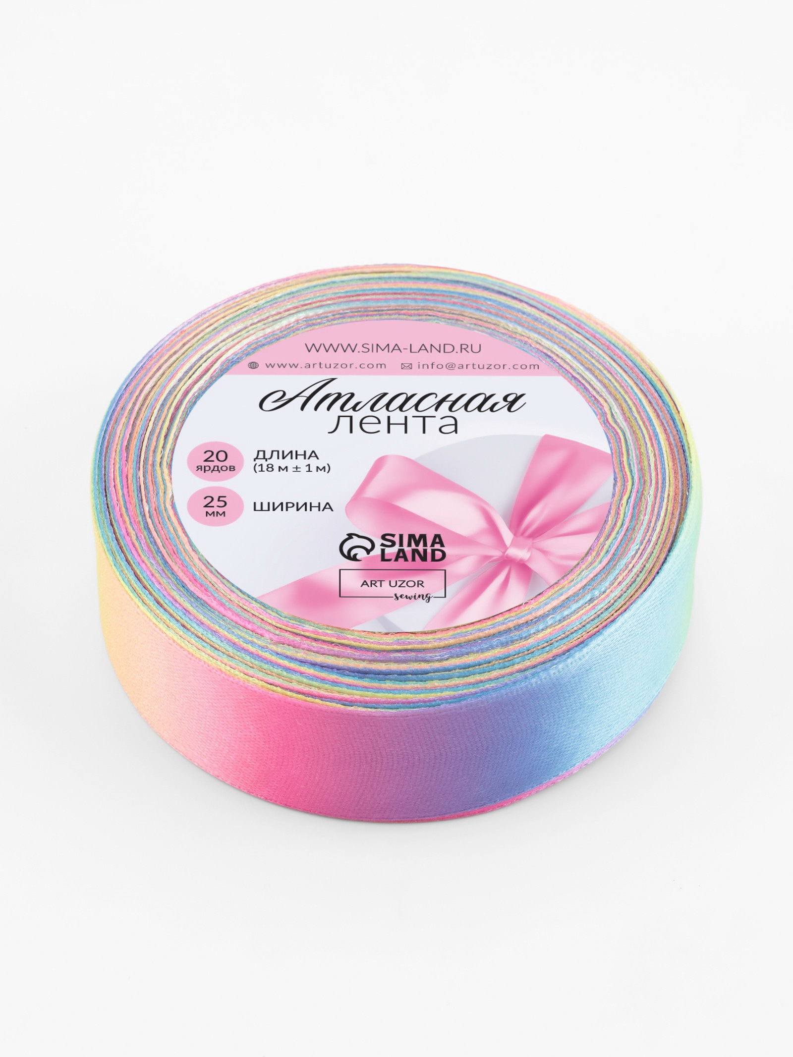 Лента атласная "Радуга", 25 мм, 18+-1 м, разноцветная, 9x9x2.5 см., Арт Узор, Китай
