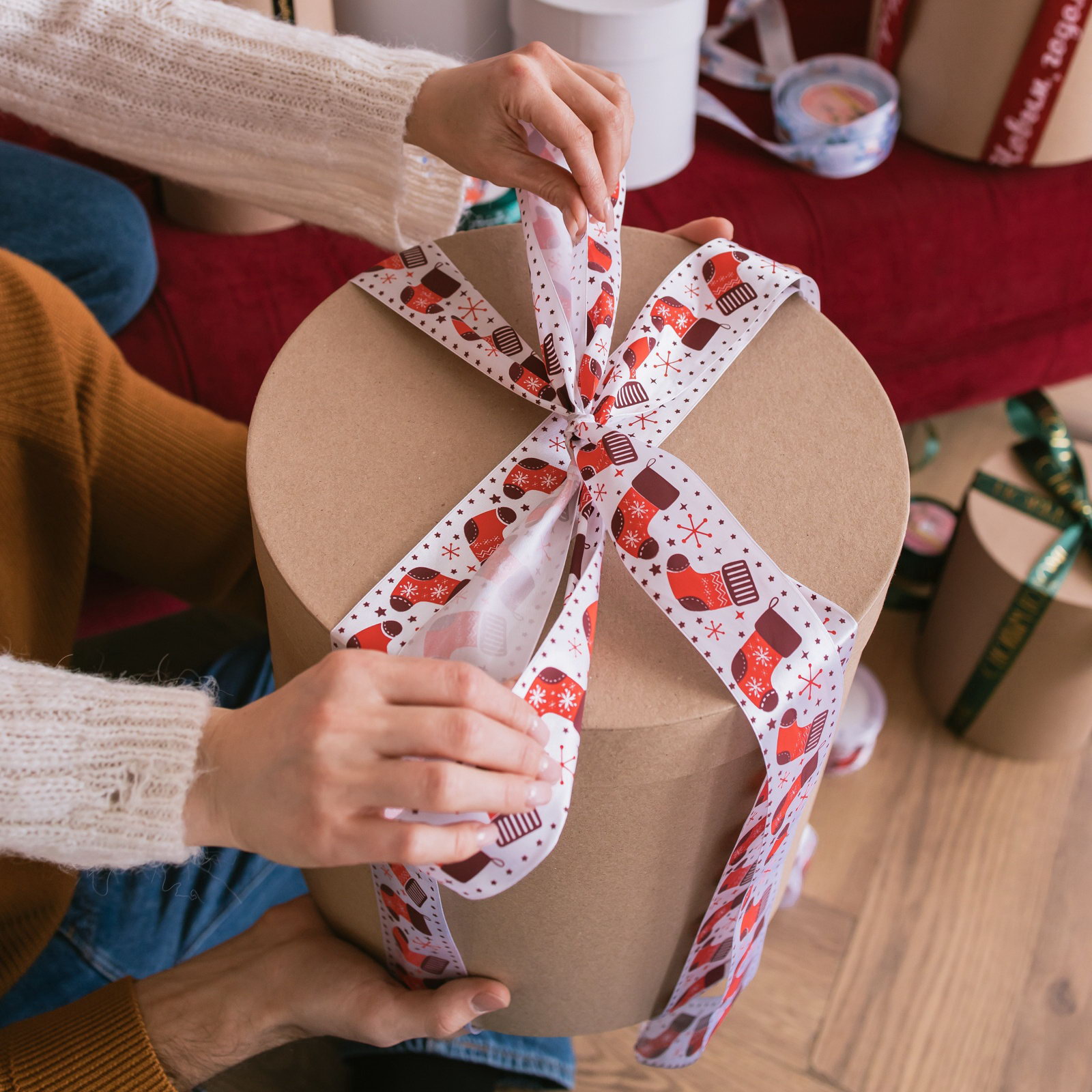 Лента атласная "Валенки", 50 мм, 23+-1 м, белая, 9x9x5 см., Дарите Счастье, Китай