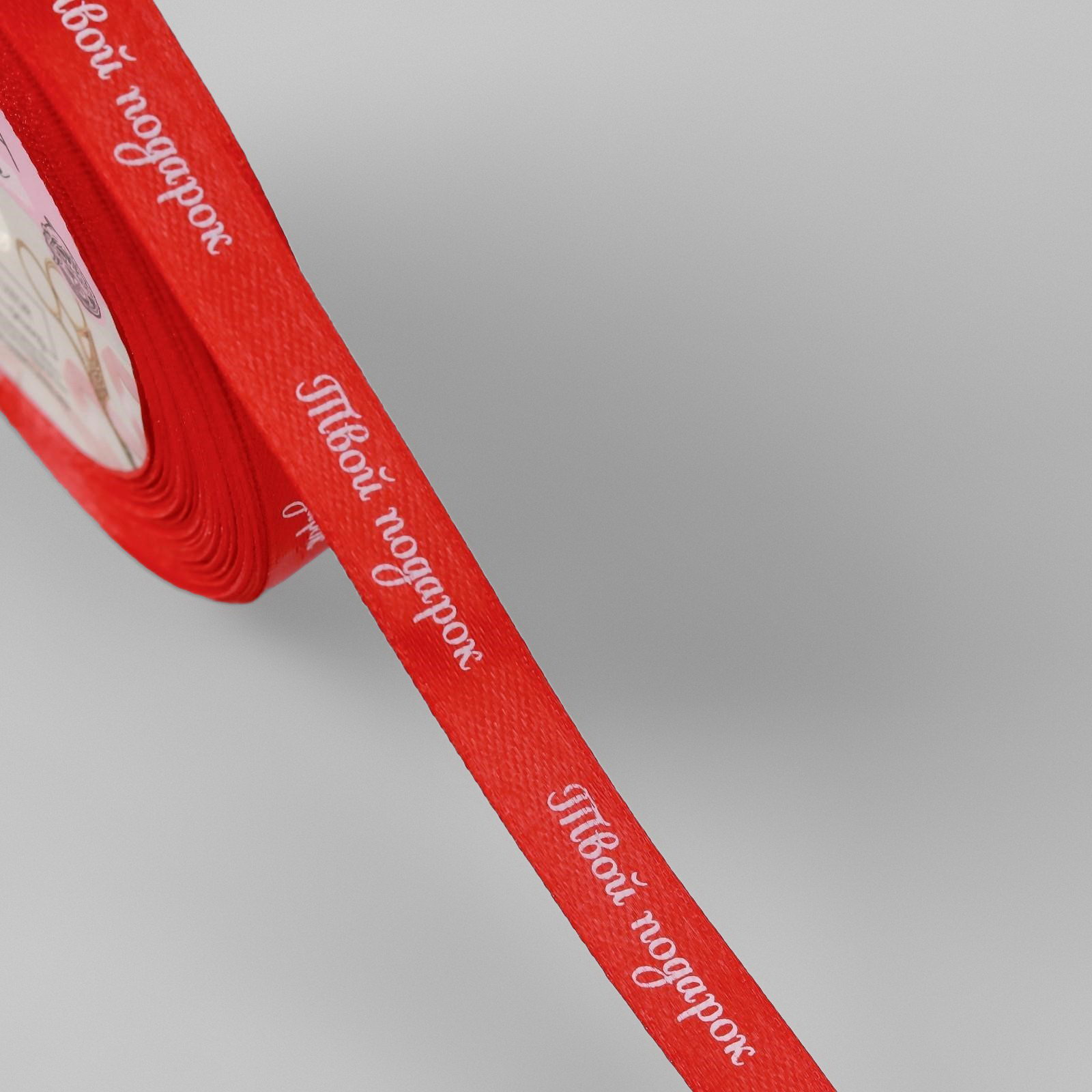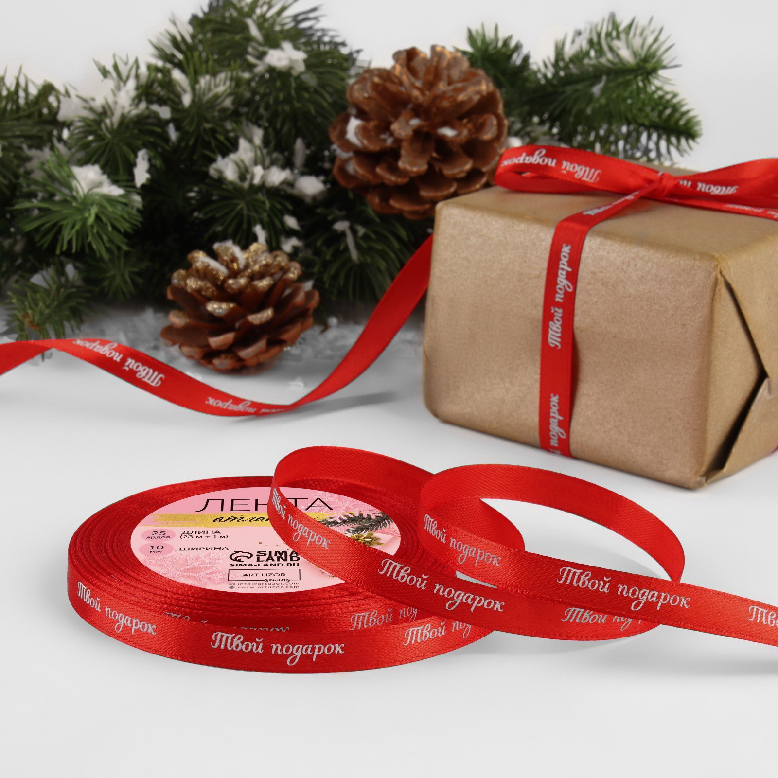 Лента атласная "Твой подарок", 10 мм, 23 +- 1 м, цвет красный №26, 9x9x1 см., Арт Узор, Китай