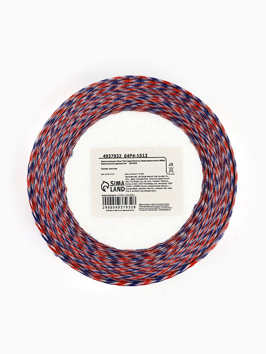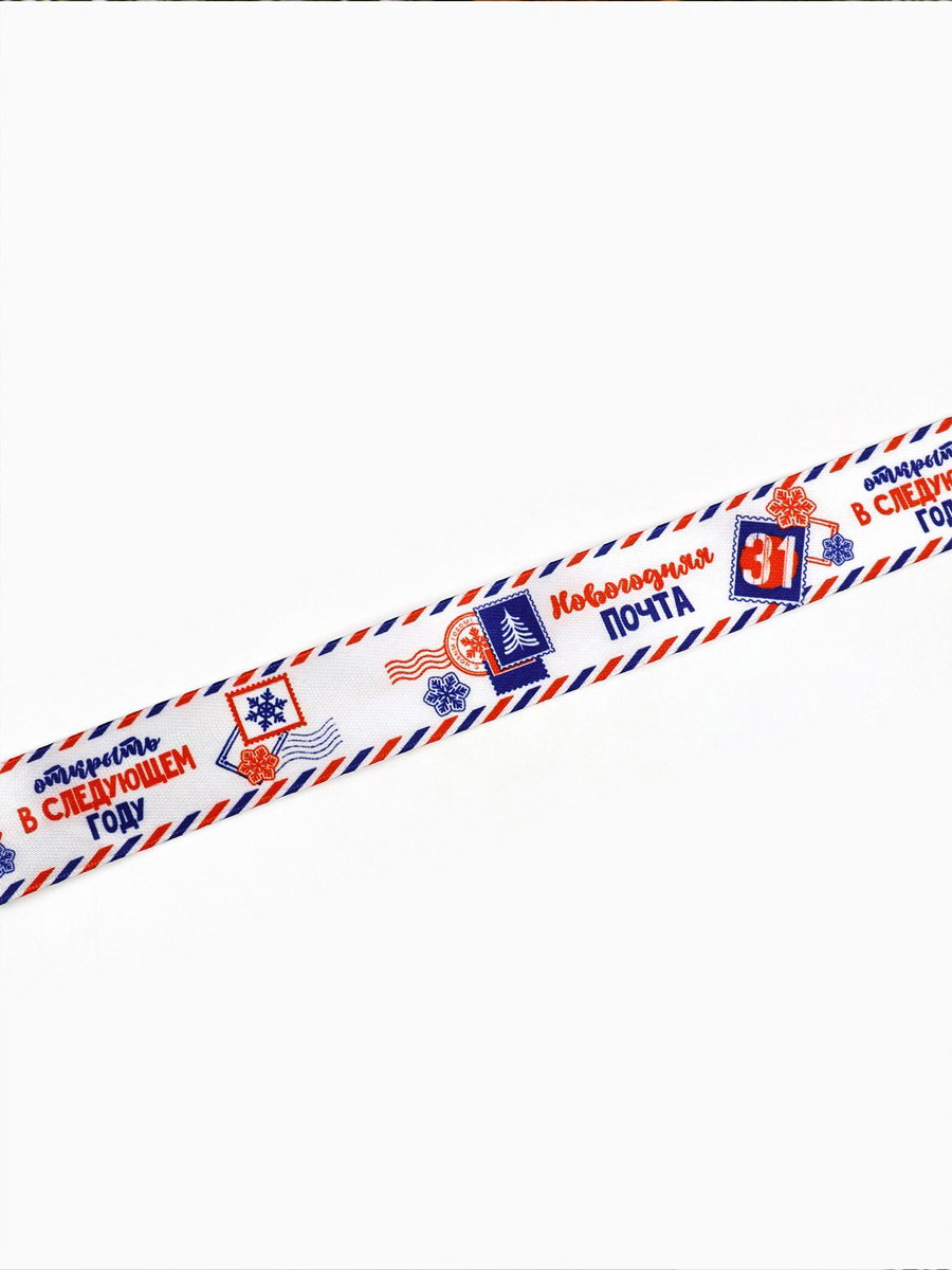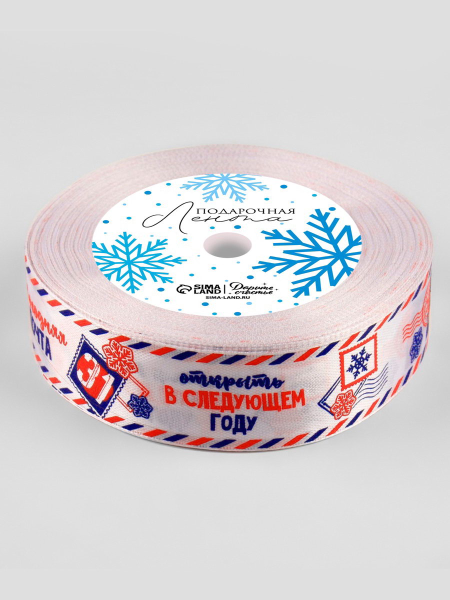 Лента атласная "Новогодняя почта", 25 мм, 23+-1 м, белая, 9x9x2.5 см., Дарите Счастье, Китай
