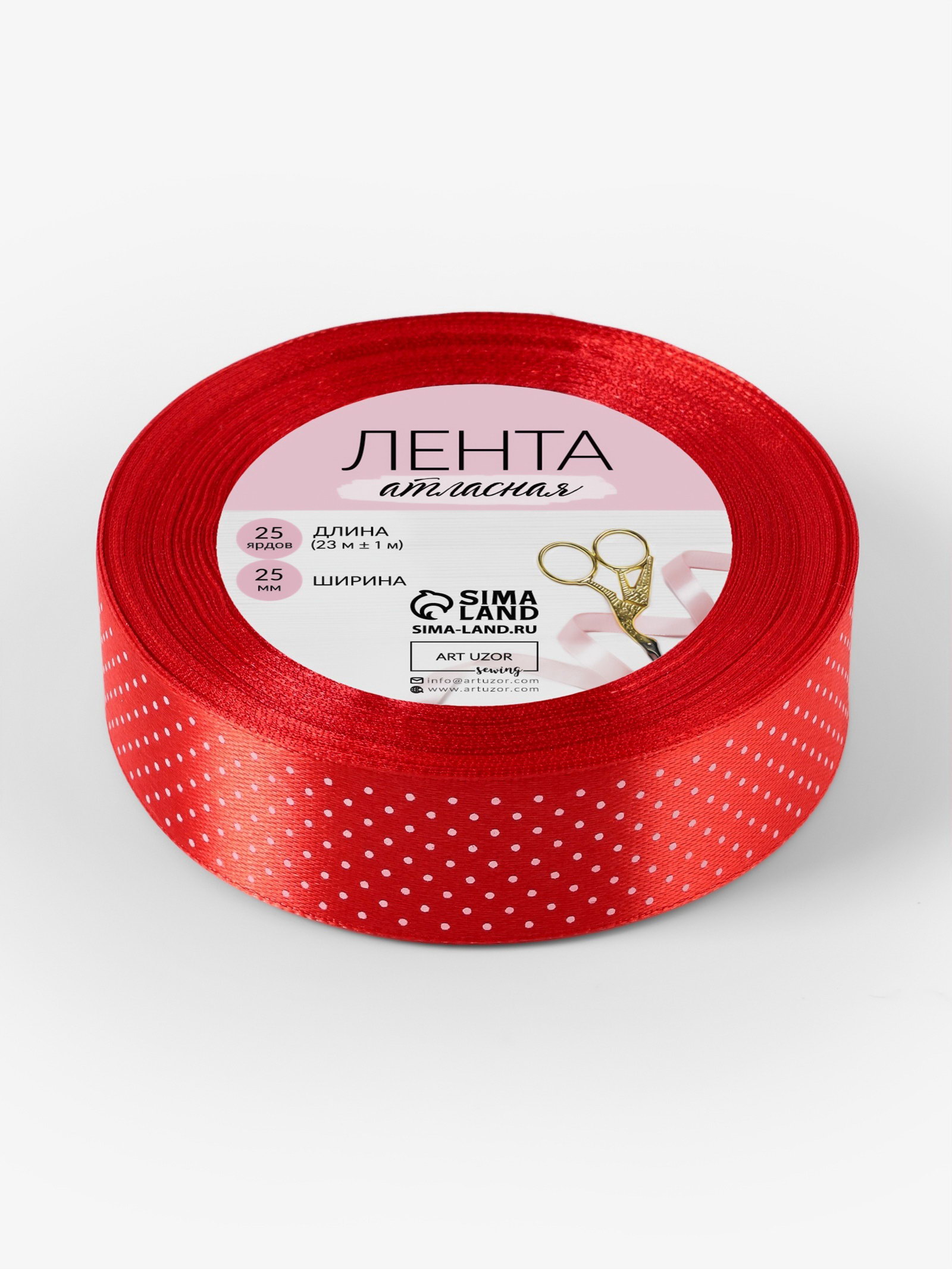 Лента атласная "Горошек", 25 мм, 23+-1 м, красная №026, 9x9x2.5 см., Арт Узор, Китай