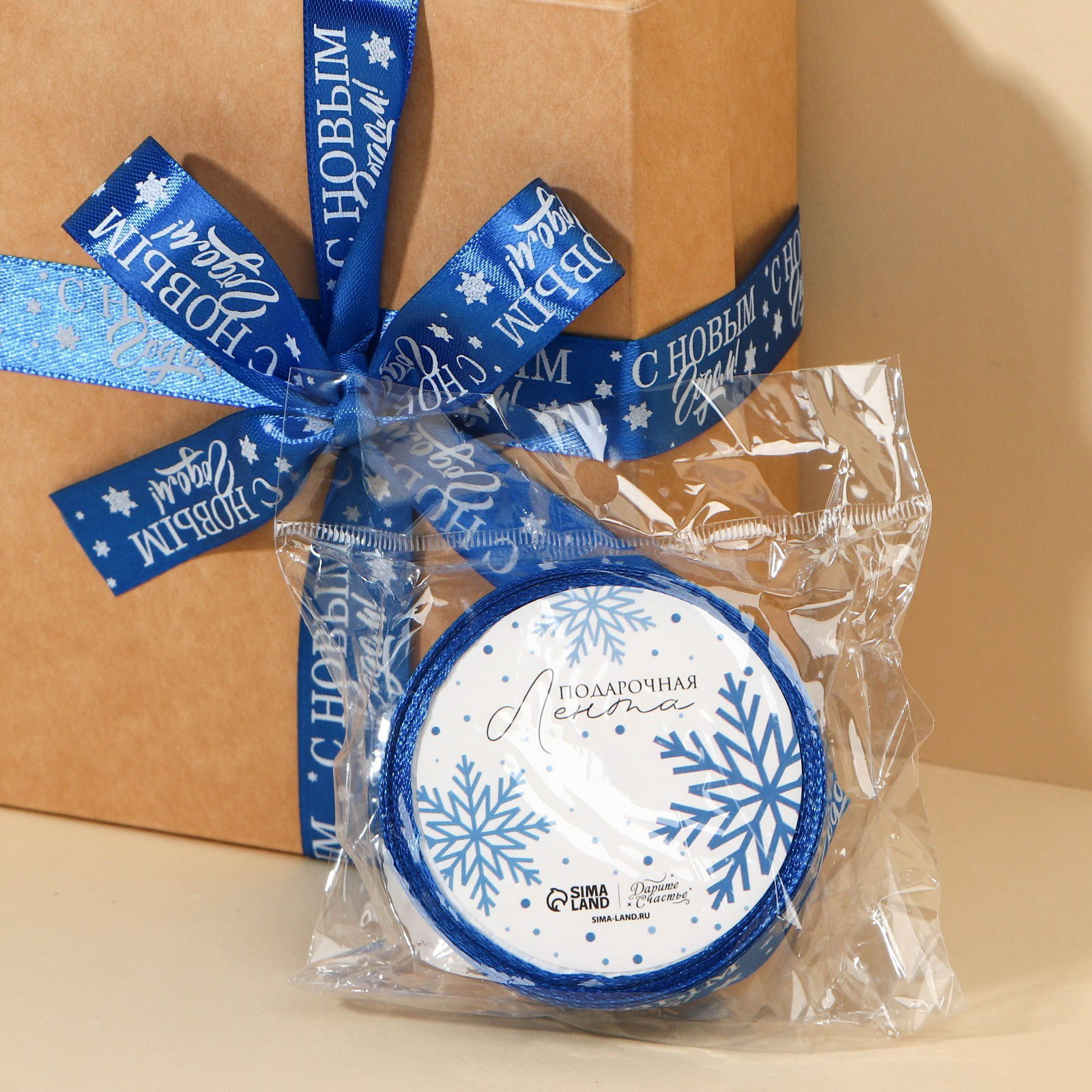 Лента атласная новогодняя "Праздничная", 2 см x 5 м, синяя, 8x8x2 см., Дарите Счастье, Китай