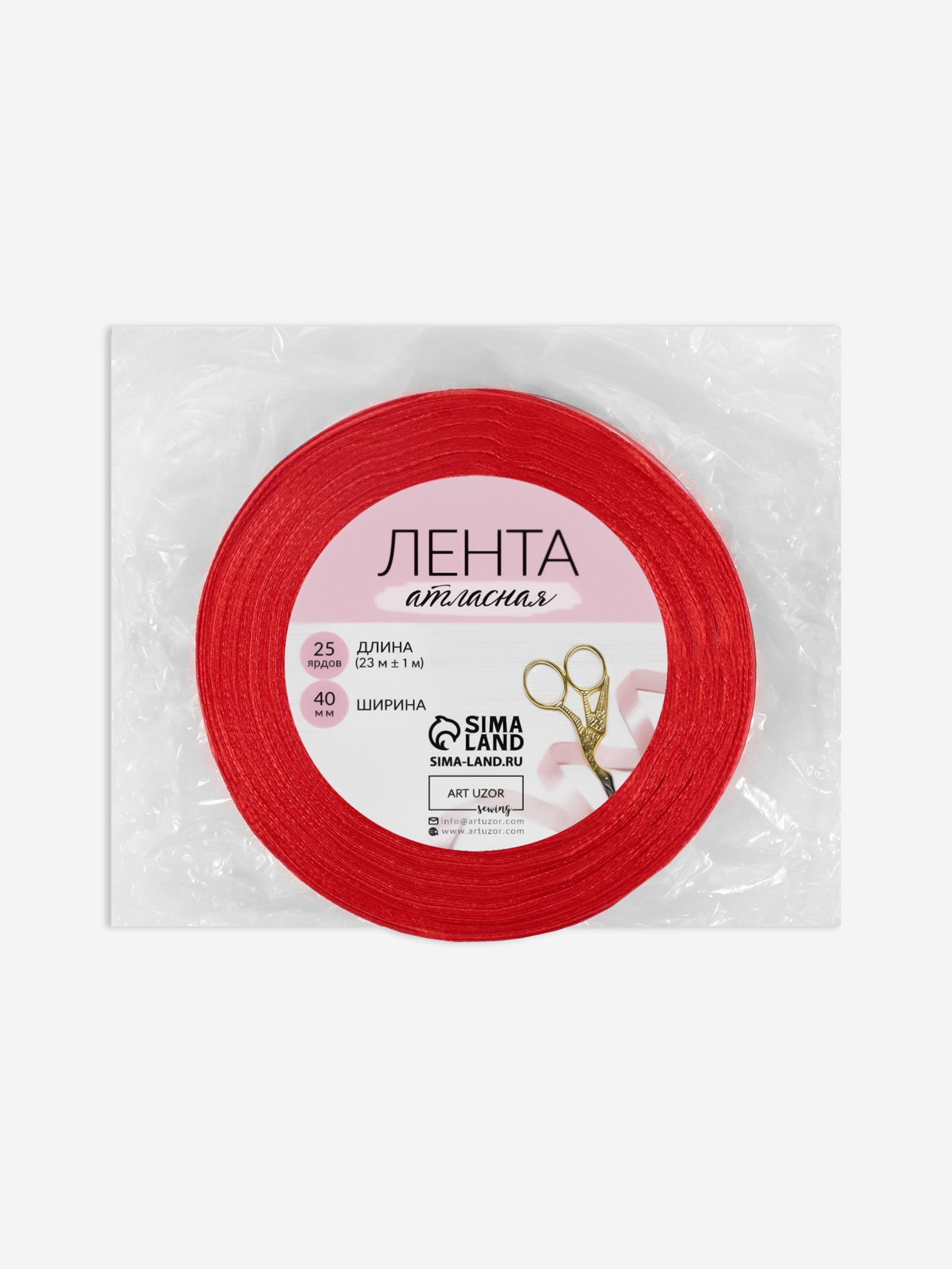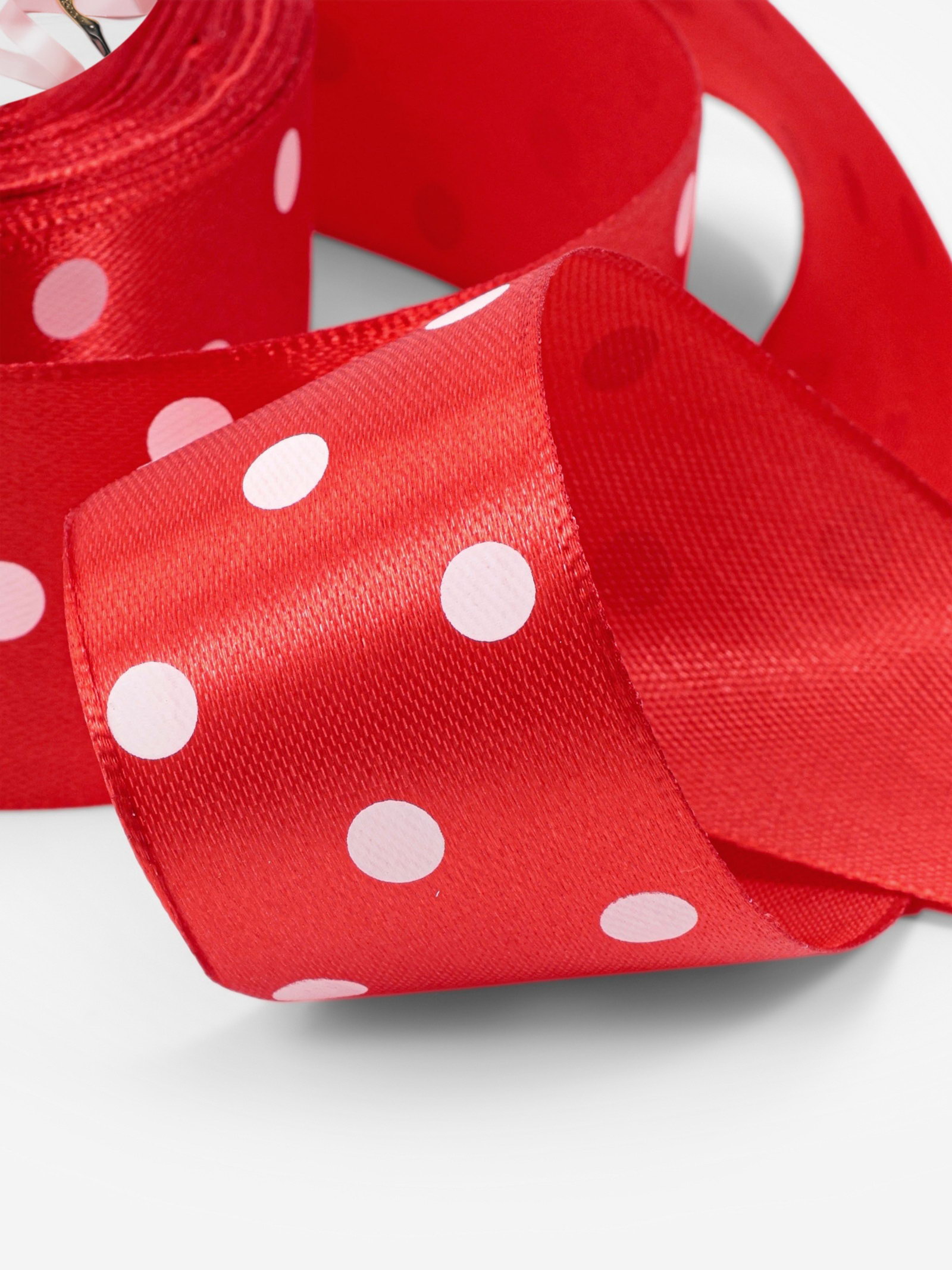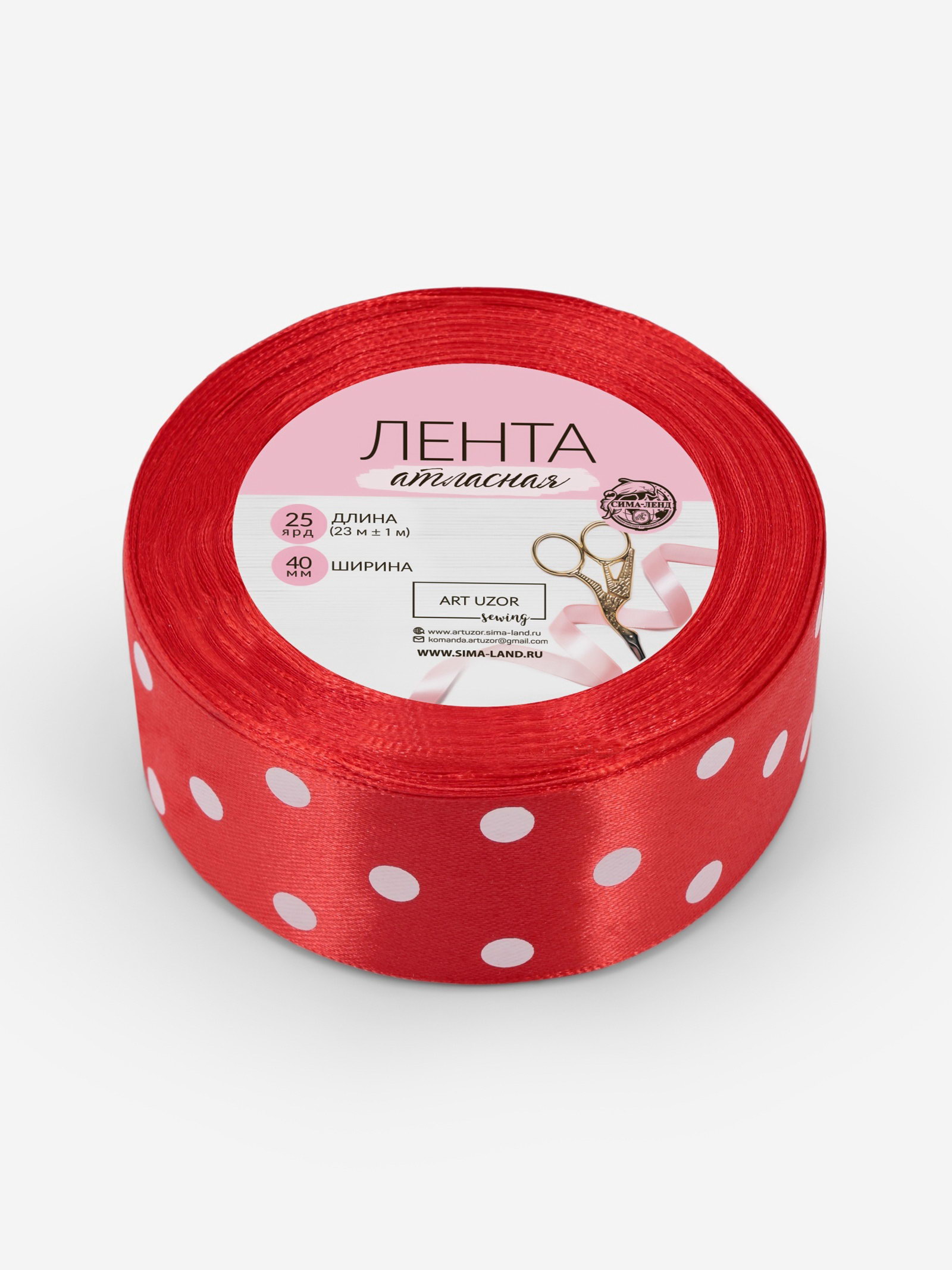 Лента атласная "Горошек", 40 мм, 23+-1 м, красная №026, 9x9x4 см., Арт Узор, Китай
