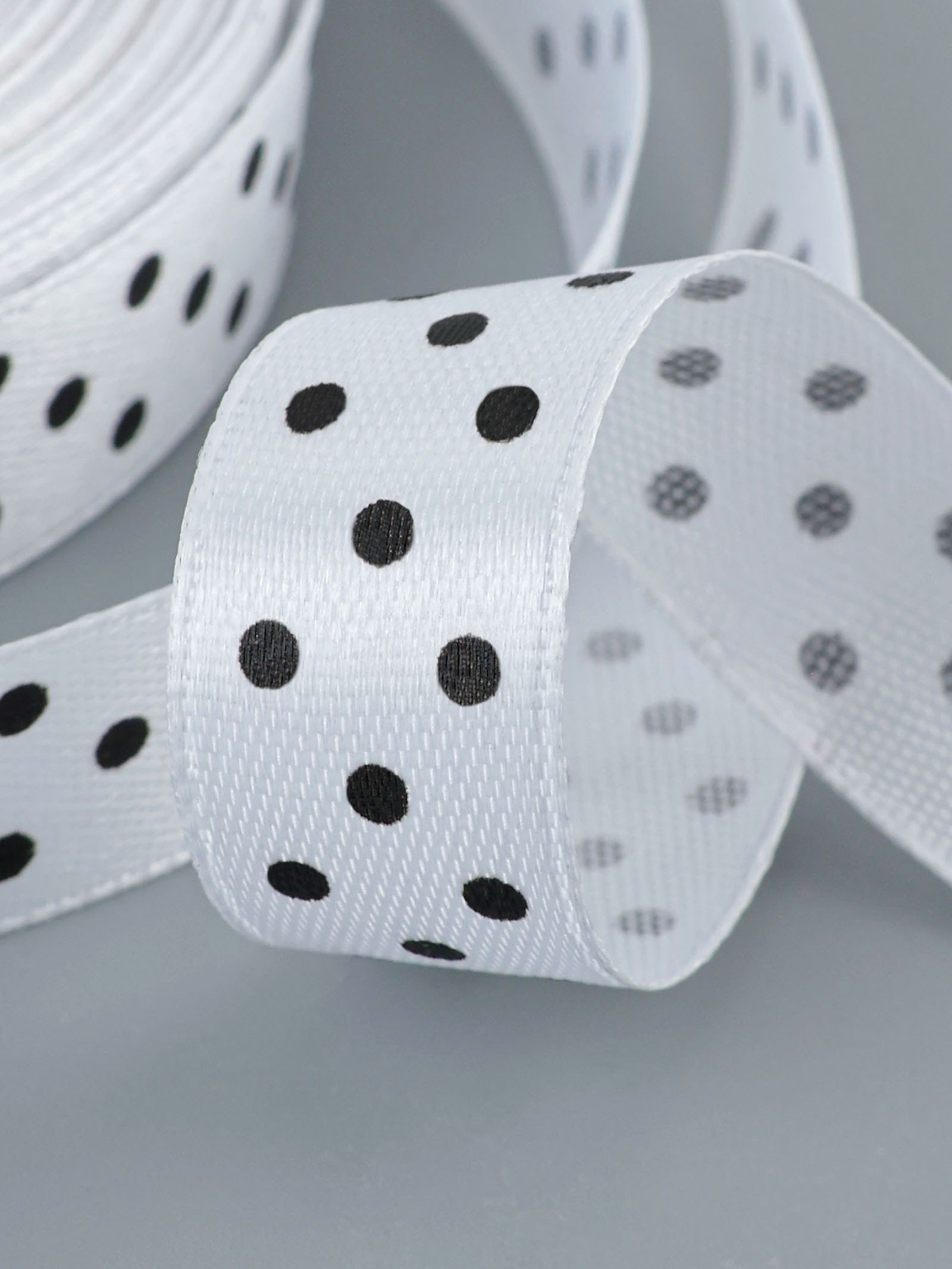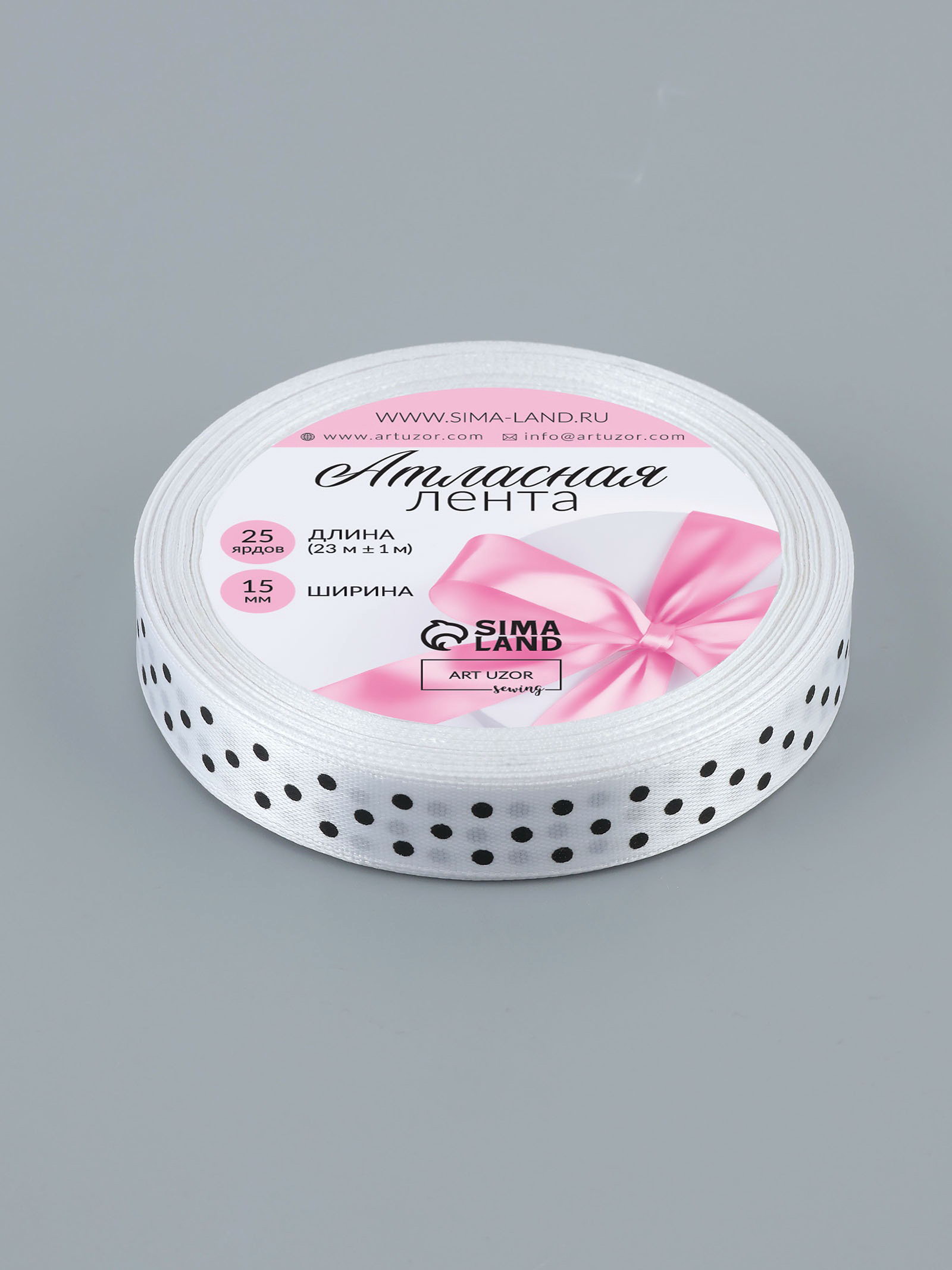 Лента атласная "Горошек", 15 мм, 23+-1 м, белая №001, 9x9x1.5 см., Арт Узор, Китай