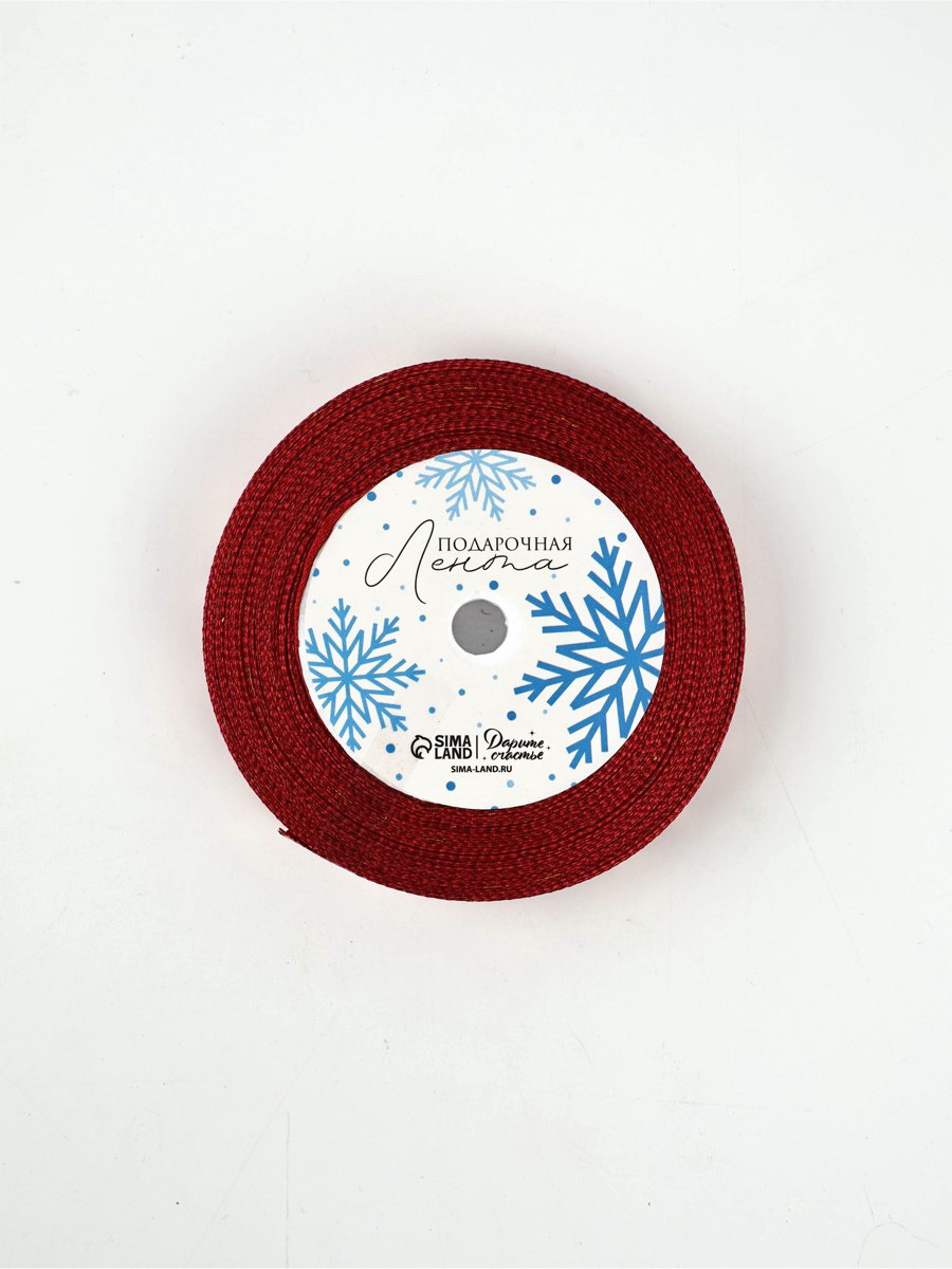 Лента атласная с тиснением "Фигурные снежинки", 15 мм, 23+-1 м, красная, 9x9x1.5 см., Дарите Счастье, Китай
