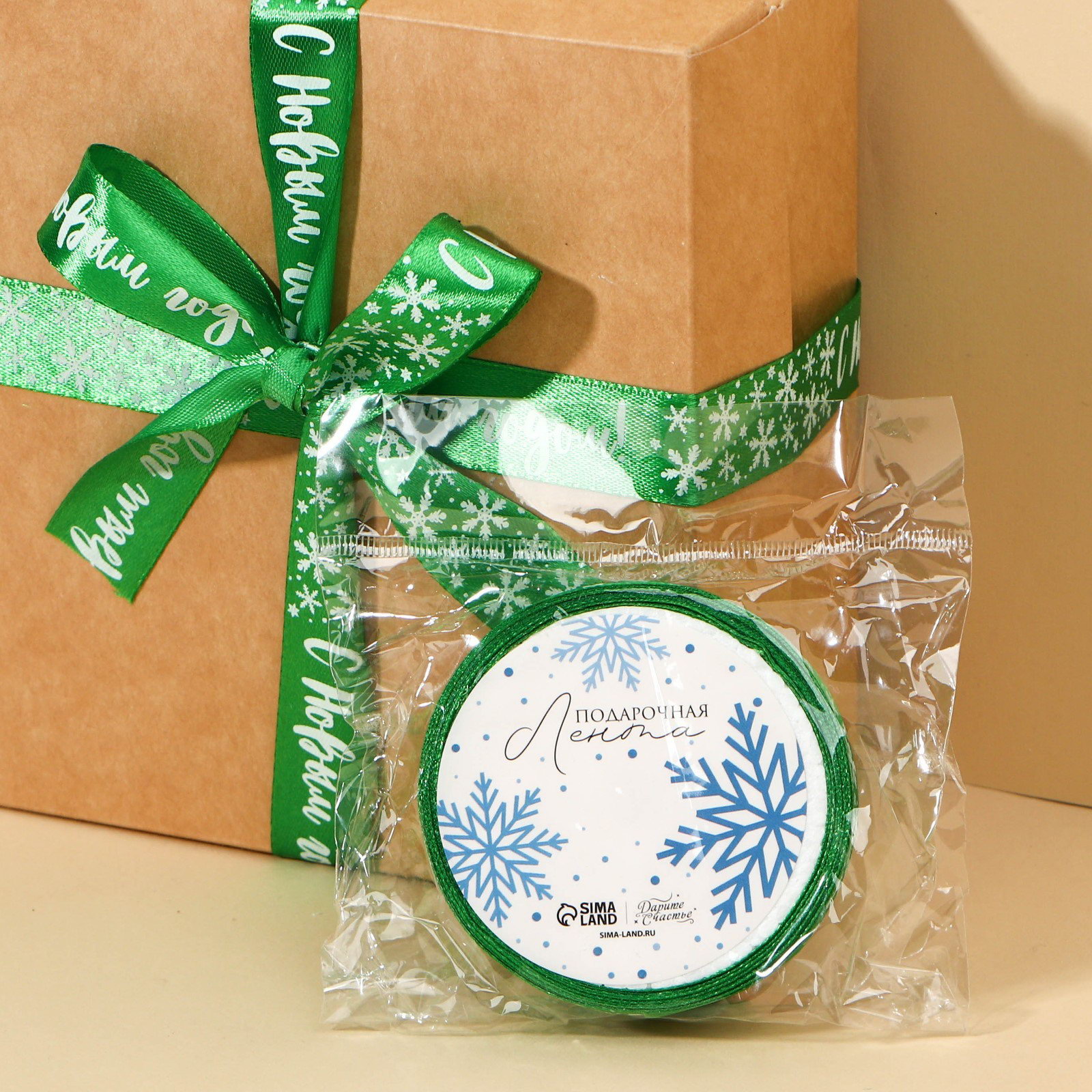 Лента атласная "С Новым годом!", зеленая, 2 см x 5 м, 8x8x2 см., Дарите Счастье, Китай