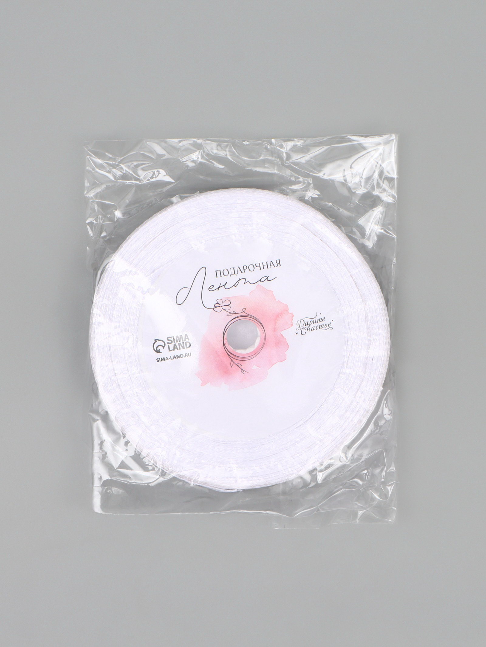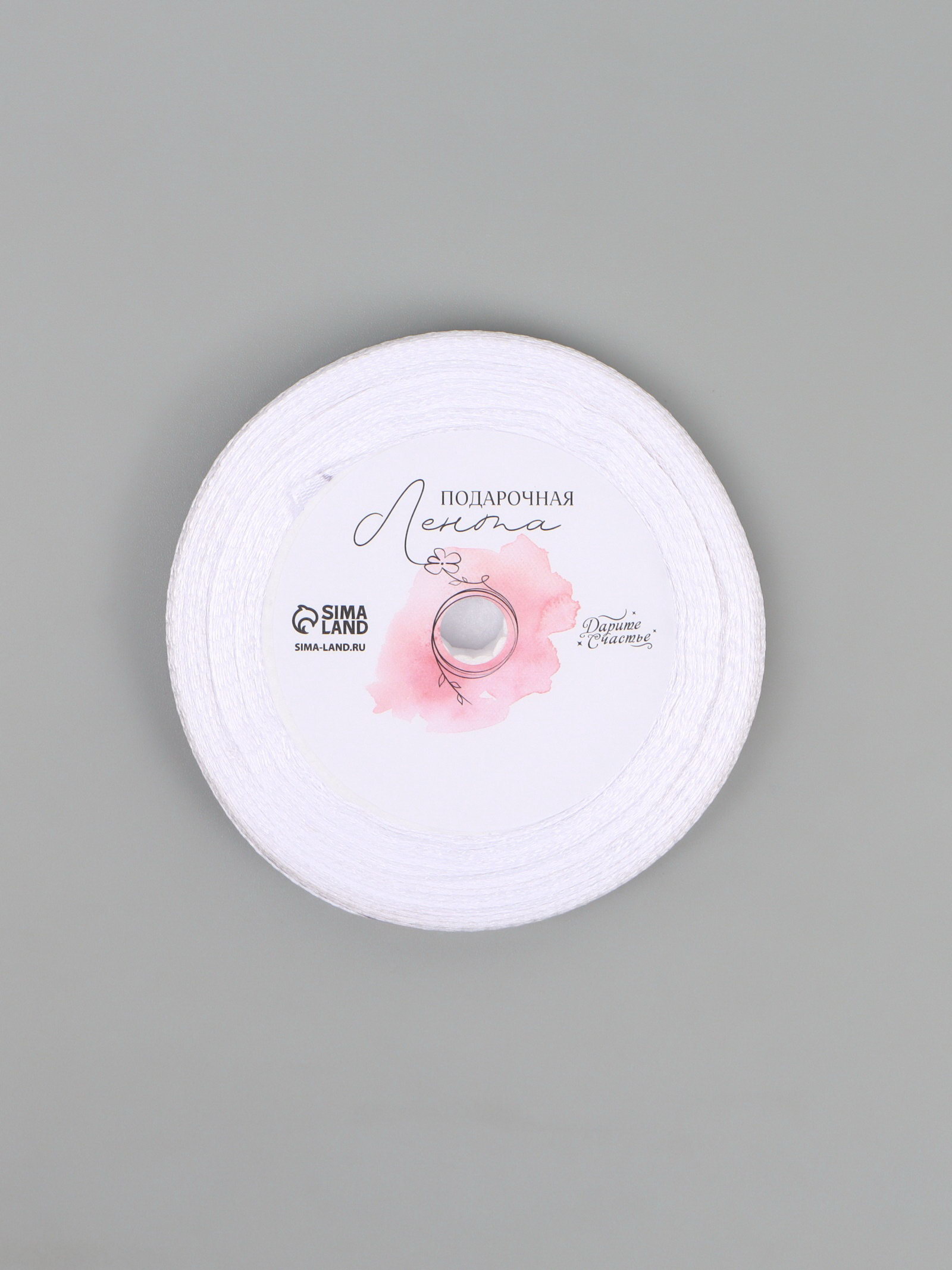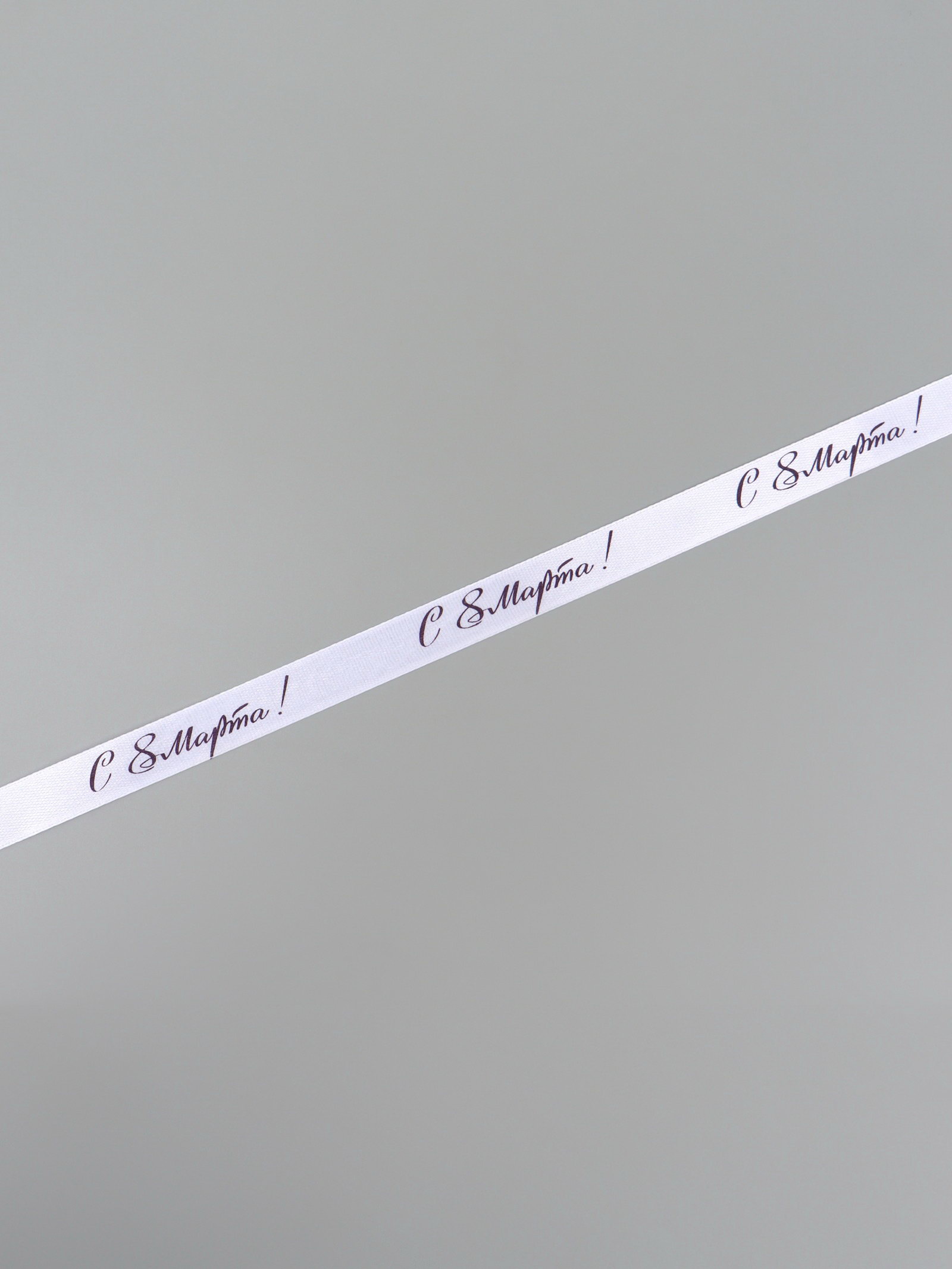 Лента атласная "С 8 Марта", 15 мм, 23+-1 м, белая, сиреневая №001, 9x9x1.5 см., Дарите Счастье, Китай