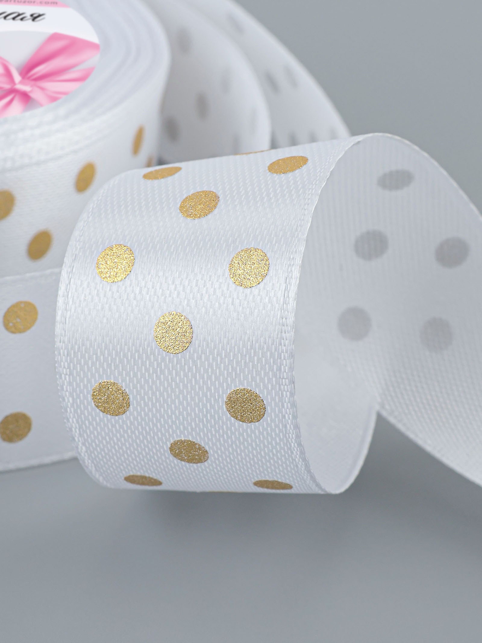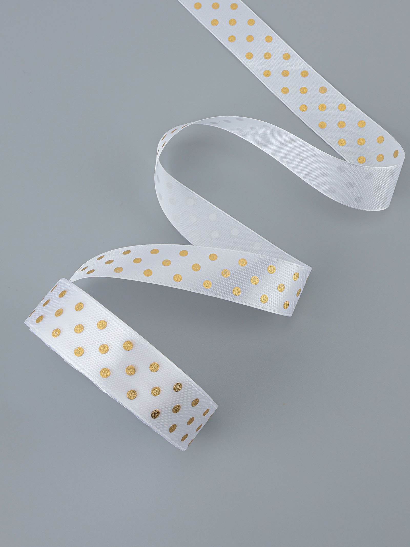 Лента атласная с тиснением "Горох", 25 мм, 23+-1 м, белая №01, 9x9x2.5 см., Арт Узор, Китай
