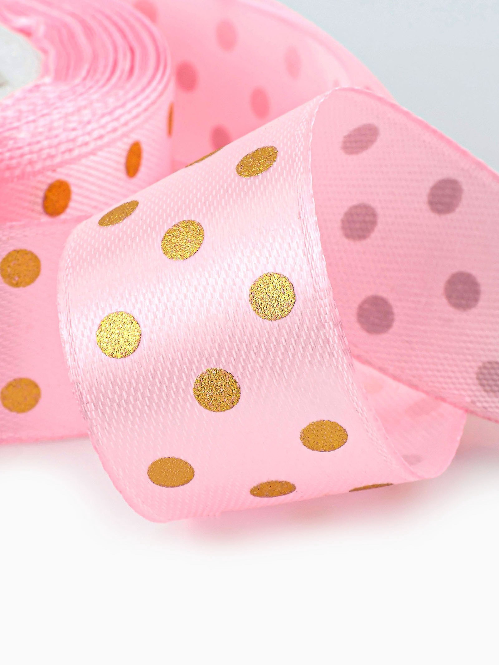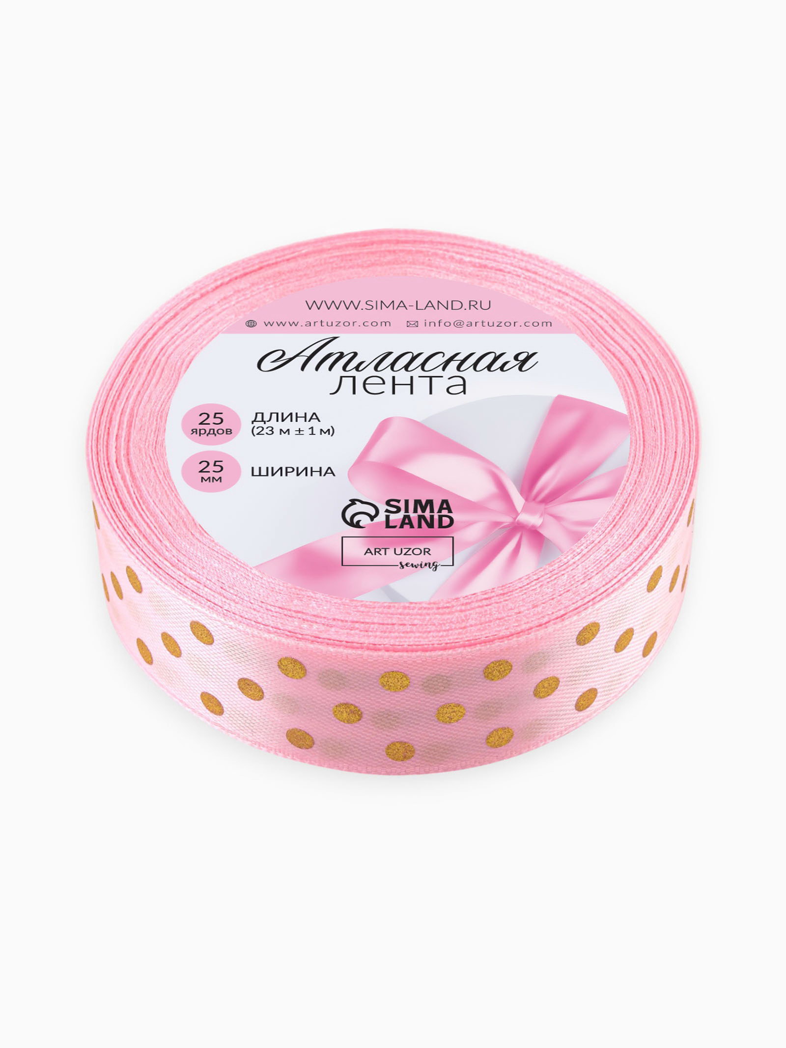 Лента атласная с тиснением "Горох", 25 мм, 23+-1 м, розовая №04, 9x9x2.5 см., Арт Узор, Китай
