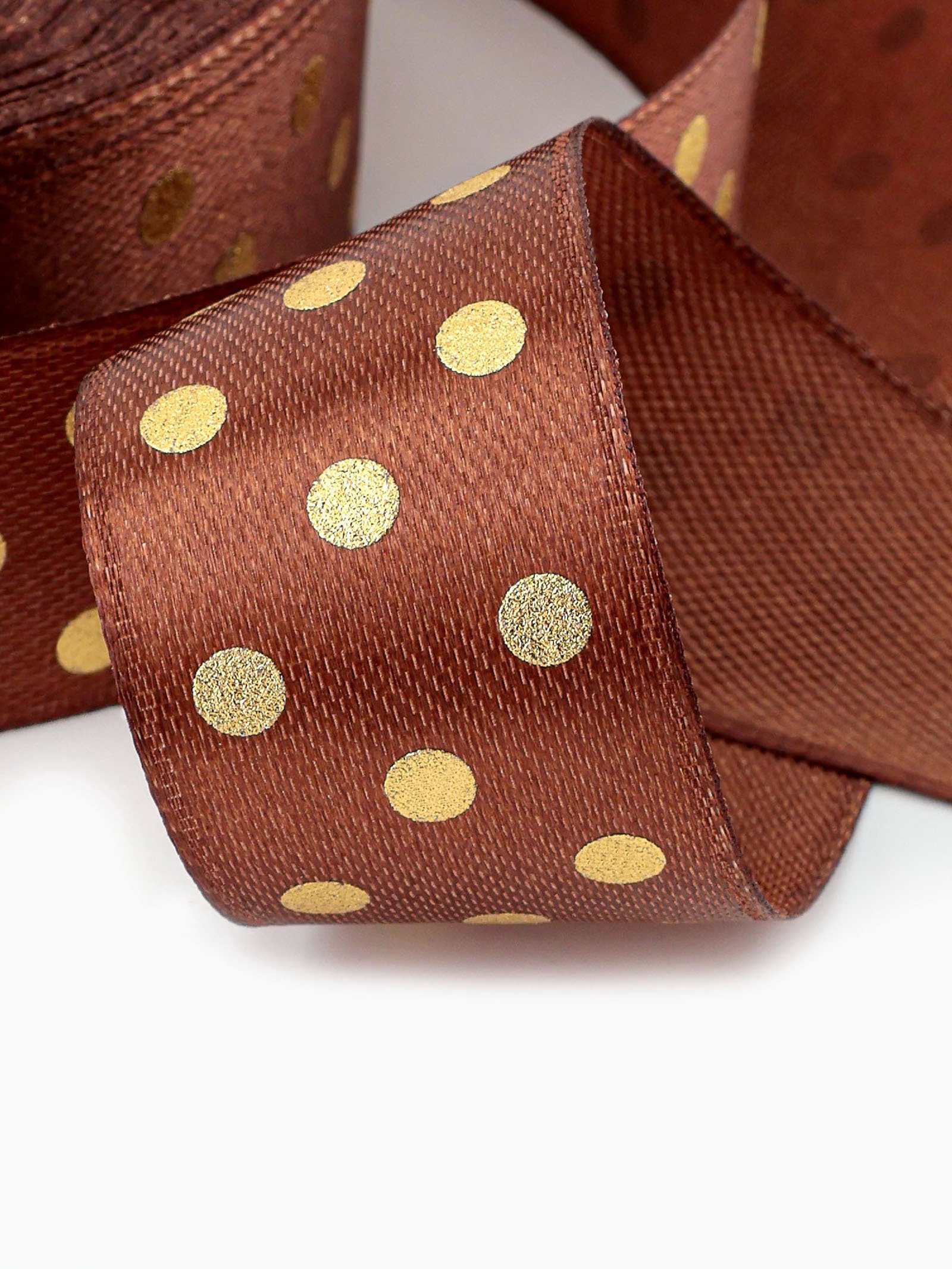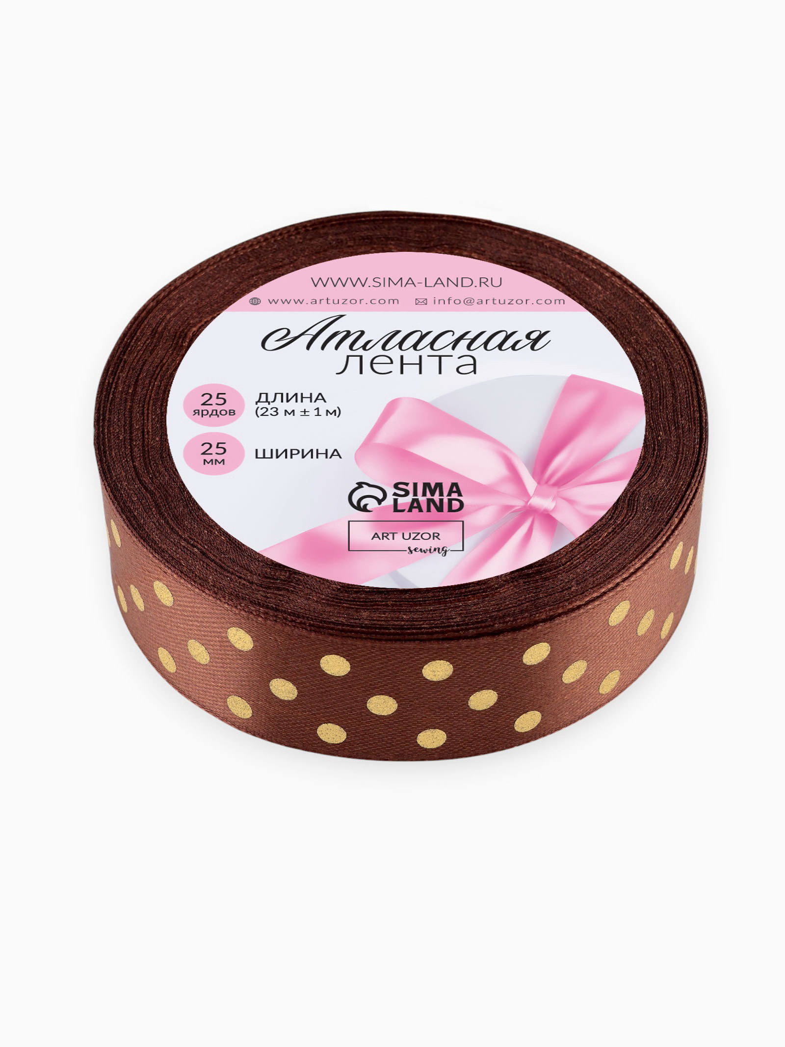 Лента атласная с тиснением "Горох", 25 мм, 23+-1 м, коричневая №32, 9x9x2.5 см., Арт Узор, Китай