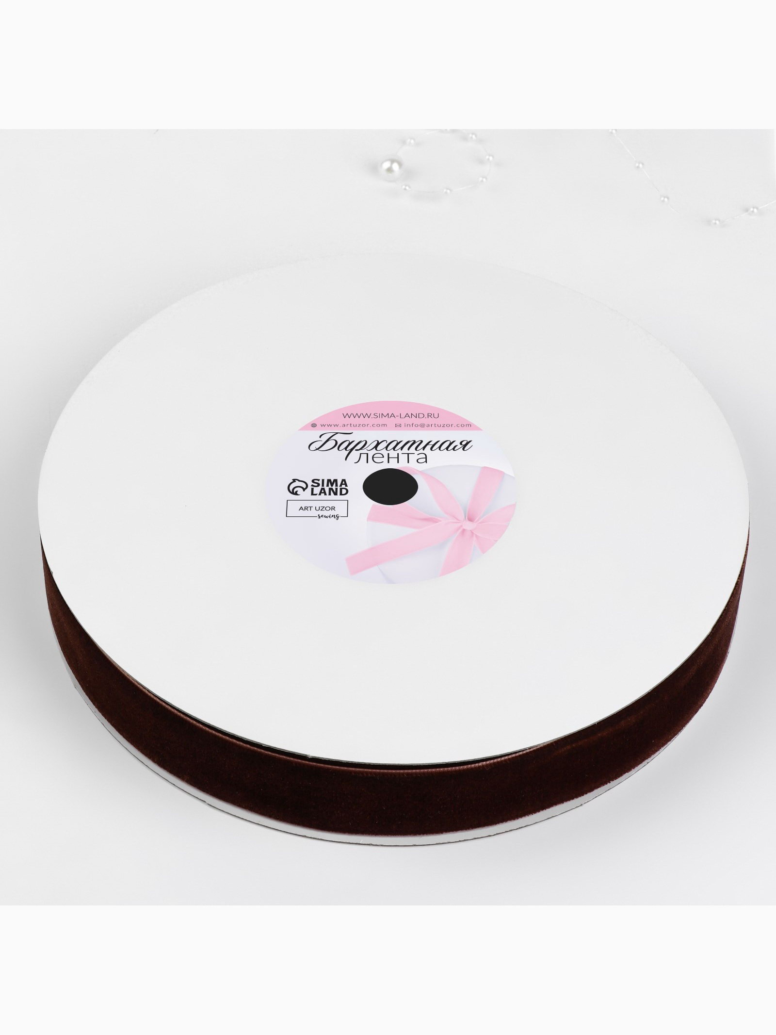 Лента бархатная, 25 мм, 18+-1 м, коричневая №119, 17x17x2.5 см., Арт Узор, Китай