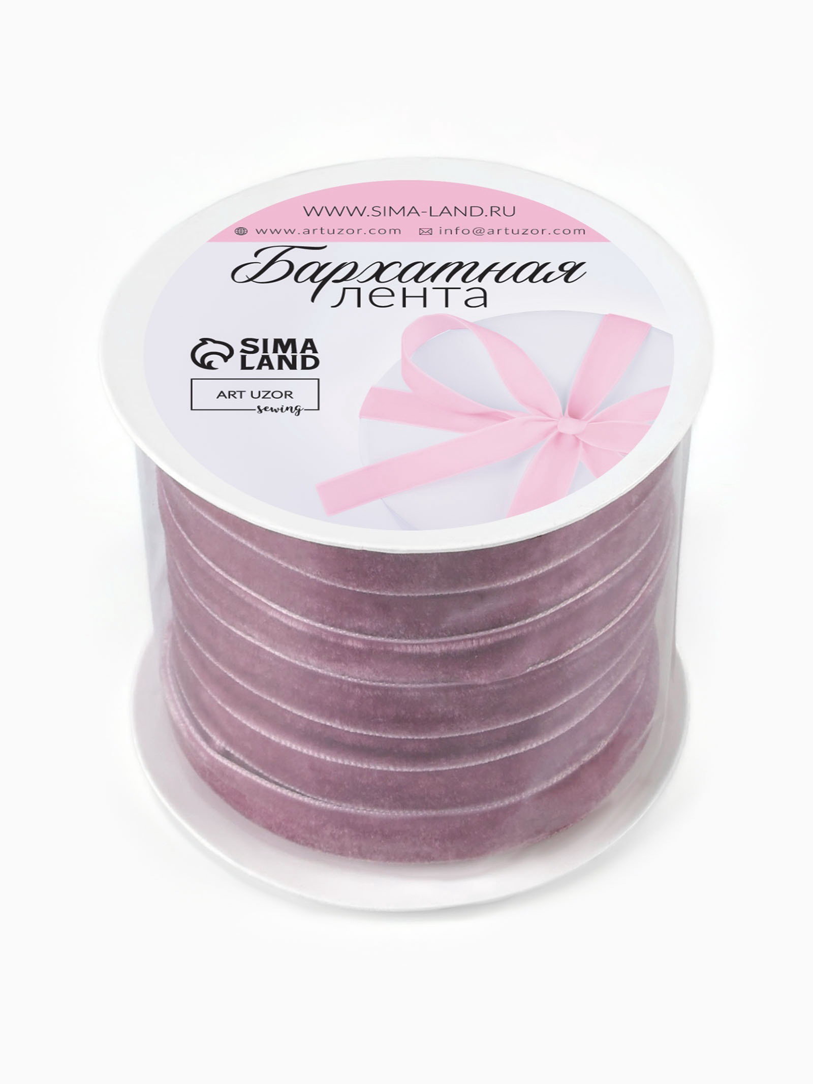 Лента бархатная, 10 мм, 18+-1 м, сиреневая №199, 17x17x1 см., Арт Узор, Китай
