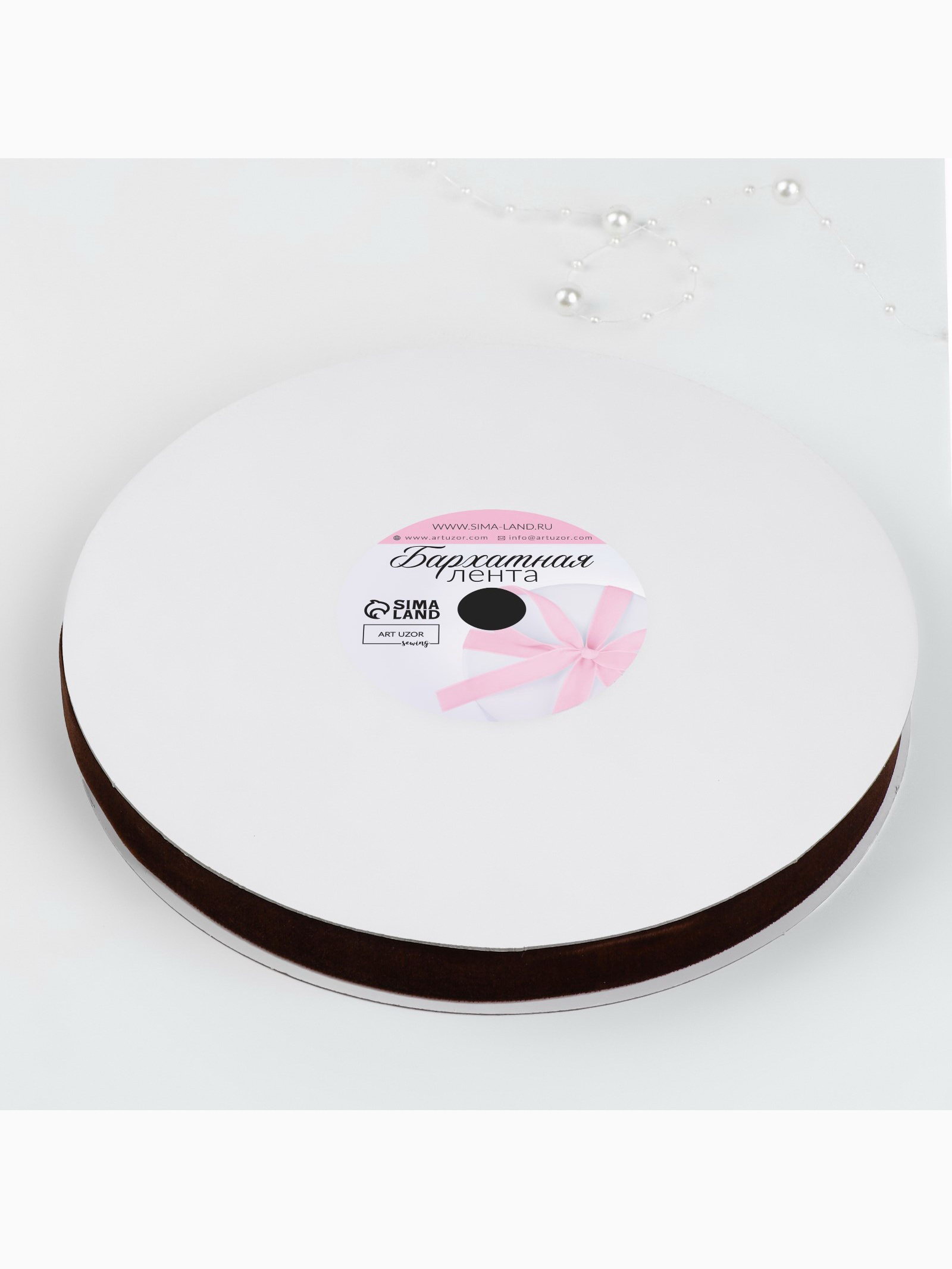 Лента бархатная, 20 мм, 18+-1 м, коричневая №119, 17x17x2 см., Арт Узор, Китай