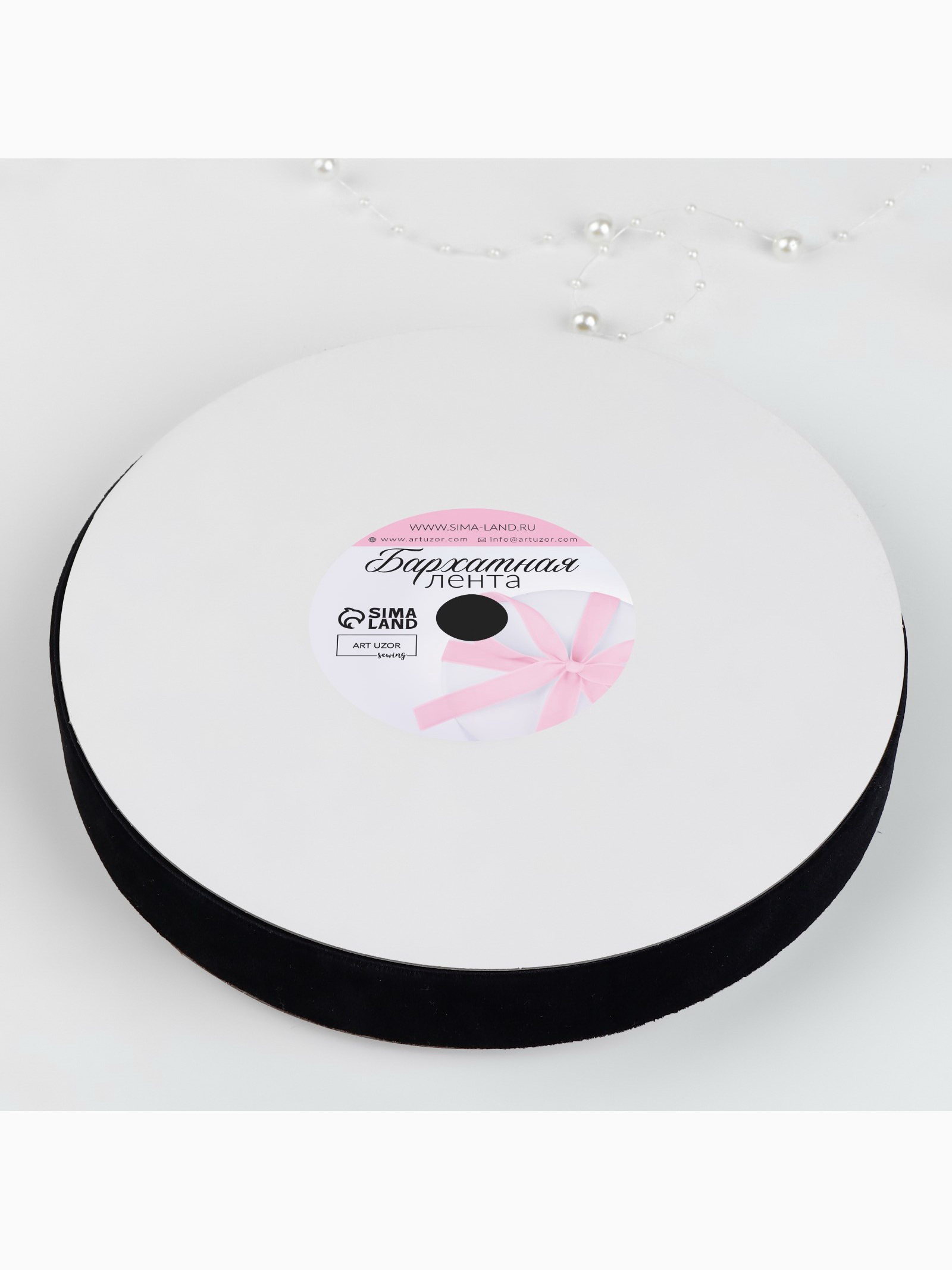 Лента бархатная, 25 мм, 18+-1 м, чёрная №03, 17x17x2.5 см., Арт Узор, Китай