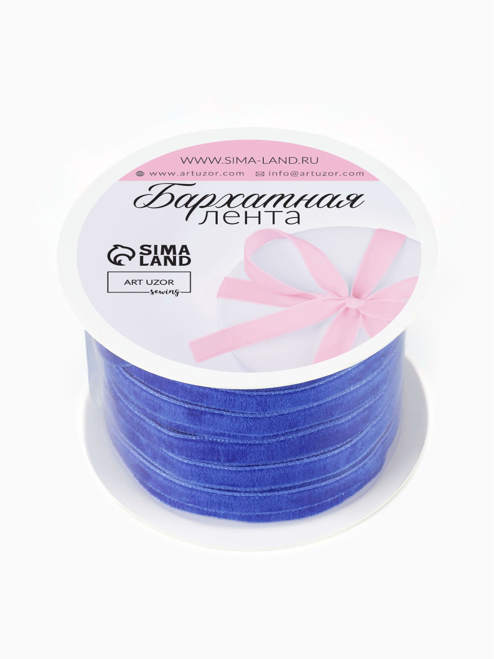 Лента бархатная, 6 мм, 18+-1 м, синяя №47, 17x17x1 см., Арт Узор, Китай