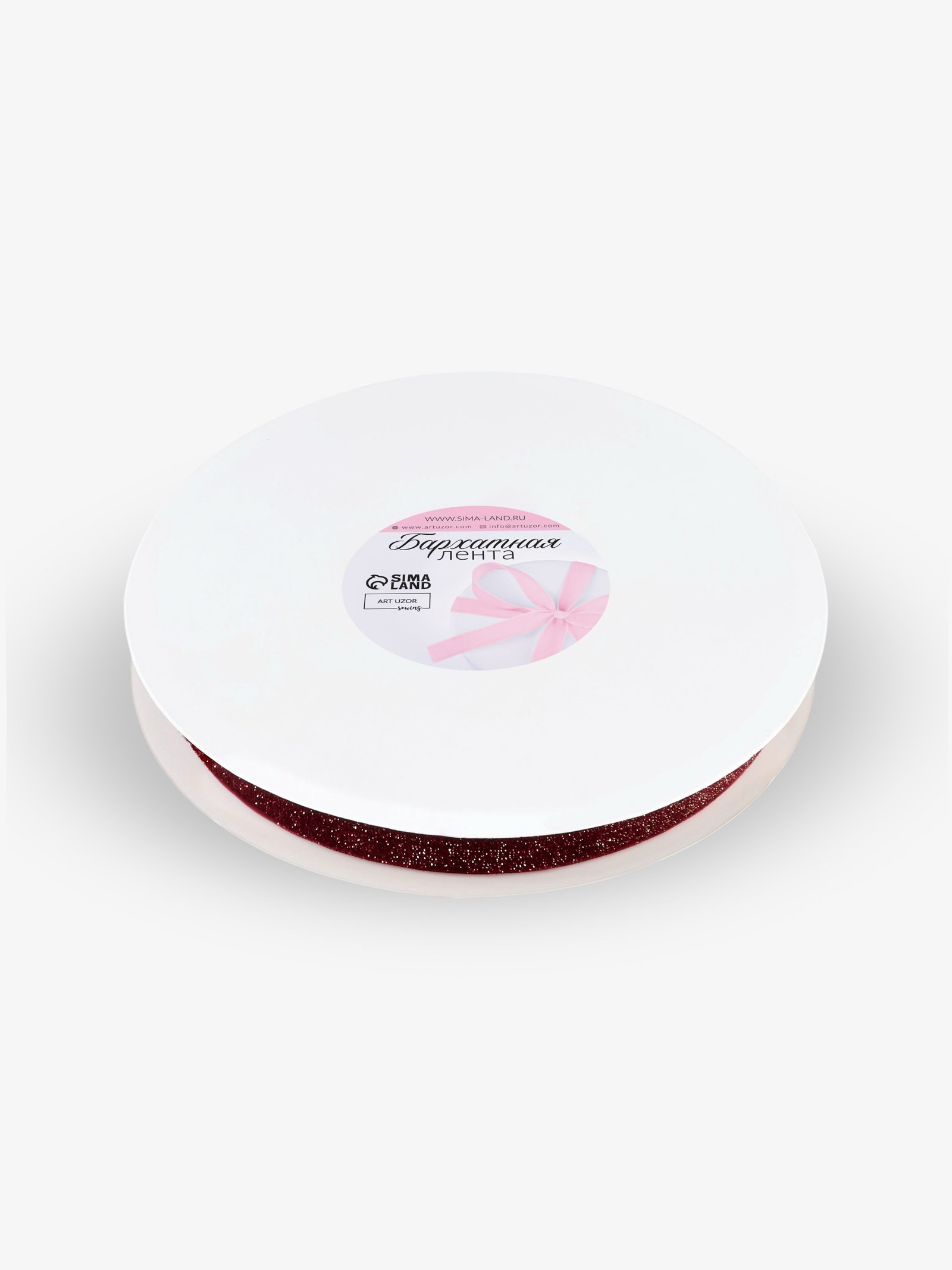 Лента бархатная, с золотым люрексом, 20 мм, 18+-1 м, бордовая №46, 17x17x2 см., Арт Узор, Китай